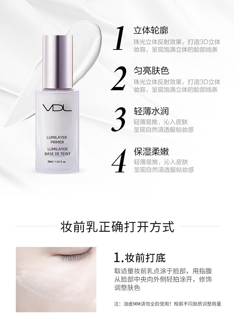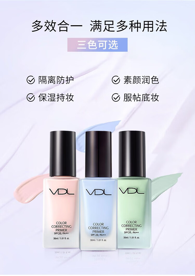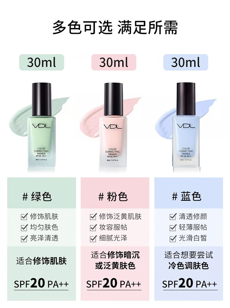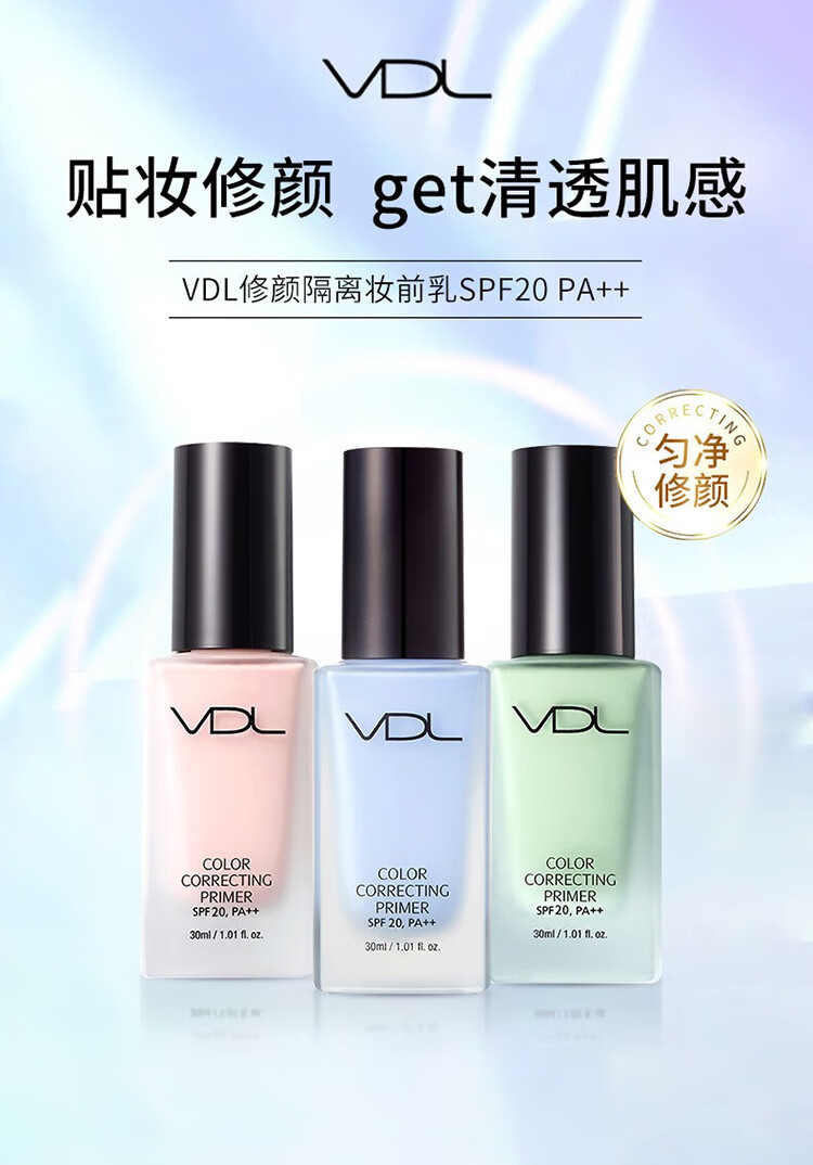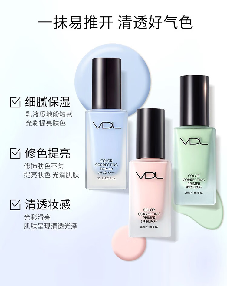 VDL Clear Brightening Makeup Primer VDL Shell Brightening Liquid Brightens and Modifies Skin Color Pearlescent Primer Moisturizing Vidy Aire Repairing Isolating Makeup Primer 30ml #Green