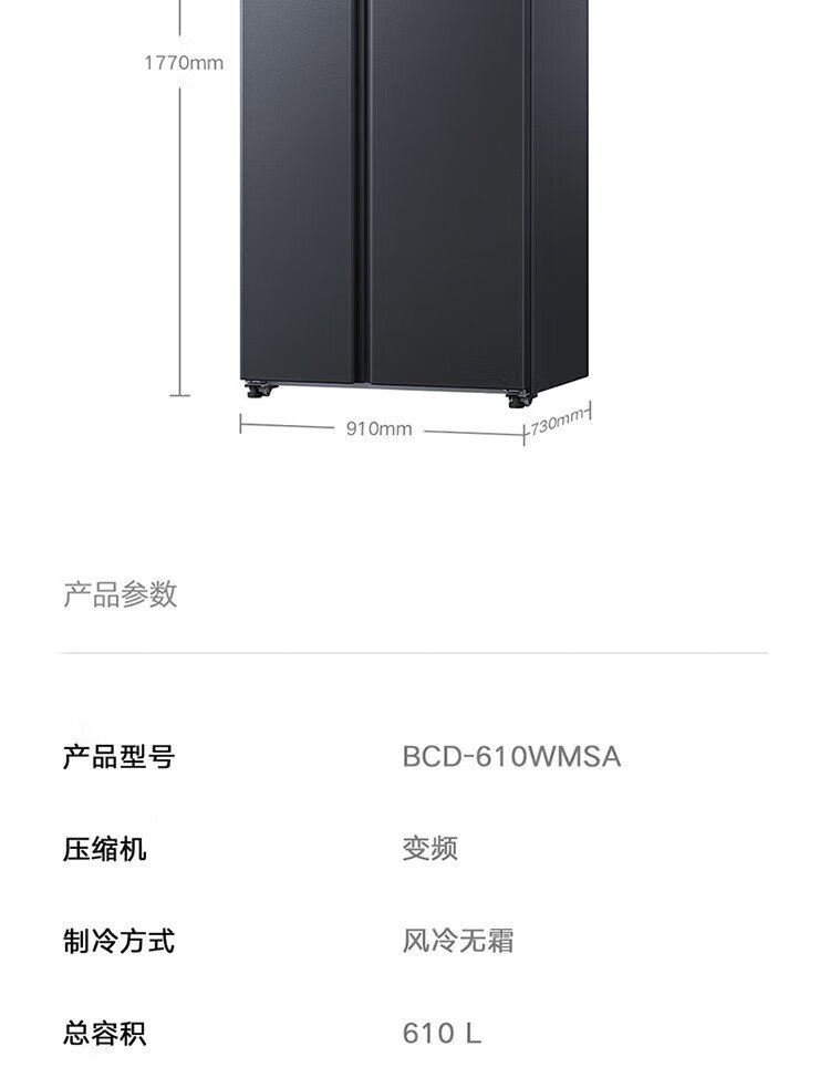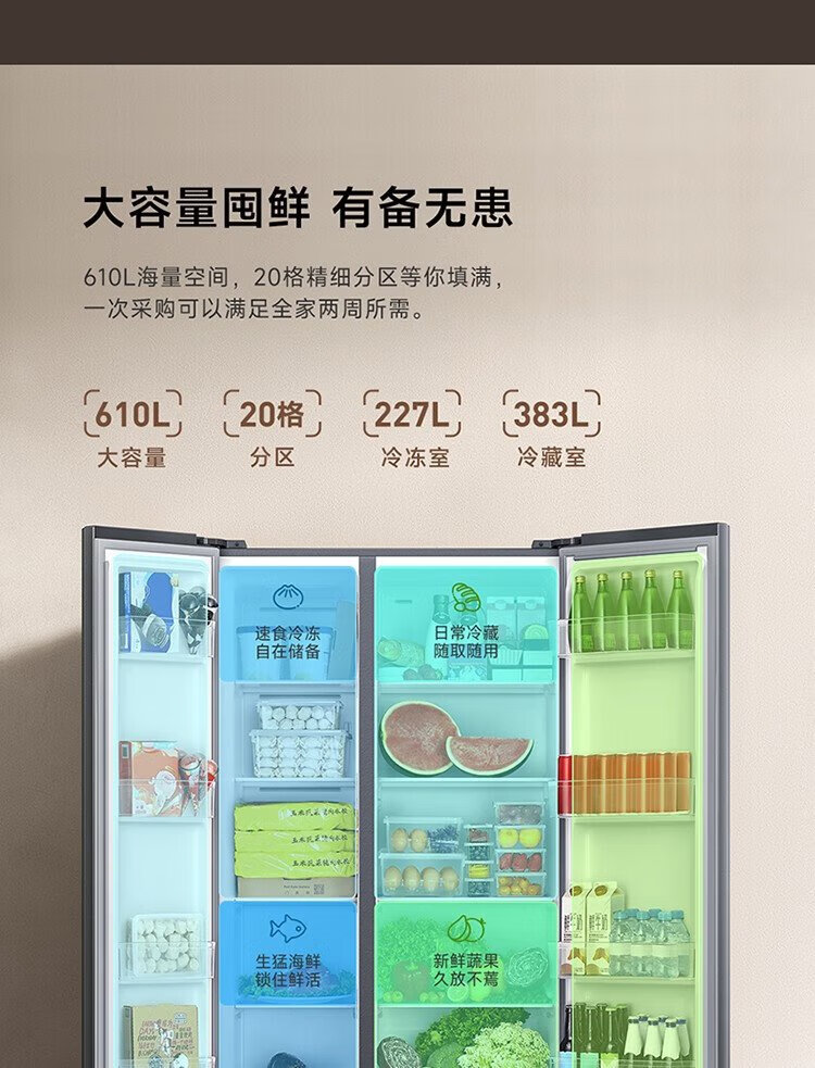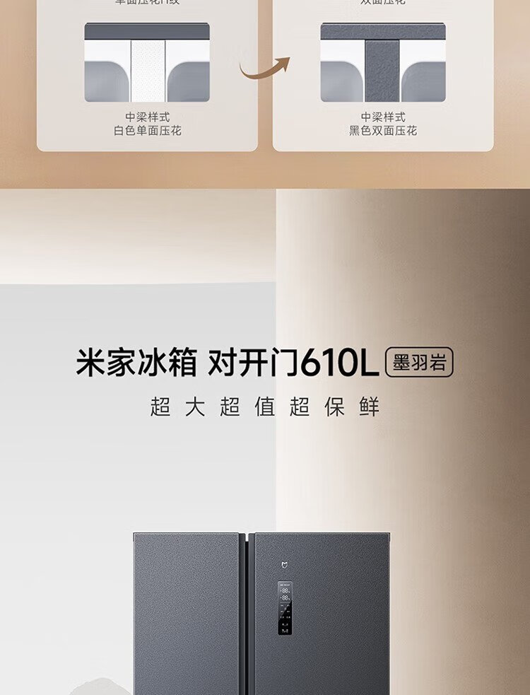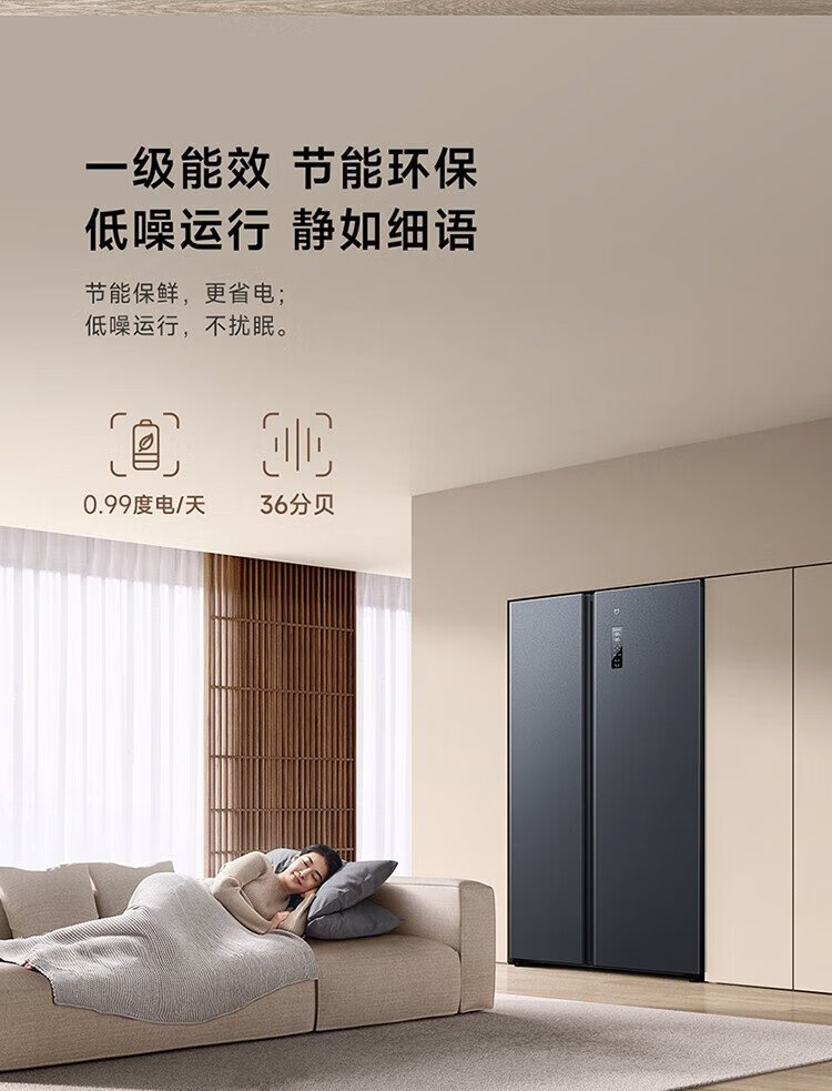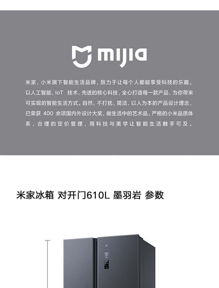 Xiaomi (MI) 610-liter refrigerator with double doors, air-cooled, frost-free, large capacity, silver ion sterilization, first-class energy efficiency BCD-610WMSA