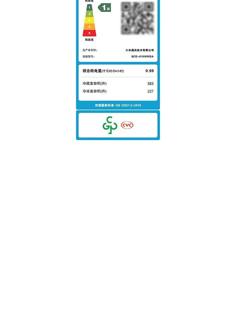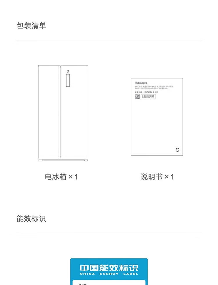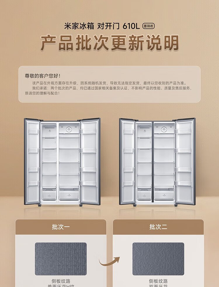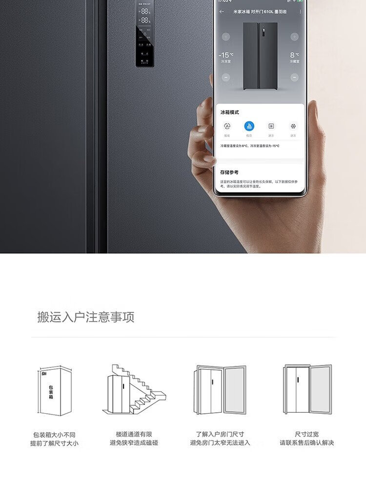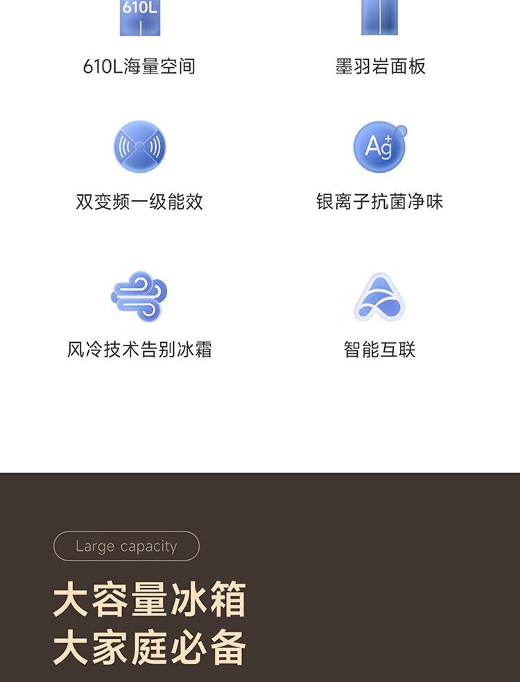 Xiaomi (MI) 610-liter refrigerator with double doors, air-cooled, frost-free, large capacity, silver ion sterilization, first-class energy efficiency BCD-610WMSA