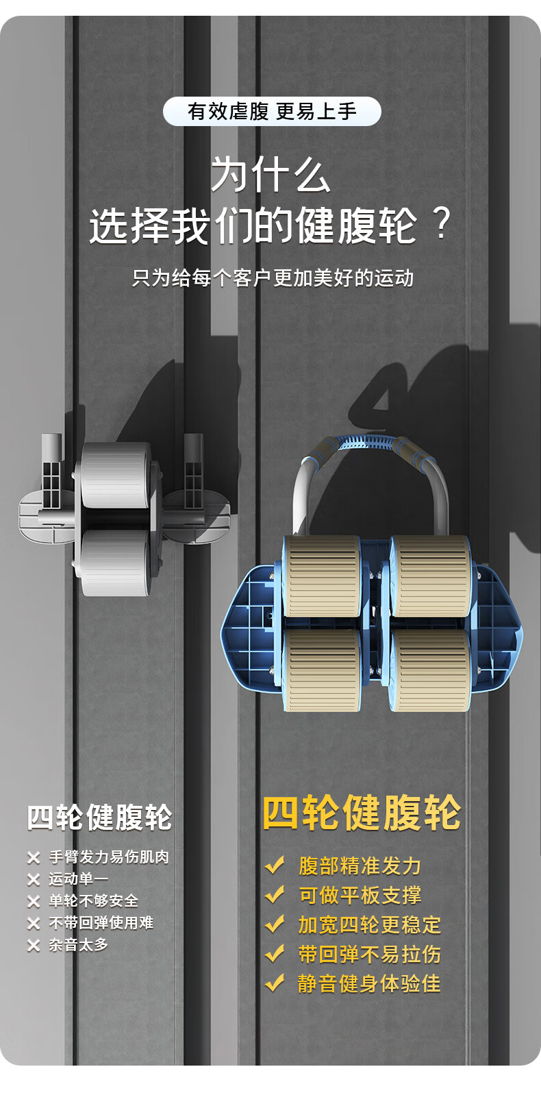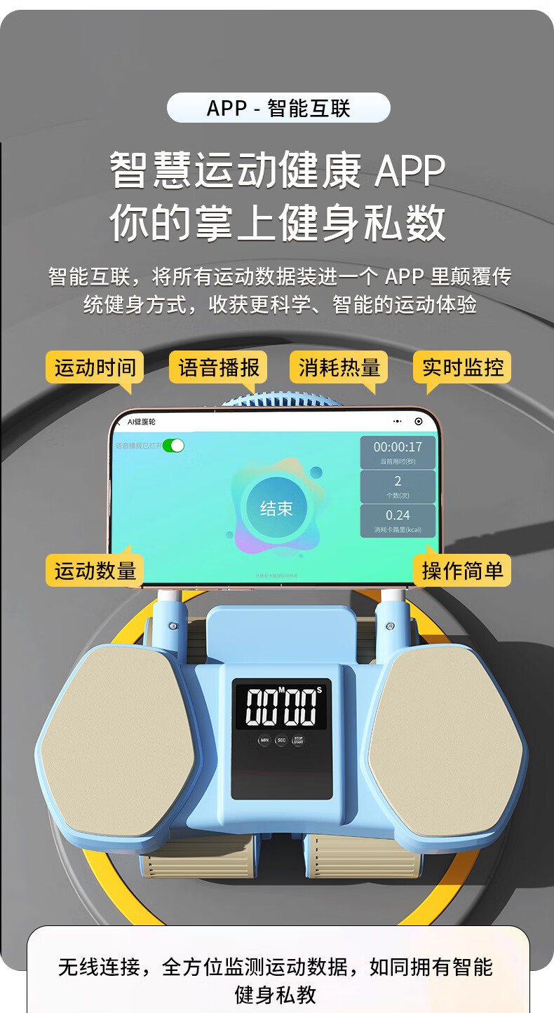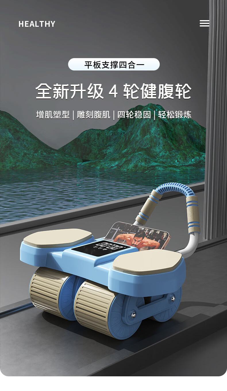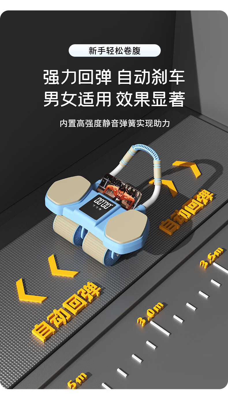 Chaoke (CAOOELCOL) four-wheel abdominal fitness wheel, automatic rebound elbow support type abdominal wheel, abdominal muscle wheel for men and women, abdominal curling and slimming artifact, fitness equipment, upgraded rebound four-wheel-smart APP interconnection, with kneeling pad