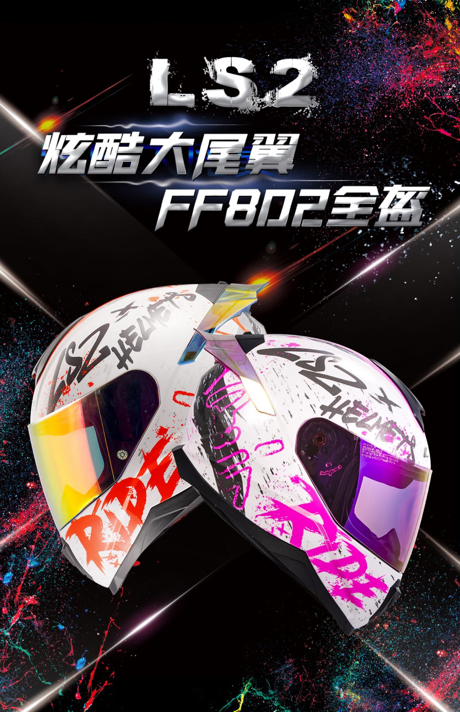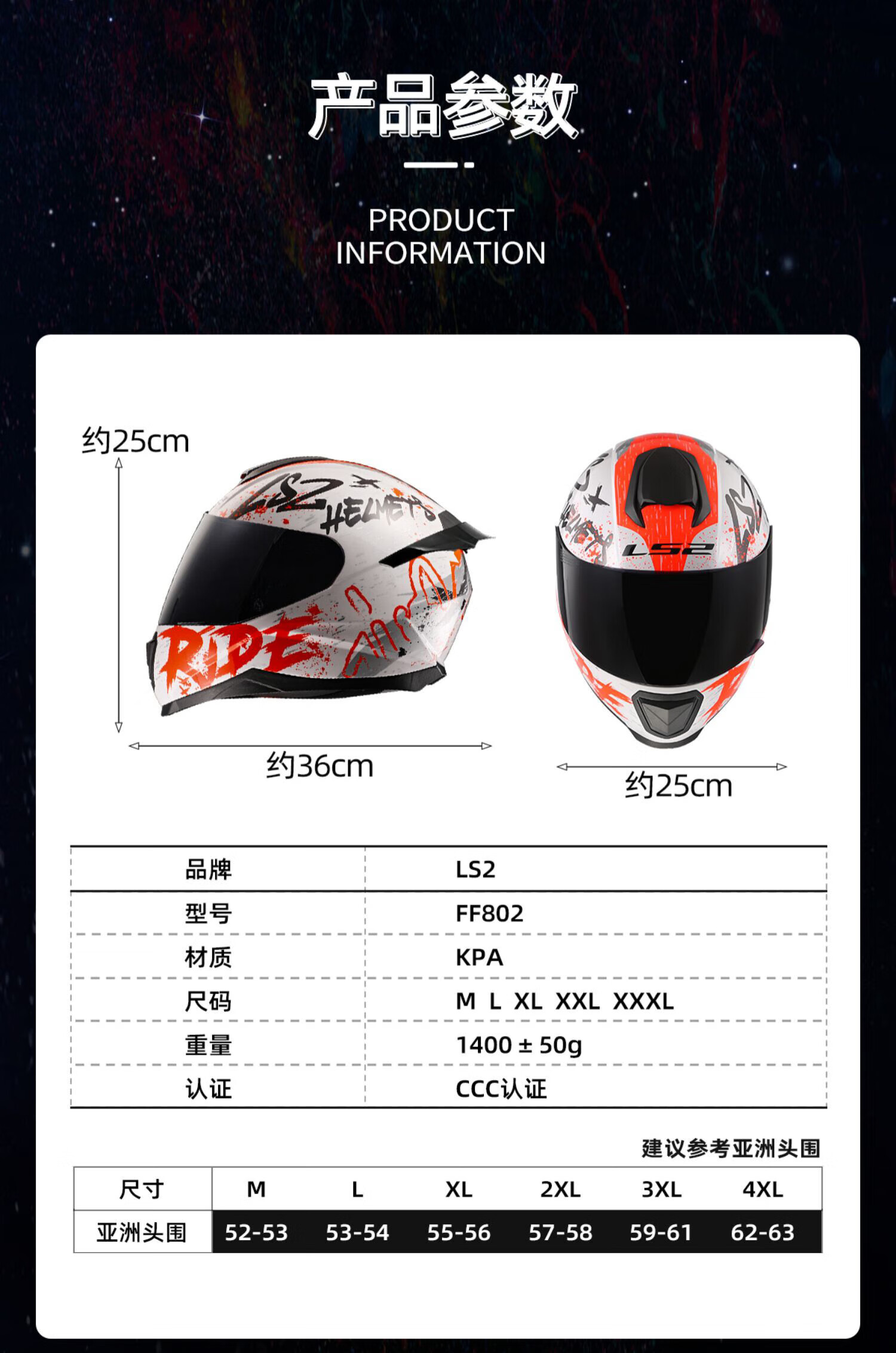 LS2 Couple Motorcycle Helmet Men's and Women's Motorcycle Racing Four-Season Full-face Children's Helmet Anti-fog Large Spoiler 802 Special White/Orange Friction 2XL (57-58 head circumference recommended)