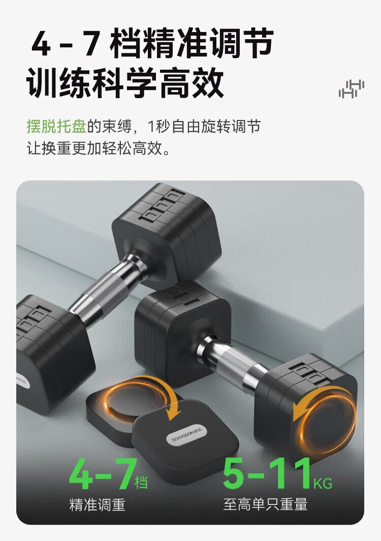 Schvodon dumbbells adjustable household pure steel dumbbells removable quick-adjustable dumbbells for men and women fitness sports equipment set second generation black 10kg pair 5kgx2 pieces