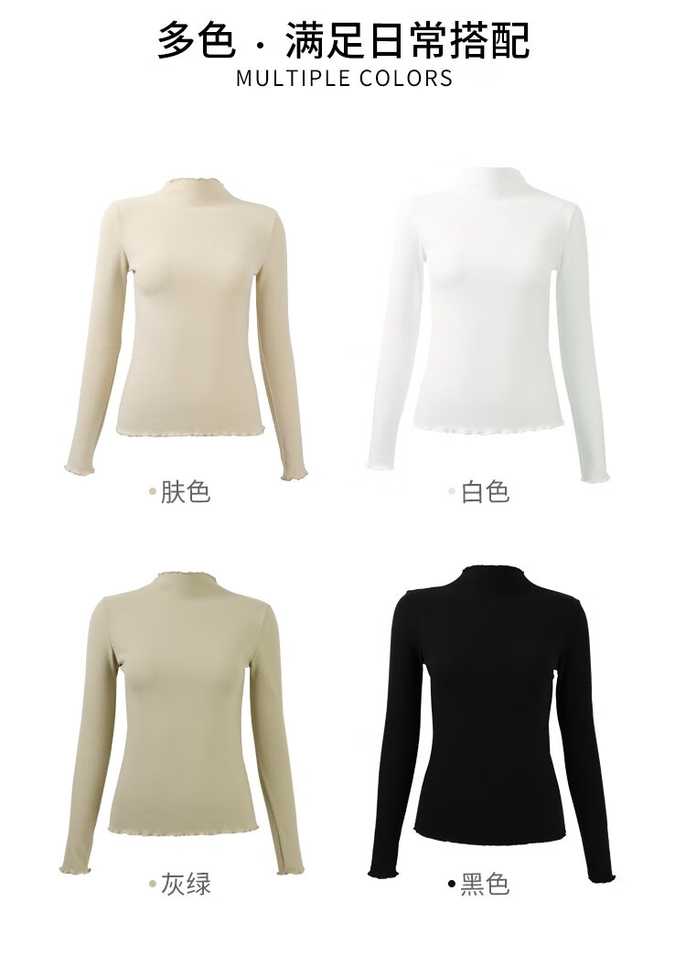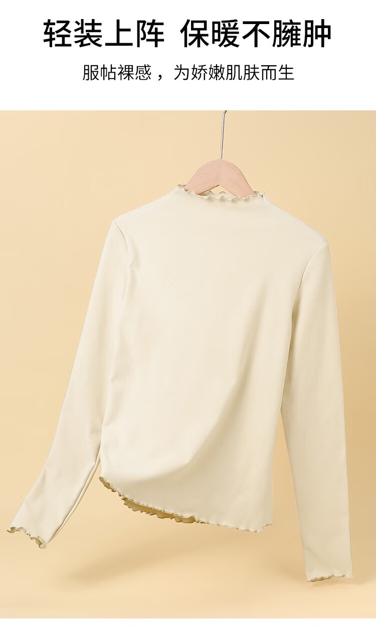 ALDOLA Half Turtle Collar Bottoming Shirt Women's Velvet Thickened Long Sleeve Slim Fit Autumn and Winter Warm Inner Basic Top White 2XL