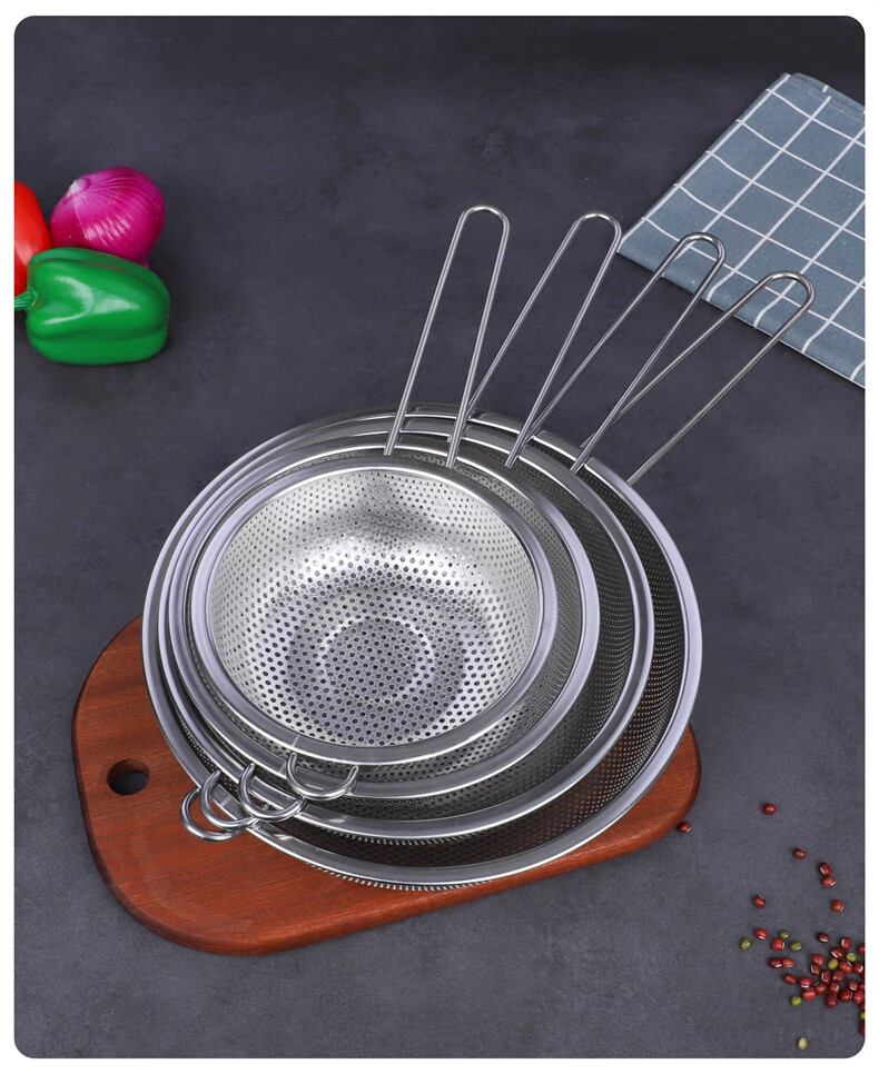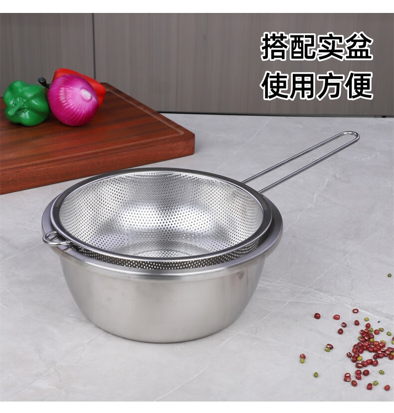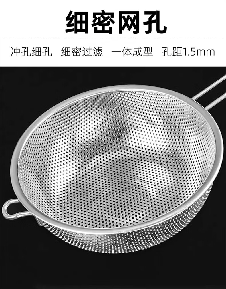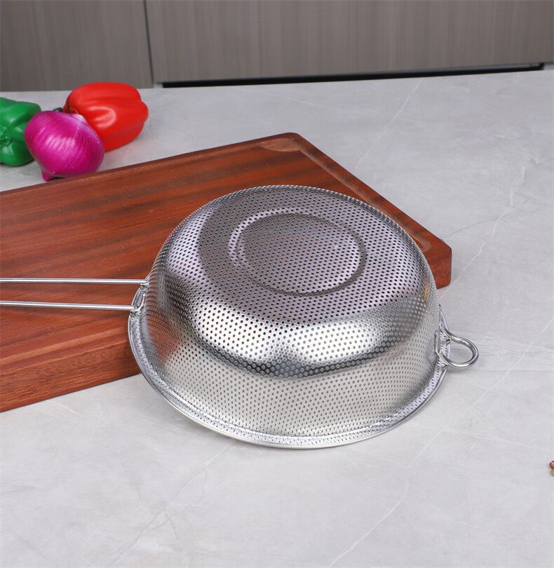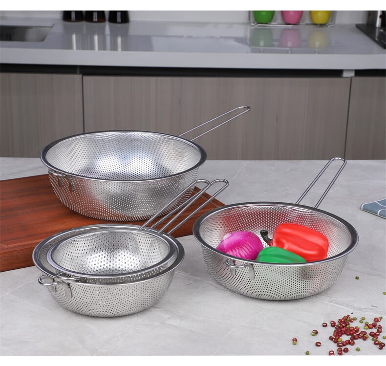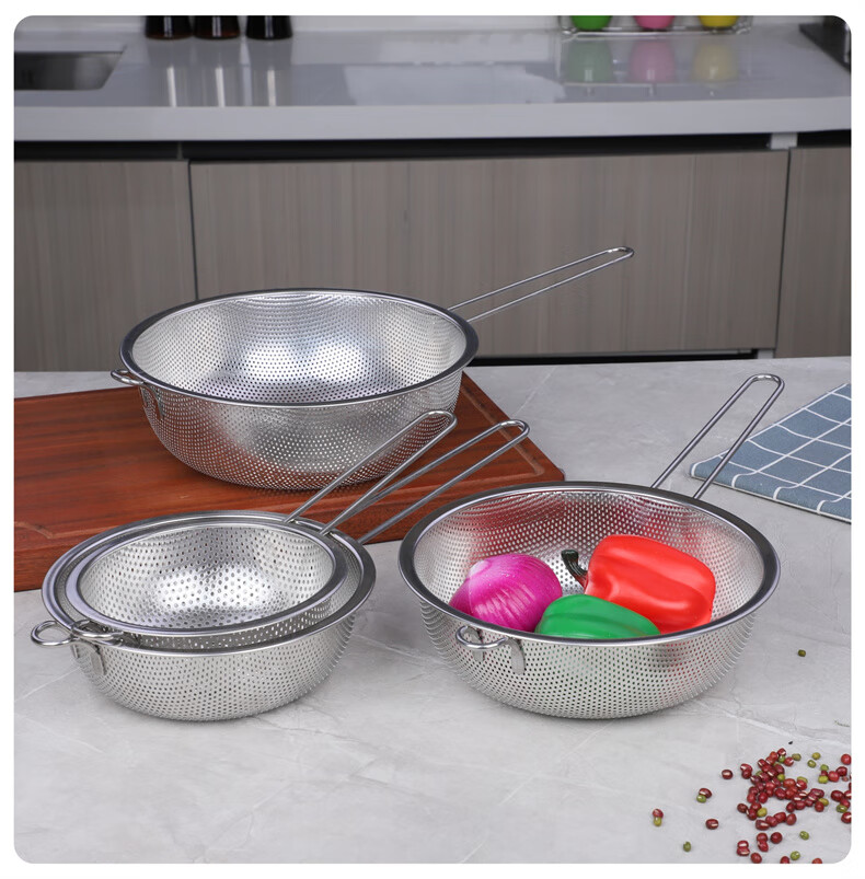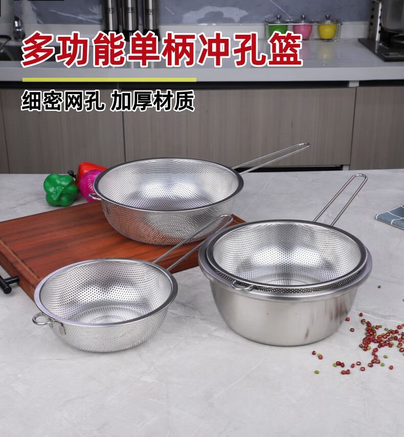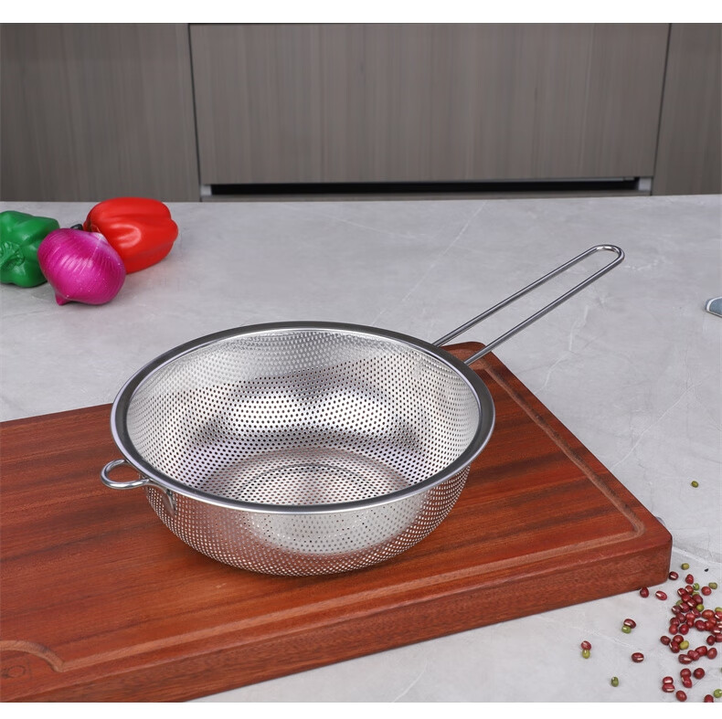 Shengde 304 stainless steel punched multi-purpose basket with basin single handle dense hole colander frying basket fence household drain basket mesh basket large size 22.5CM