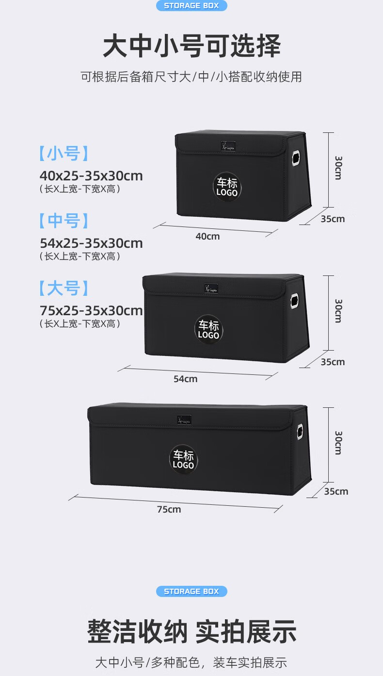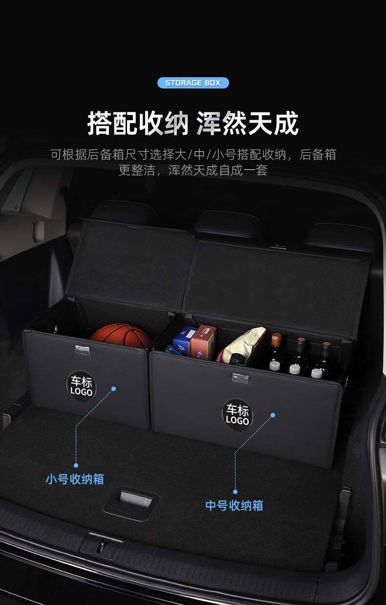 Wuji Chery Tiggo 8/Arrizo 5/QQ ice cream special car trunk storage box storage box car interior decoration exclusive for all Chery series - black small size - thickened wooden board