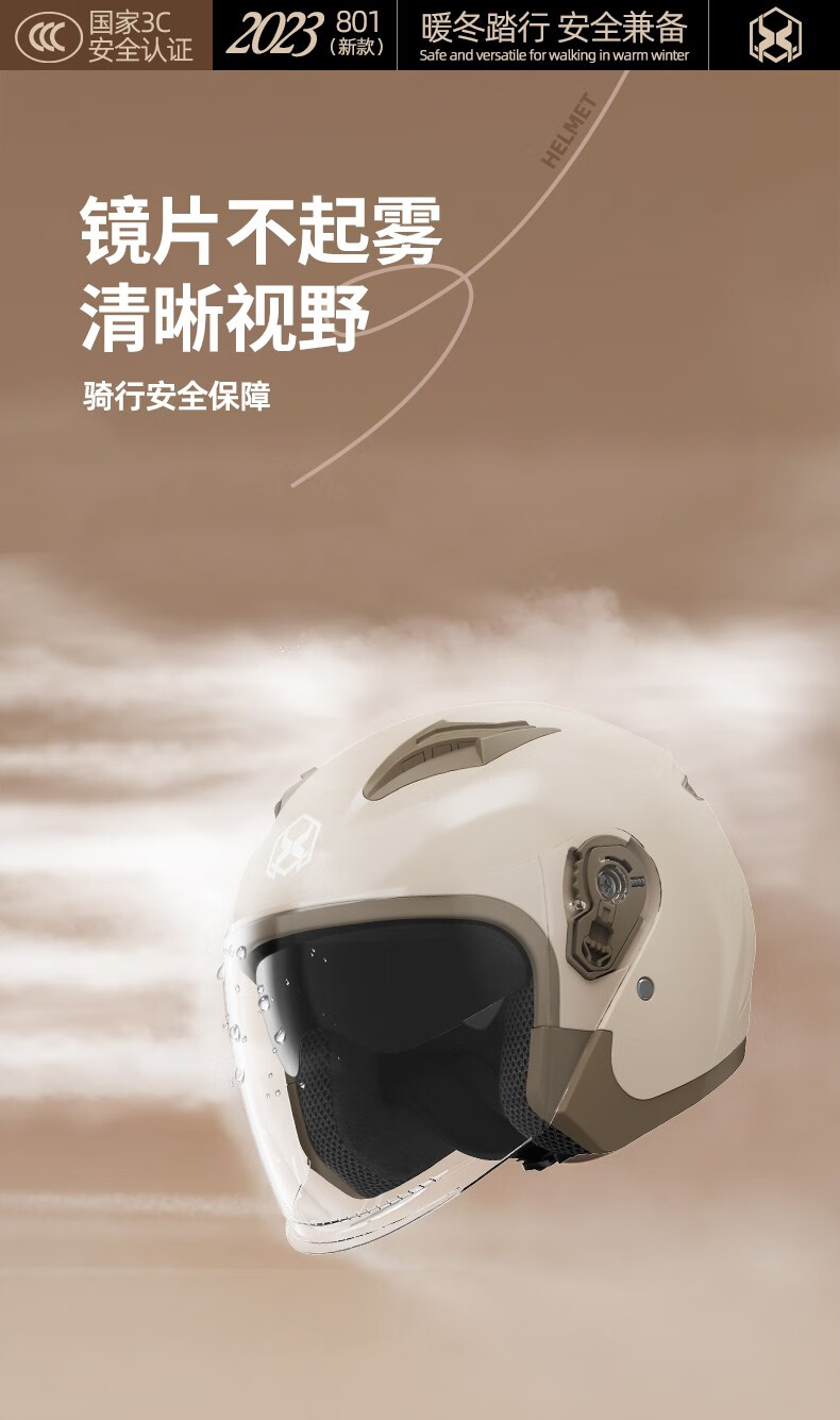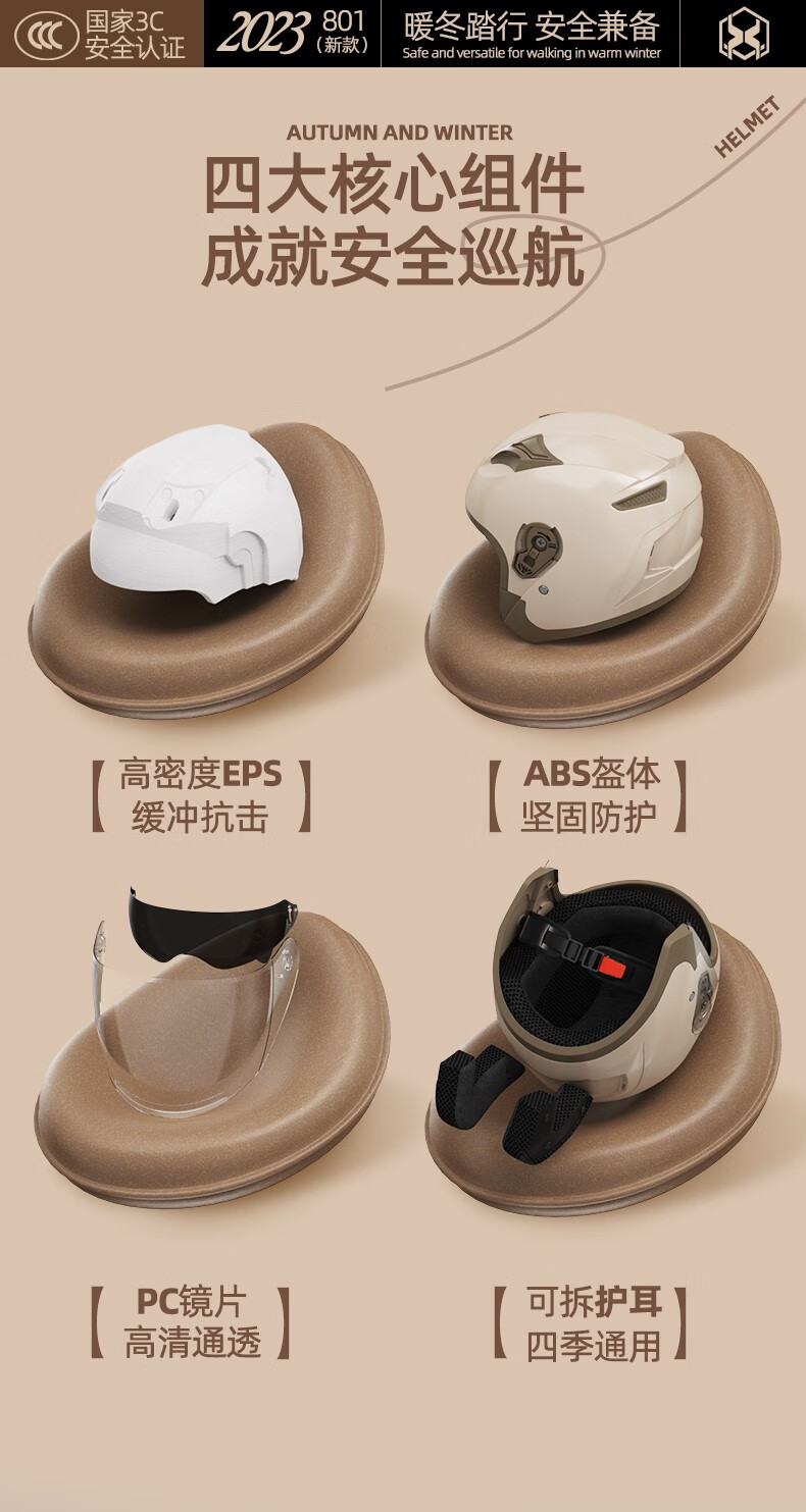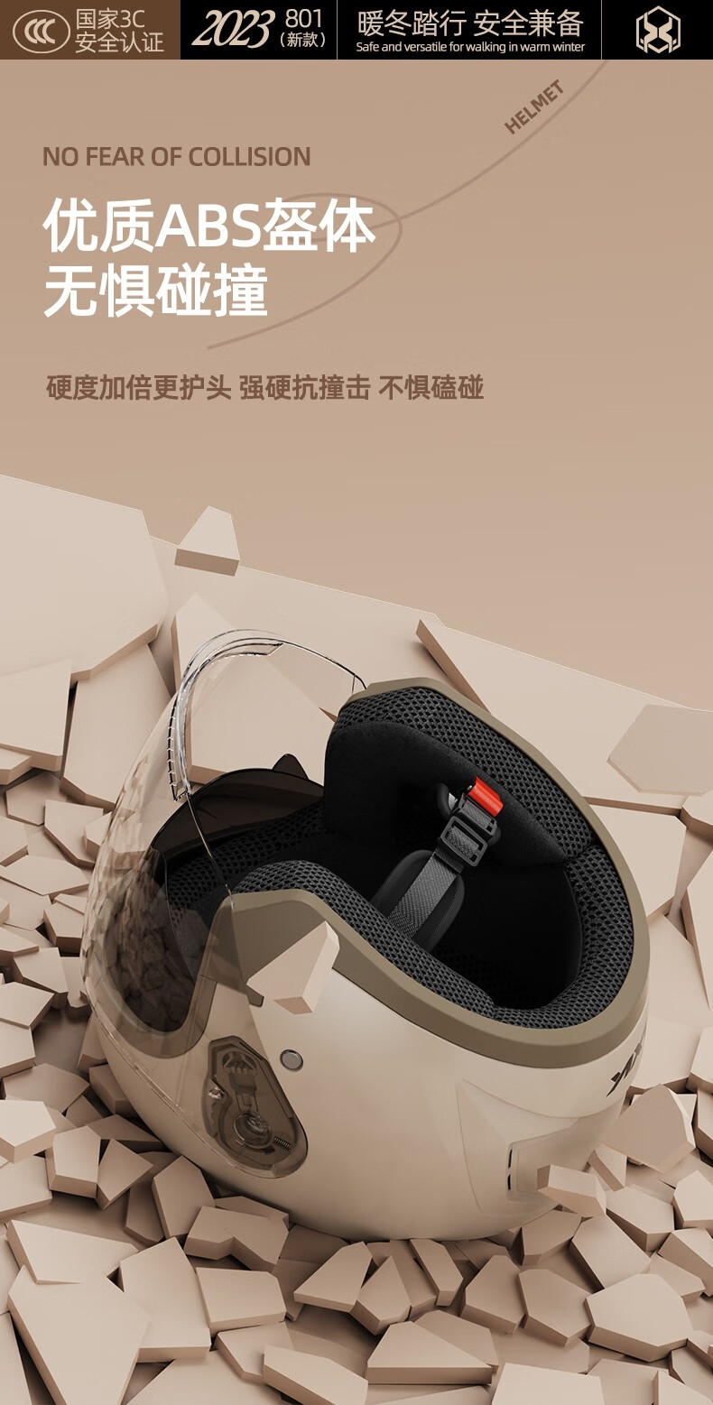 Queshi 3C Certified Electric Vehicle Helmet Unisex Motorcycle Safety Hat Battery Vehicle Winter Helmet Anti-freeze and Warm Khaki Dual Lenses + HD Anti-Fog Head Circumference 54cm-61cm