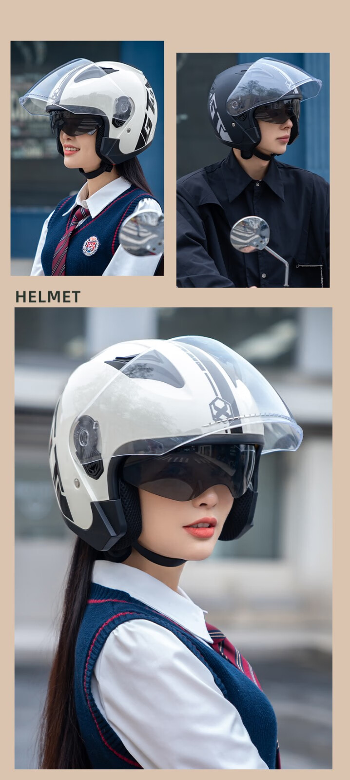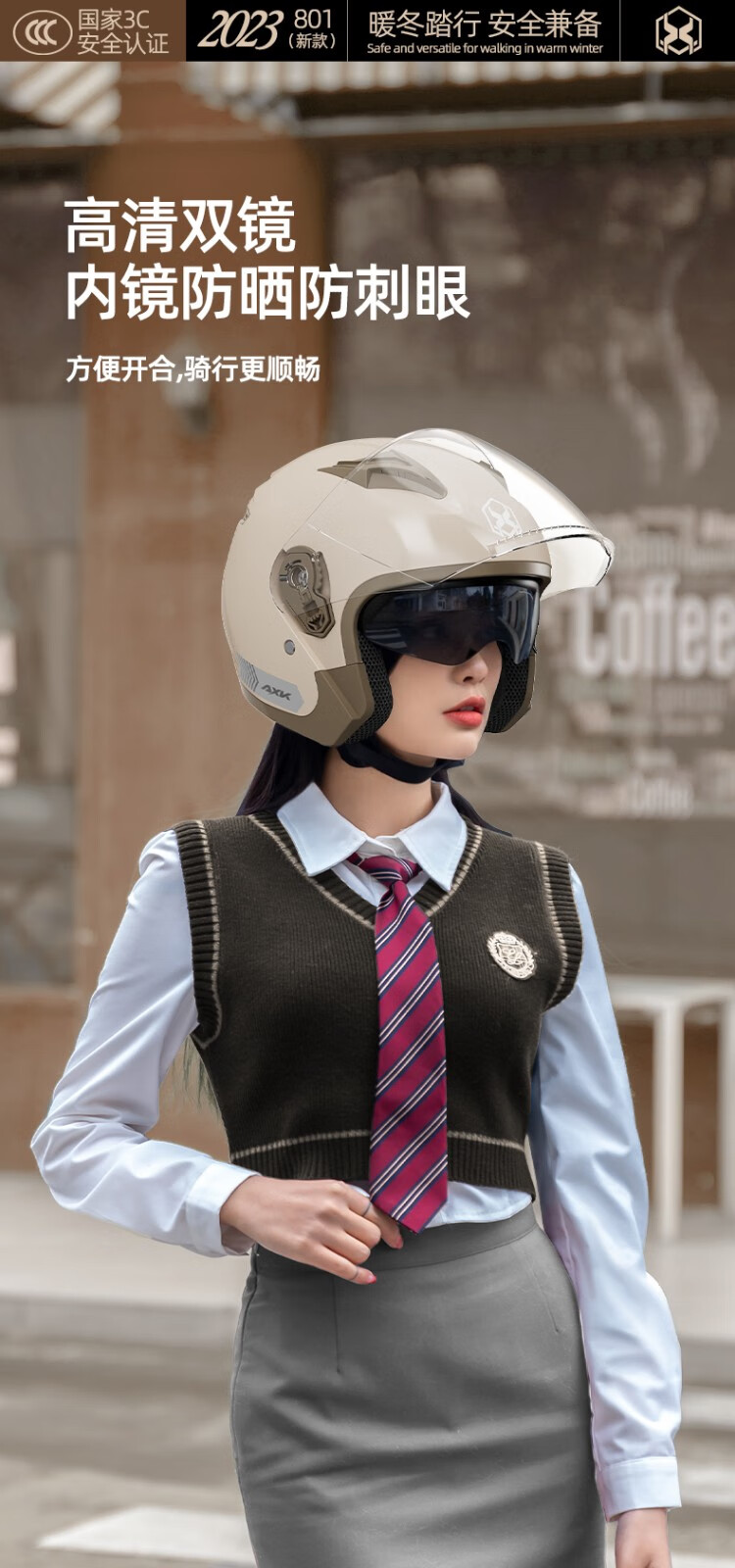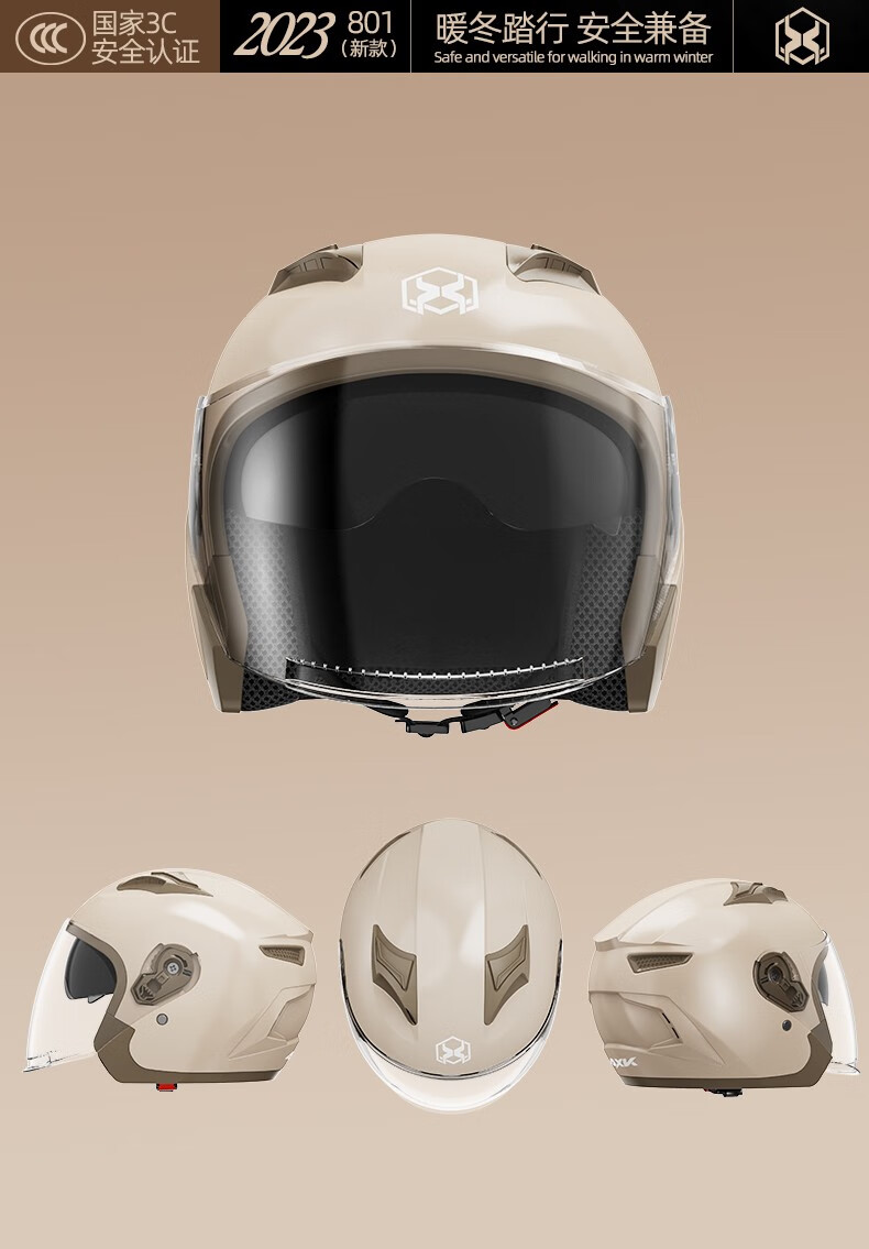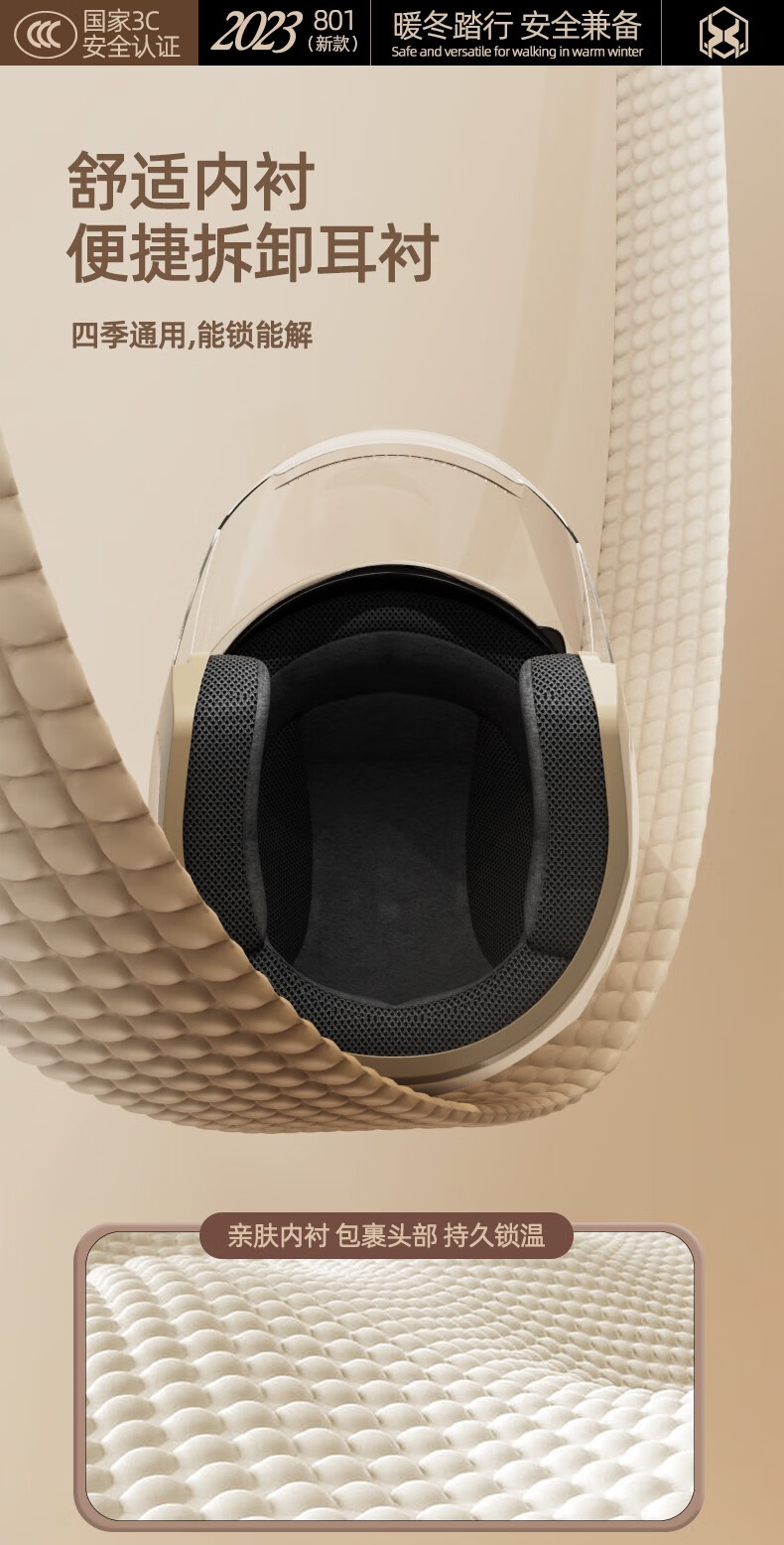Queshi 3C Certified Electric Vehicle Helmet Unisex Motorcycle Safety Hat Battery Vehicle Winter Helmet Anti-freeze and Warm Khaki Dual Lenses + HD Anti-Fog Head Circumference 54cm-61cm