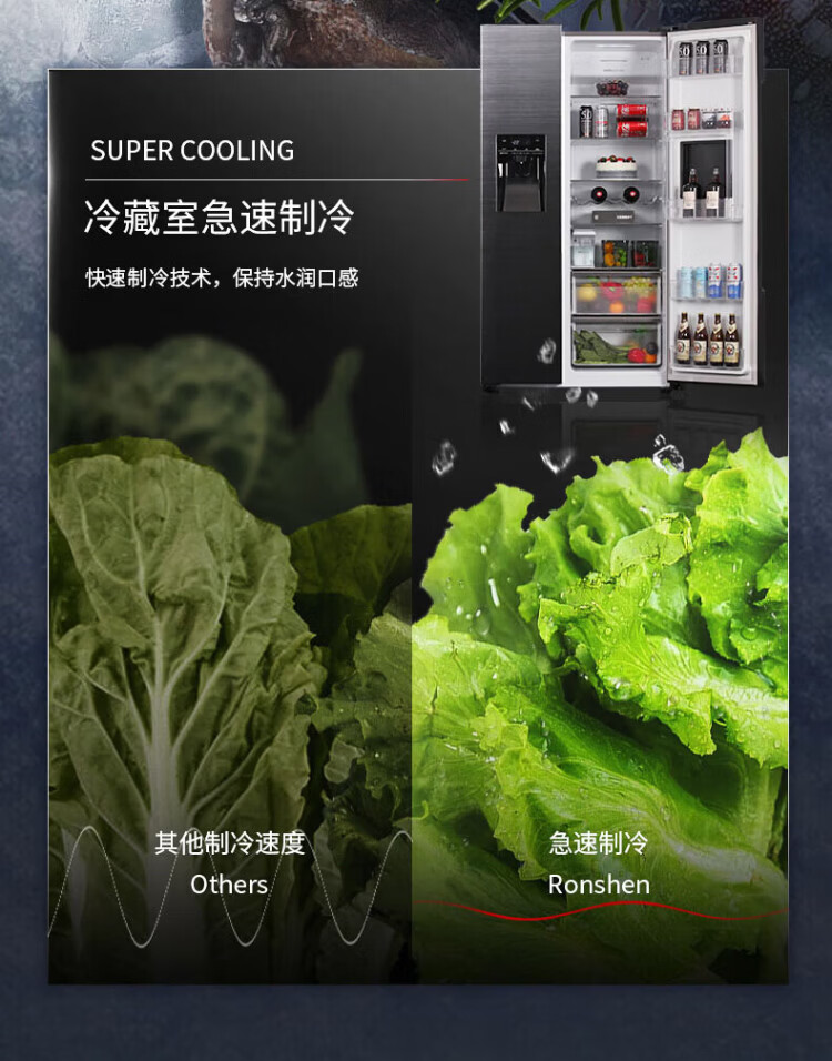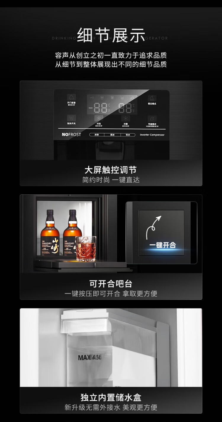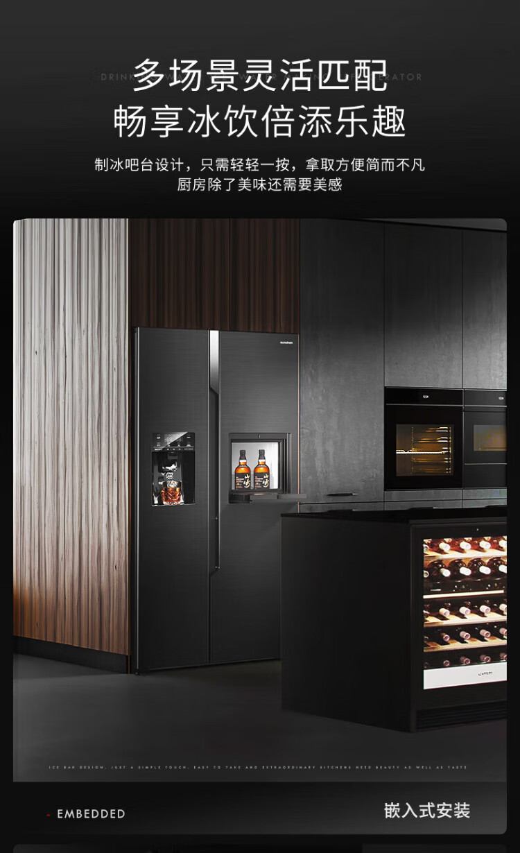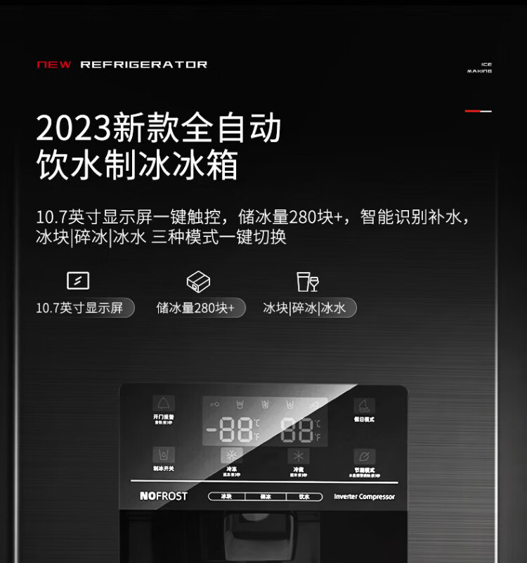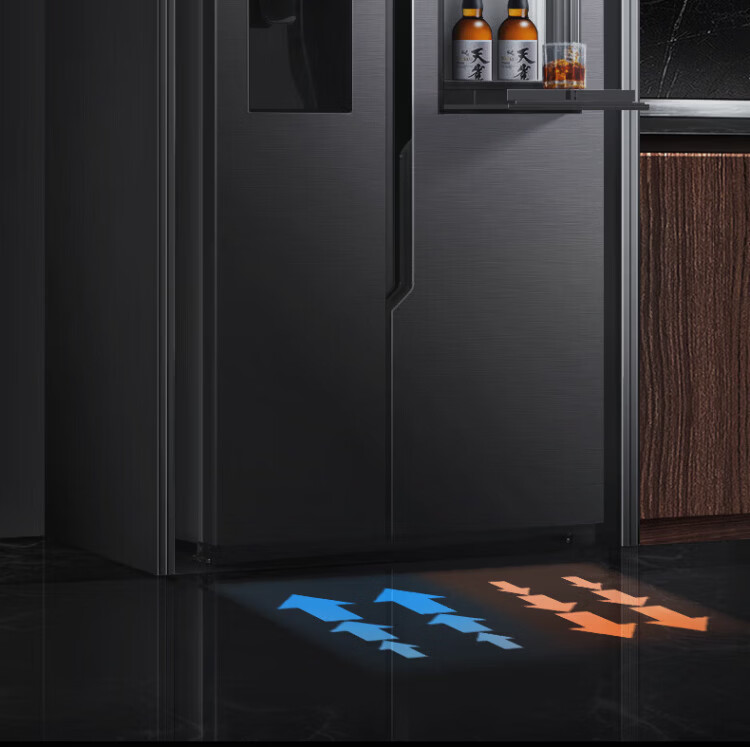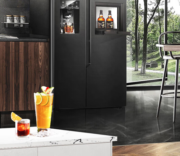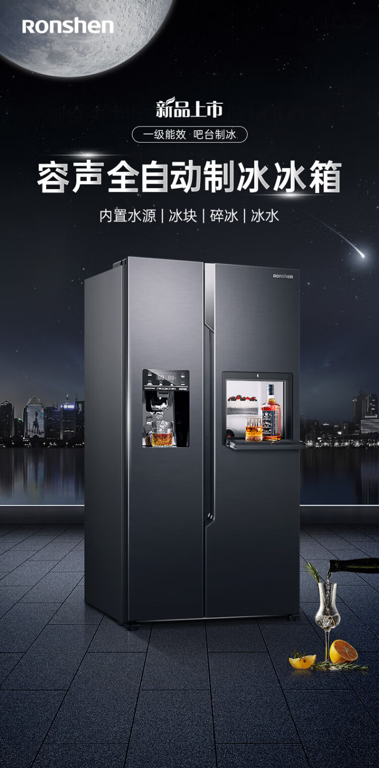 Ronshen ice-making refrigerator new model 565L with bar first-class energy efficiency frequency conversion air-cooling with ice machine function all-in-one household double-door Ronshen 565 bottom cooling frost-free refrigerator ice making refrigerator (black)