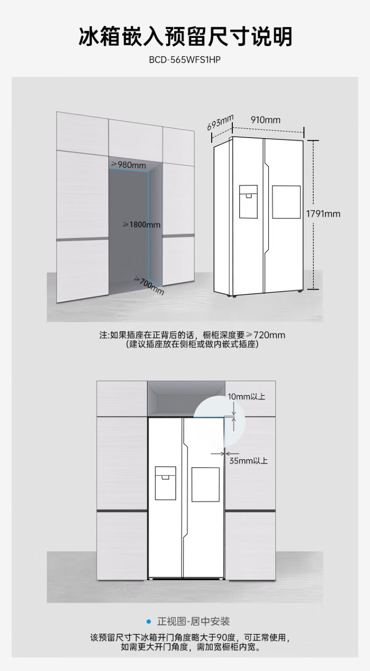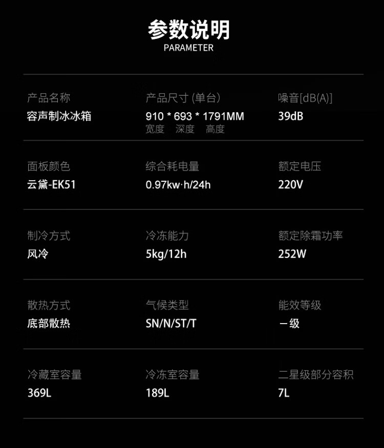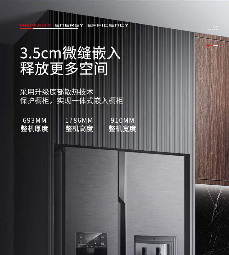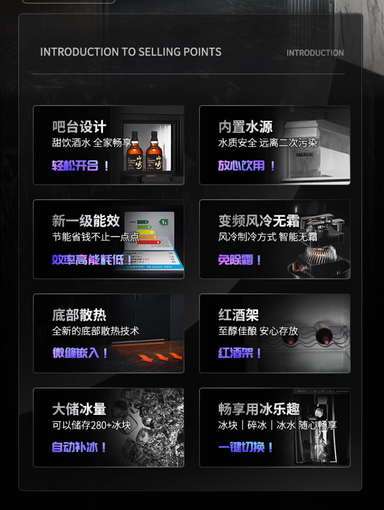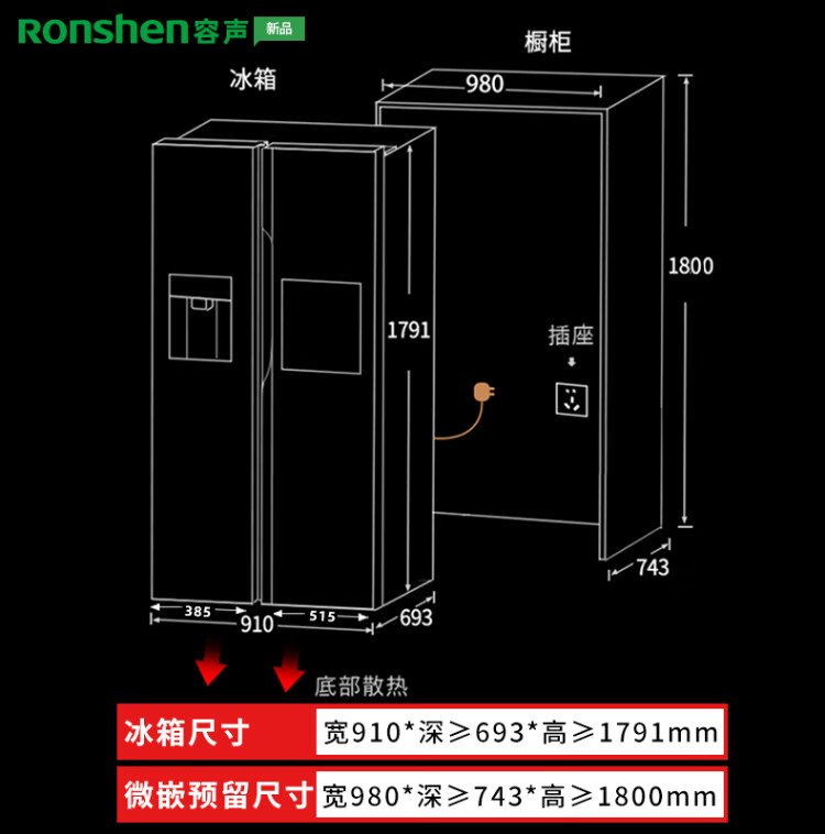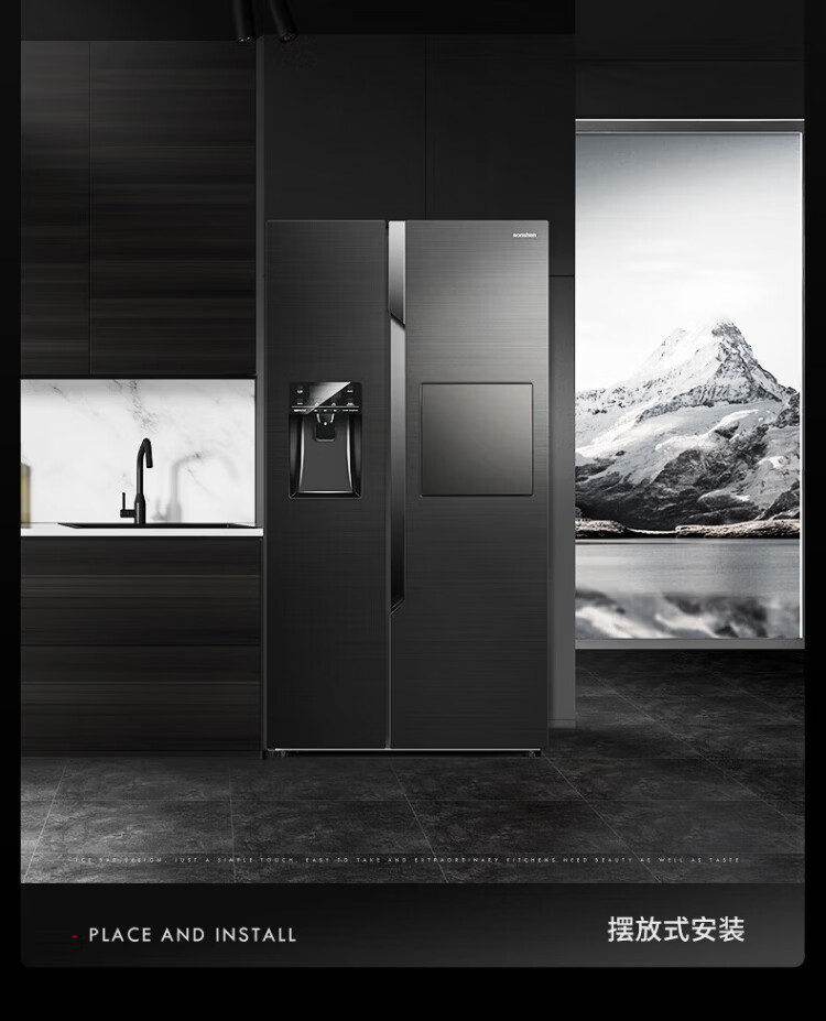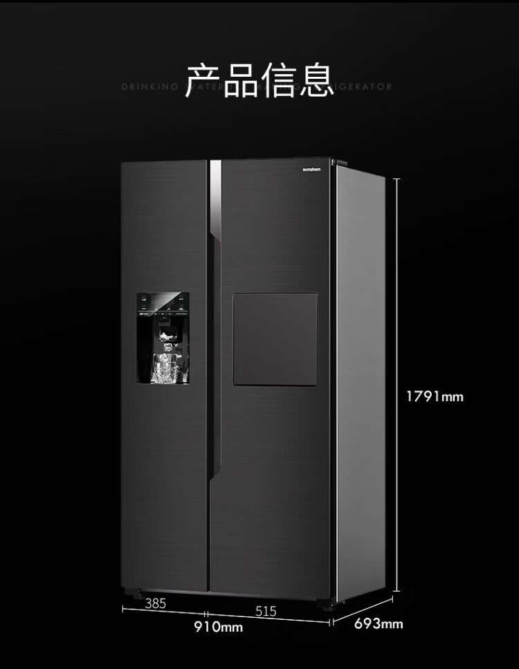 Ronshen ice-making refrigerator new model 565L with bar first-class energy efficiency frequency conversion air-cooling with ice machine function all-in-one household double-door Ronshen 565 bottom cooling frost-free refrigerator ice making refrigerator (black)
