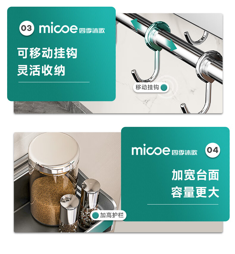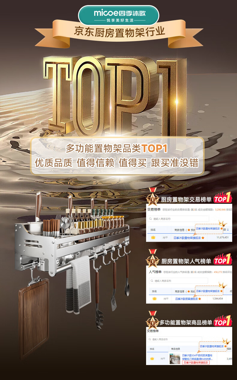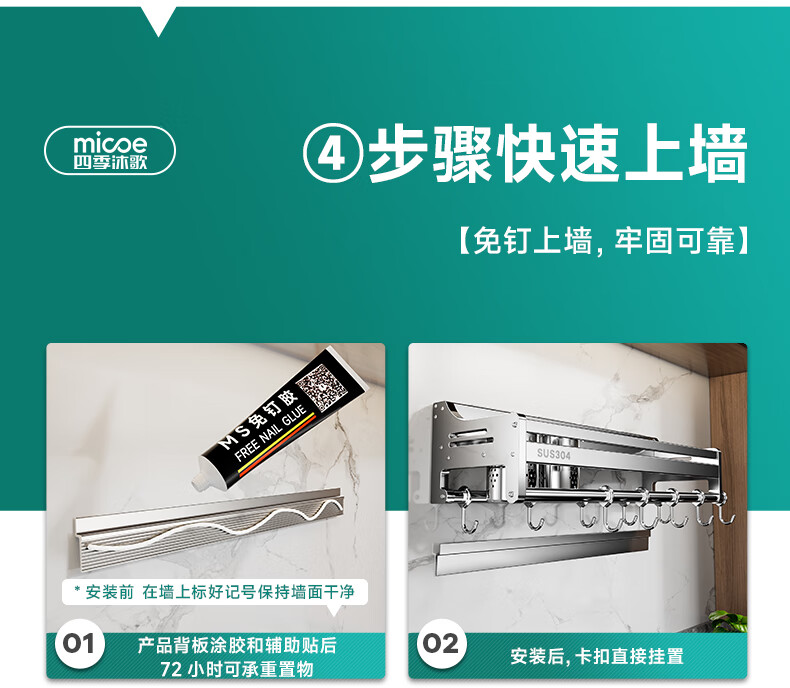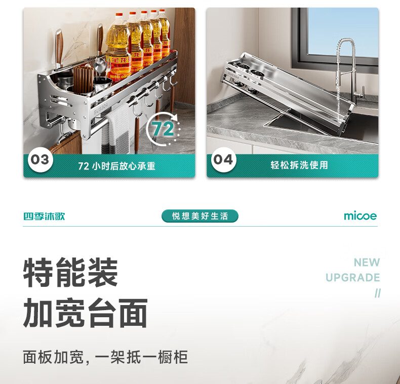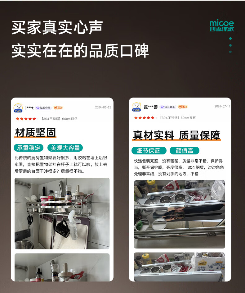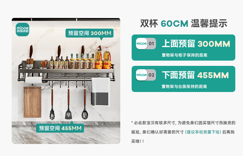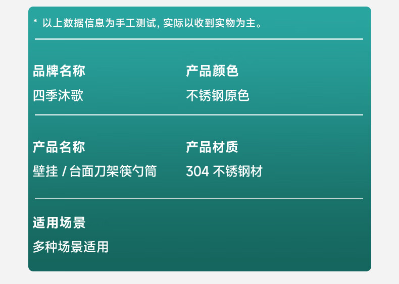 Four Seasons Muge 304 stainless steel kitchen rack wall-mounted knife holder pot lid seasoning storage rack chopstick barrel kitchen utensils 304 stainless steel 60cm double cup