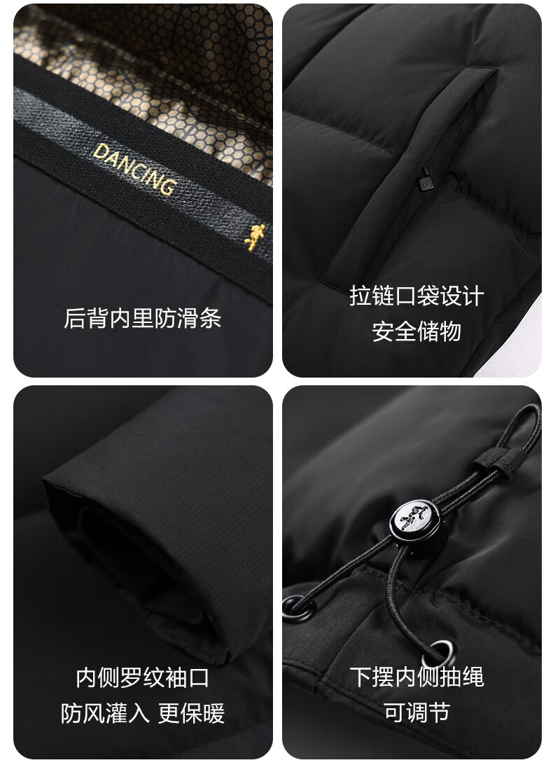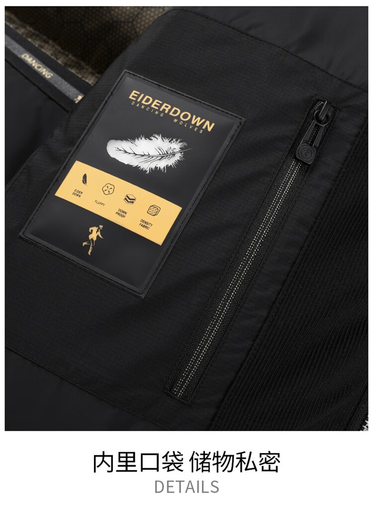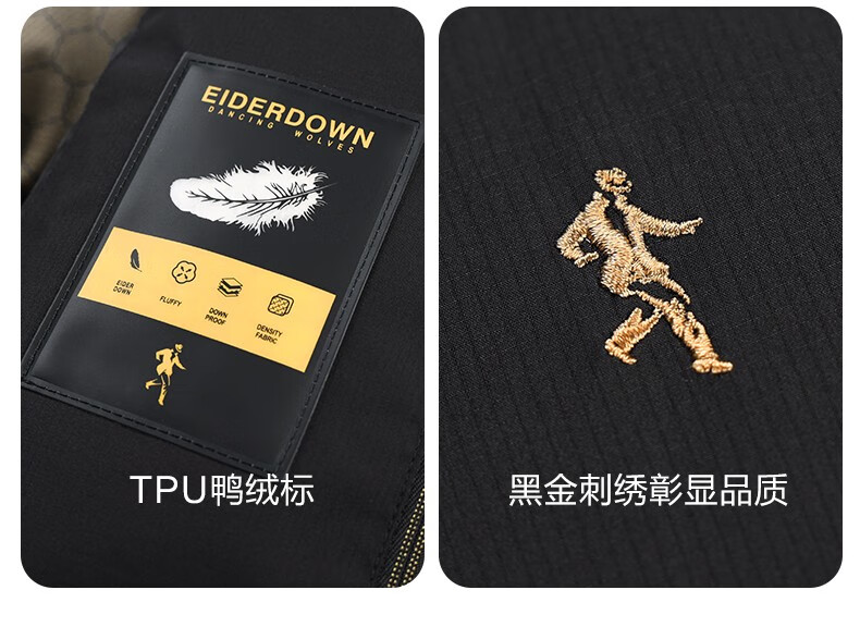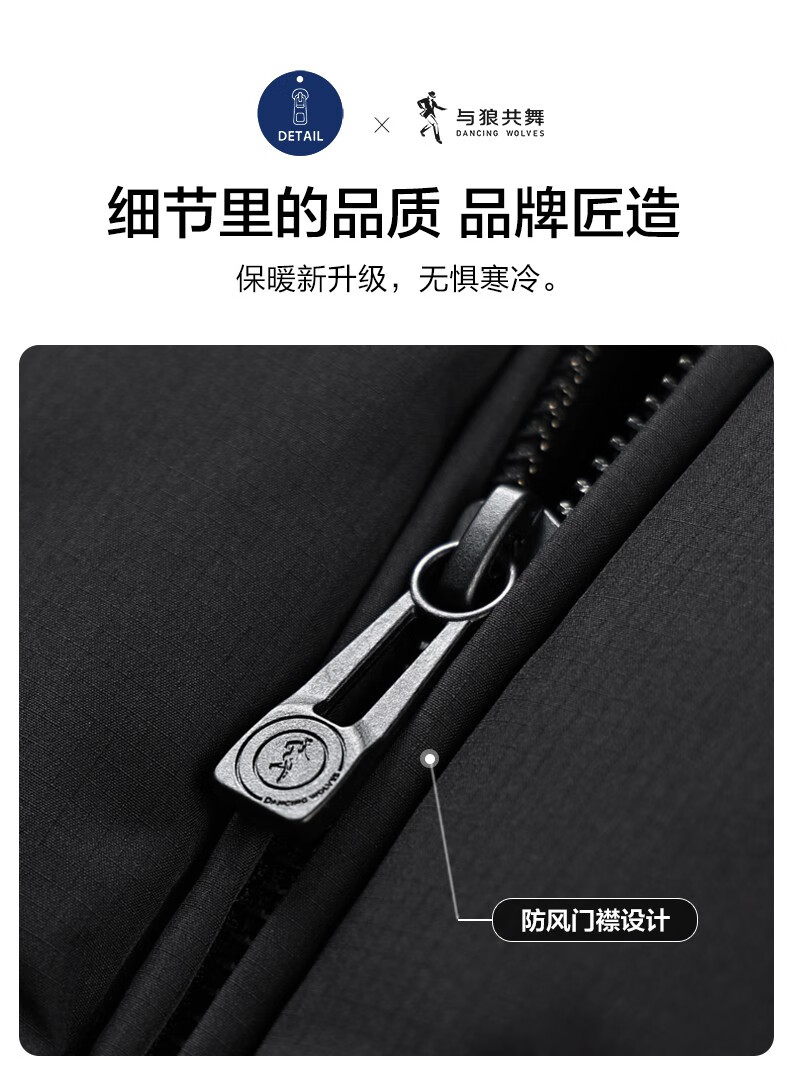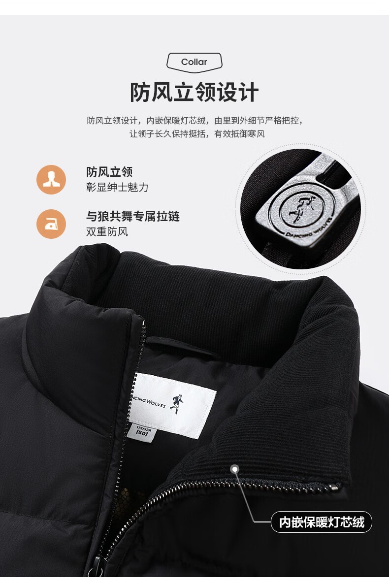 Dances with Wolves High Filled Down Jacket Stand Collar Men's 2025 Winter New Temperature Locking Graphene Warm Men's Jacket 7067 Black 001 XL (180) Down Filling Capacity 300G