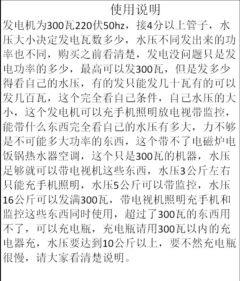Yichen customized Yuruo hydraulic generator household outdoor hydraulic turbine small portable high-power outdoor test