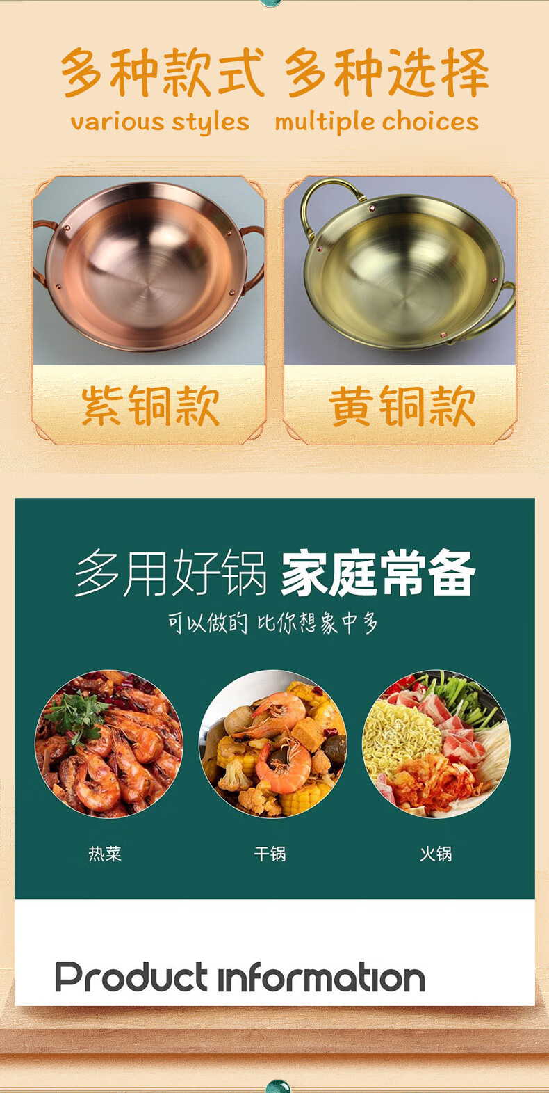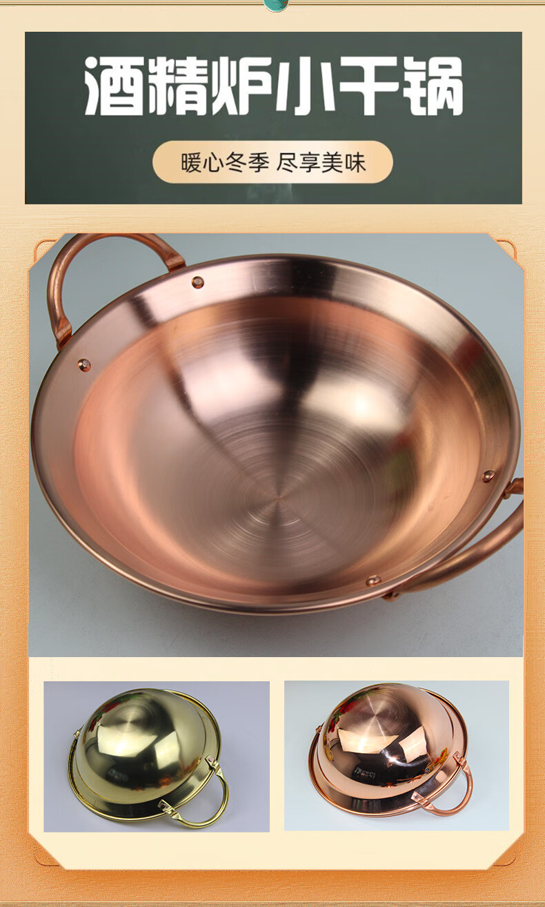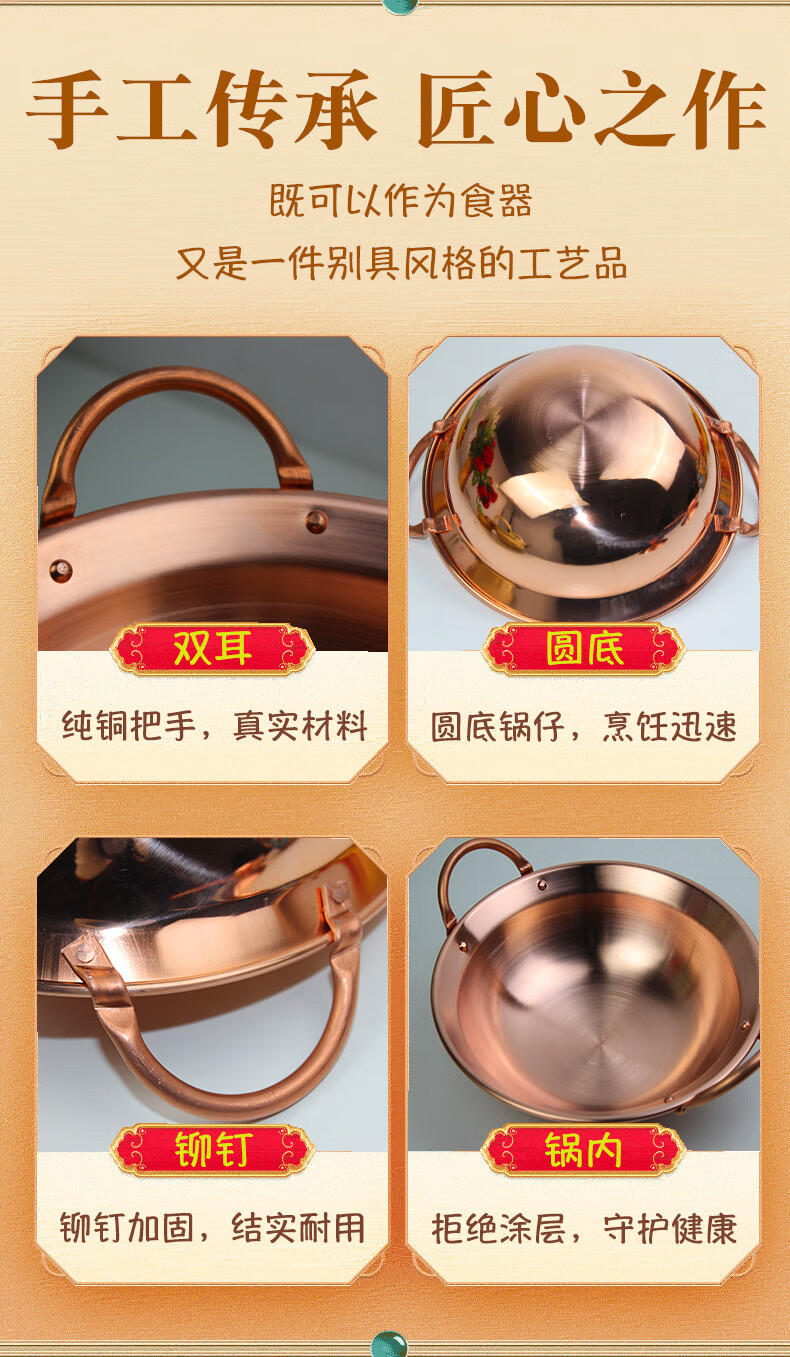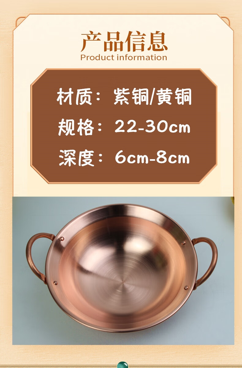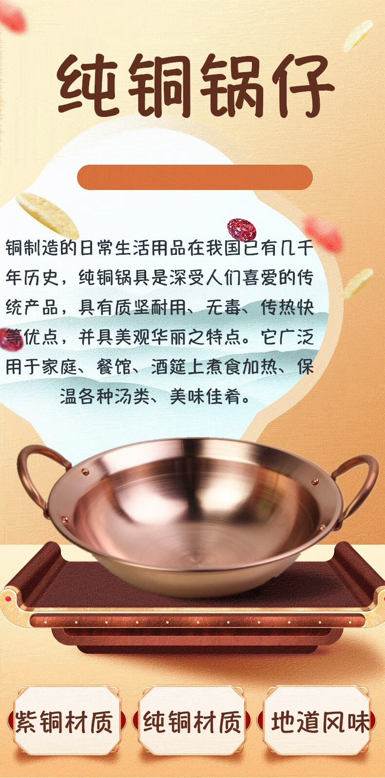 Tongweiju copper pot brass pot red copper pot dry pot double-eared copper hot pot alcohol copper hot pot shabu hot pot spicy dry pot red copper/pot 30cm/5-8 people