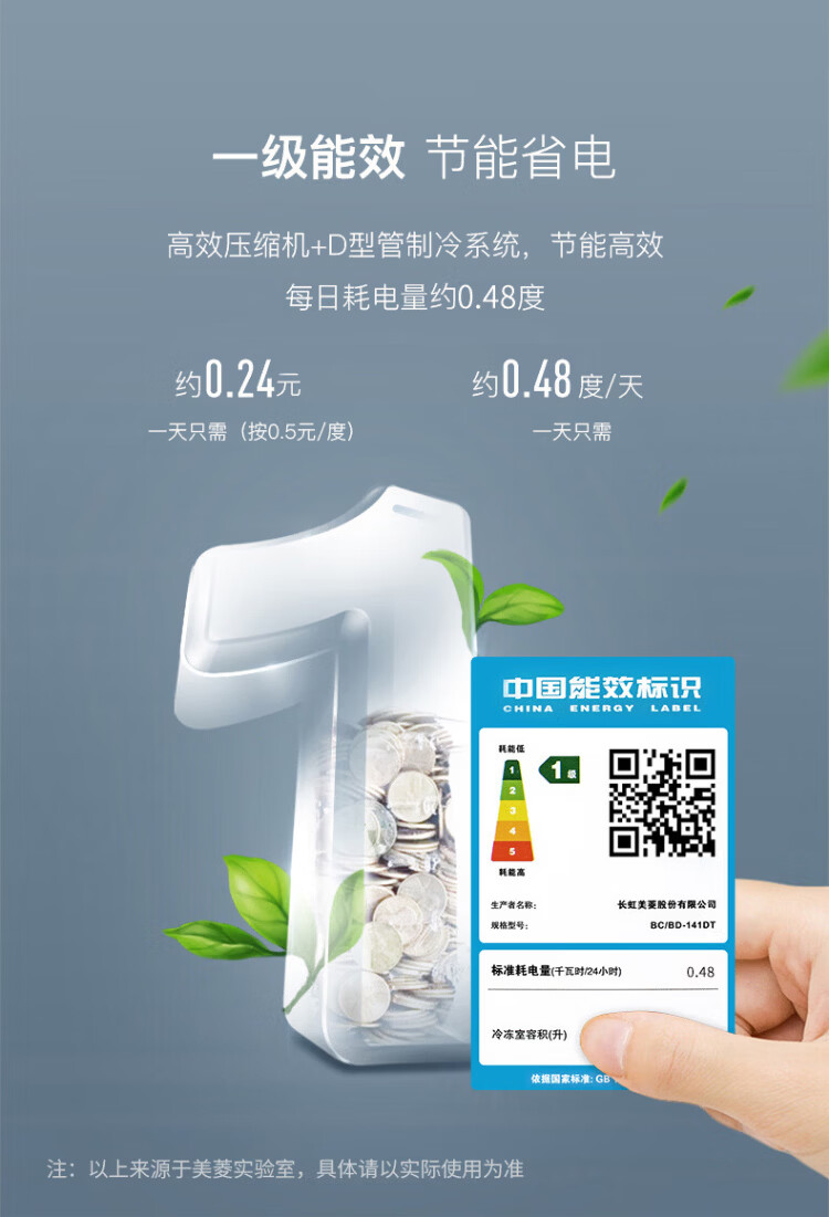 MeiLing antibacterial and frost reducing 141 liter single temperature household freezer ultra-thin 84.1% frost reduction first level energy efficiency cryogenic quick freezing 120 hours power outage protection BC/BD-141DT white trade-in white 141 liters BC/BD-141DT