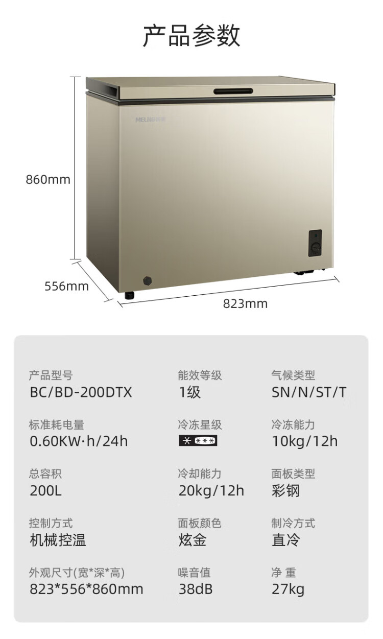 MeiLing antibacterial and frost reducing 201 liter single temperature household freezer ultra-thin 84.1% frost reduction first level energy efficiency cryogenic quick freezing 120 hours power outage protection BC/BD-201DT white trade-in white 201 liter BC/BD-201DT