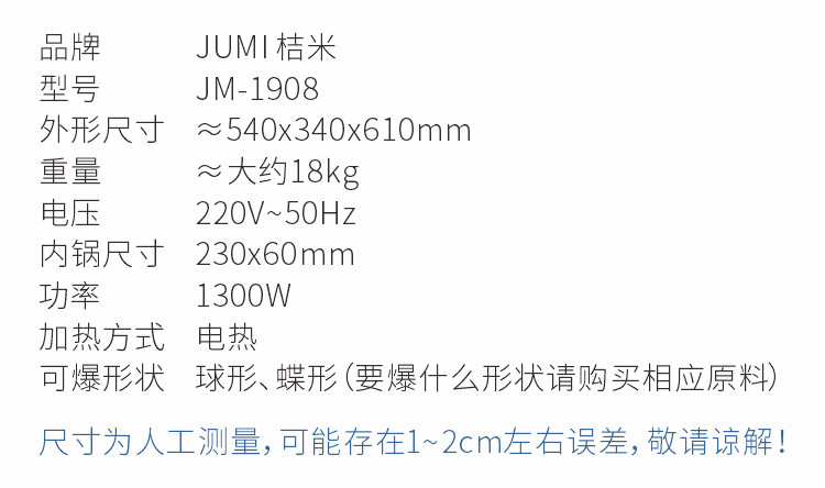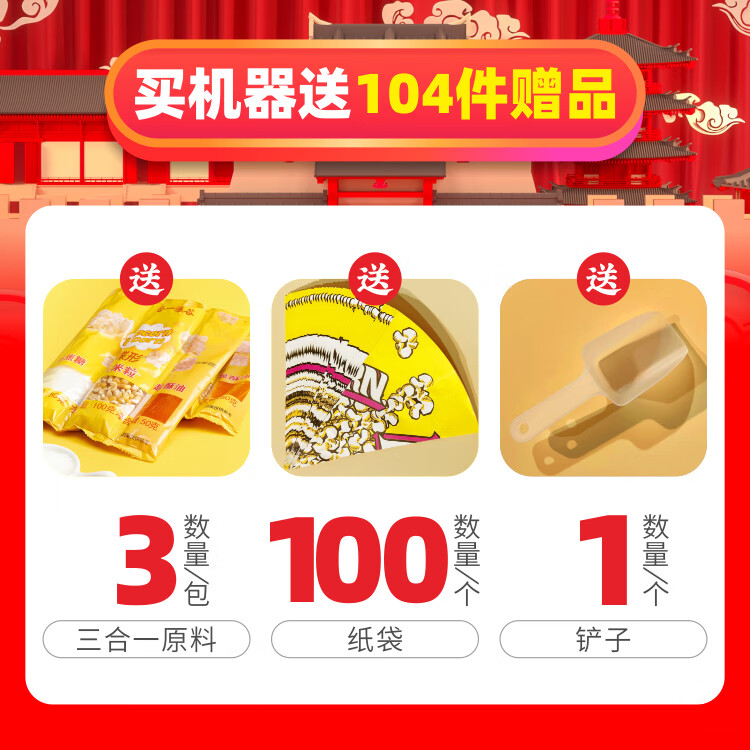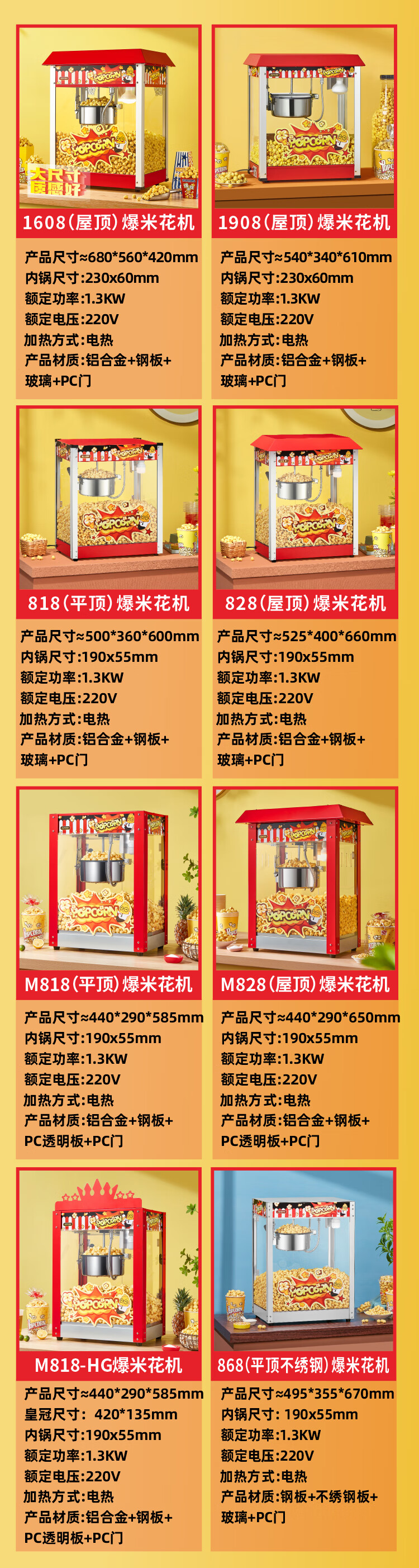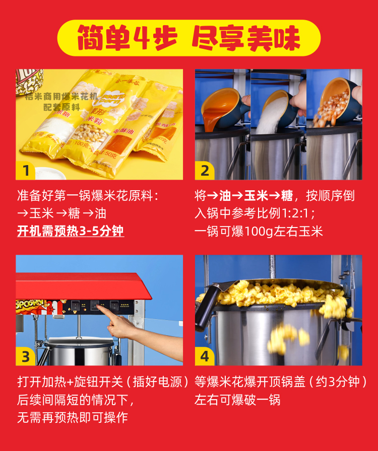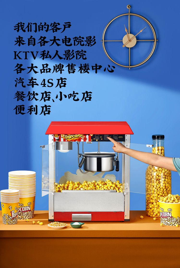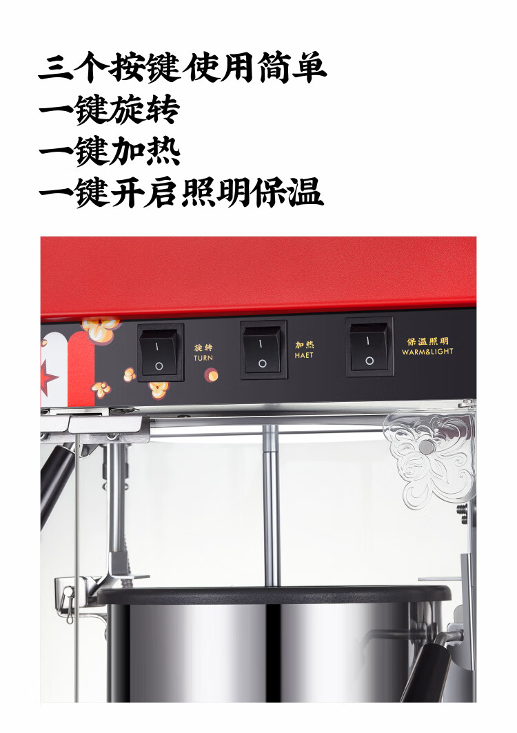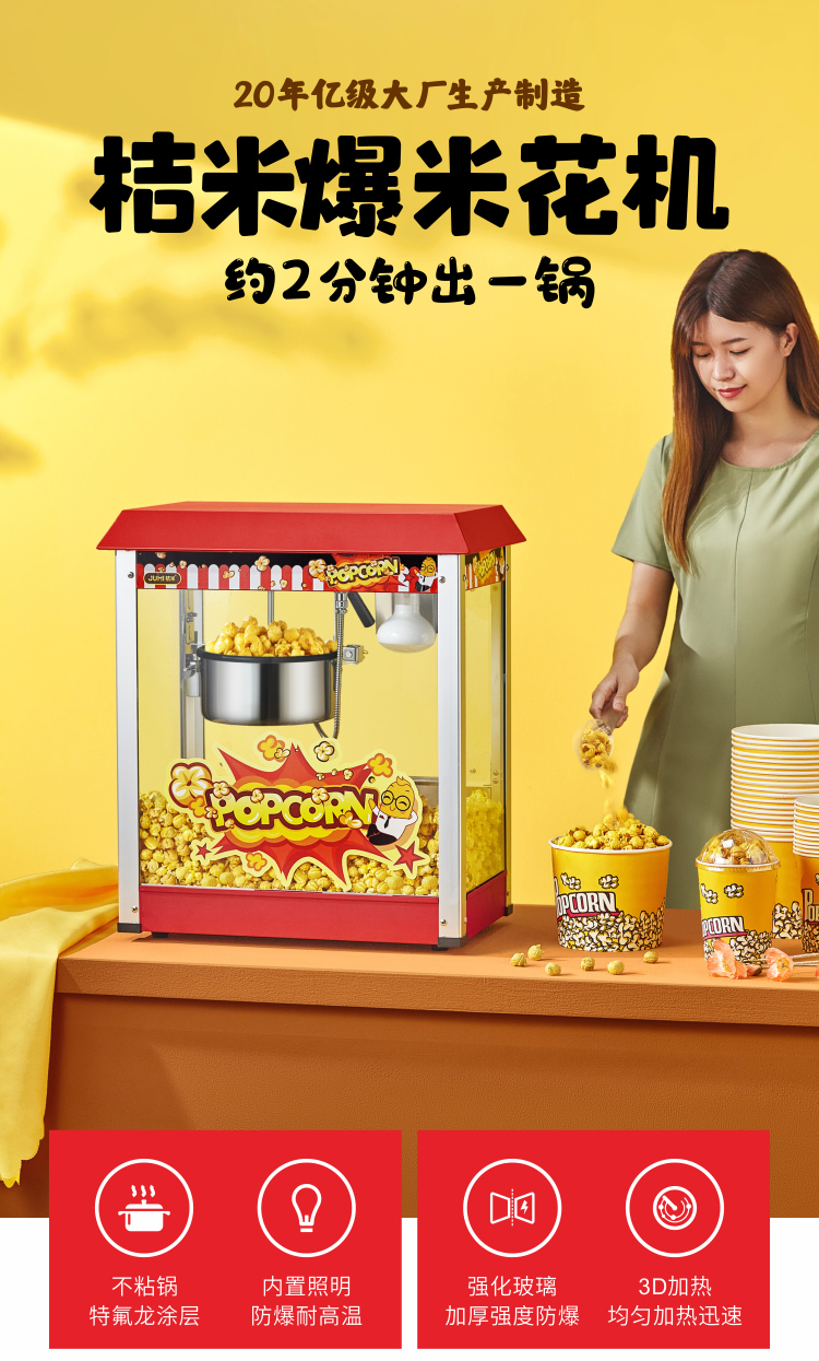Jumi (JUMI) popcorn machine commercial fully automatic popcorn machine spherical popcorn machine non-stick pan spherical corn popcorn machine butterfly commercial commercial red luxury-roof type-non-stick pan-with heat preservation