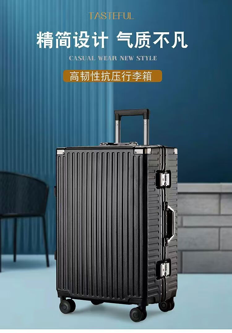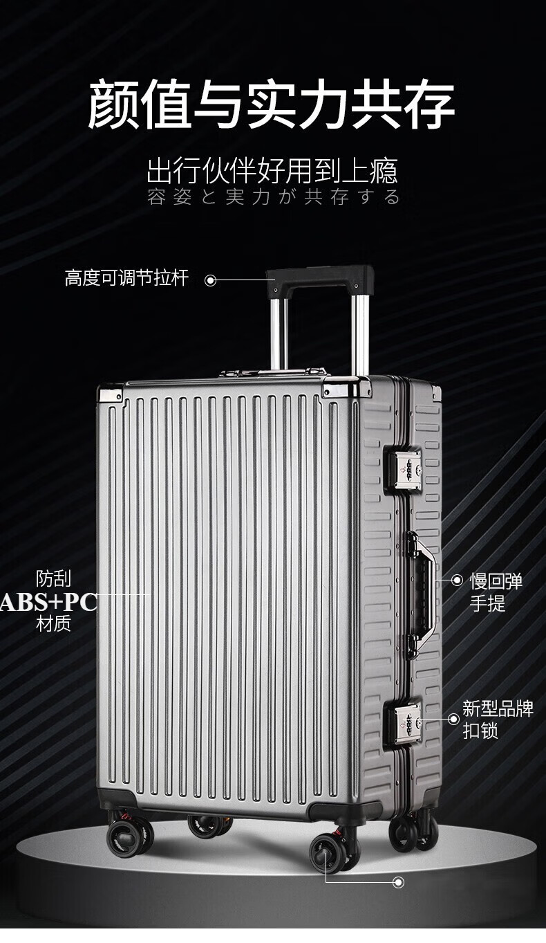 Snow Cass suitcase large-capacity case, thickened and can sit on, aluminum frame trolley case, student suitcase, high-looking password box, leather suitcase, atmospheric black, strong and pressure-resistant, can sit on 32 inches, thickened and can sit on people