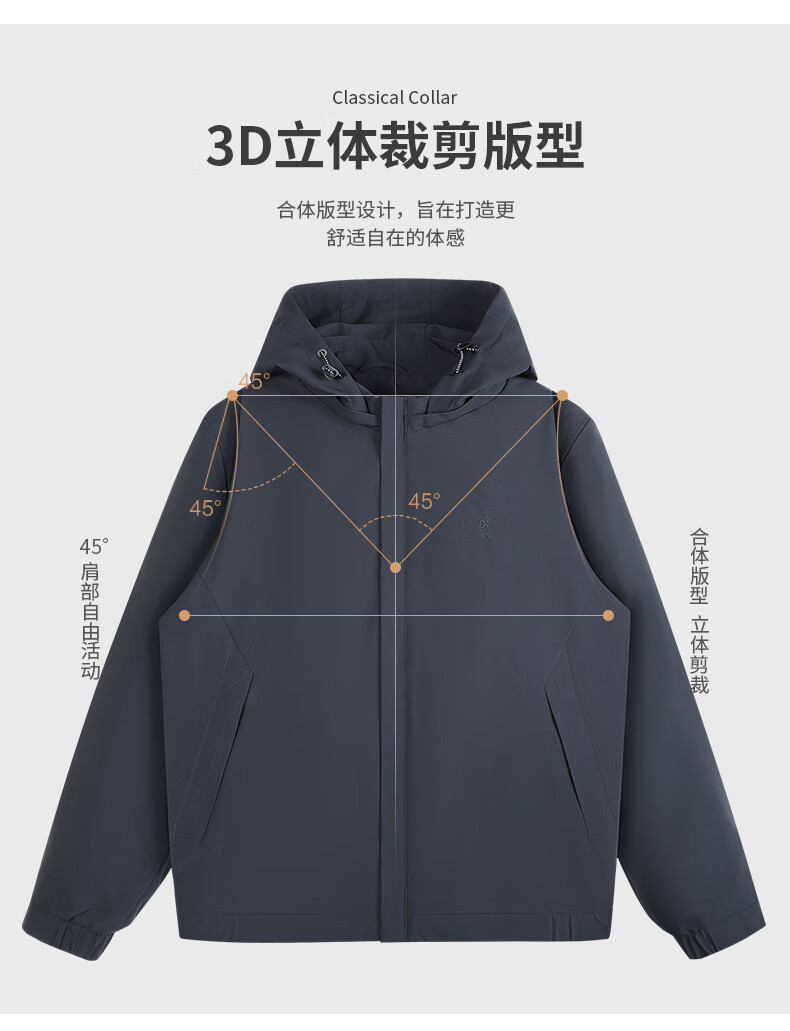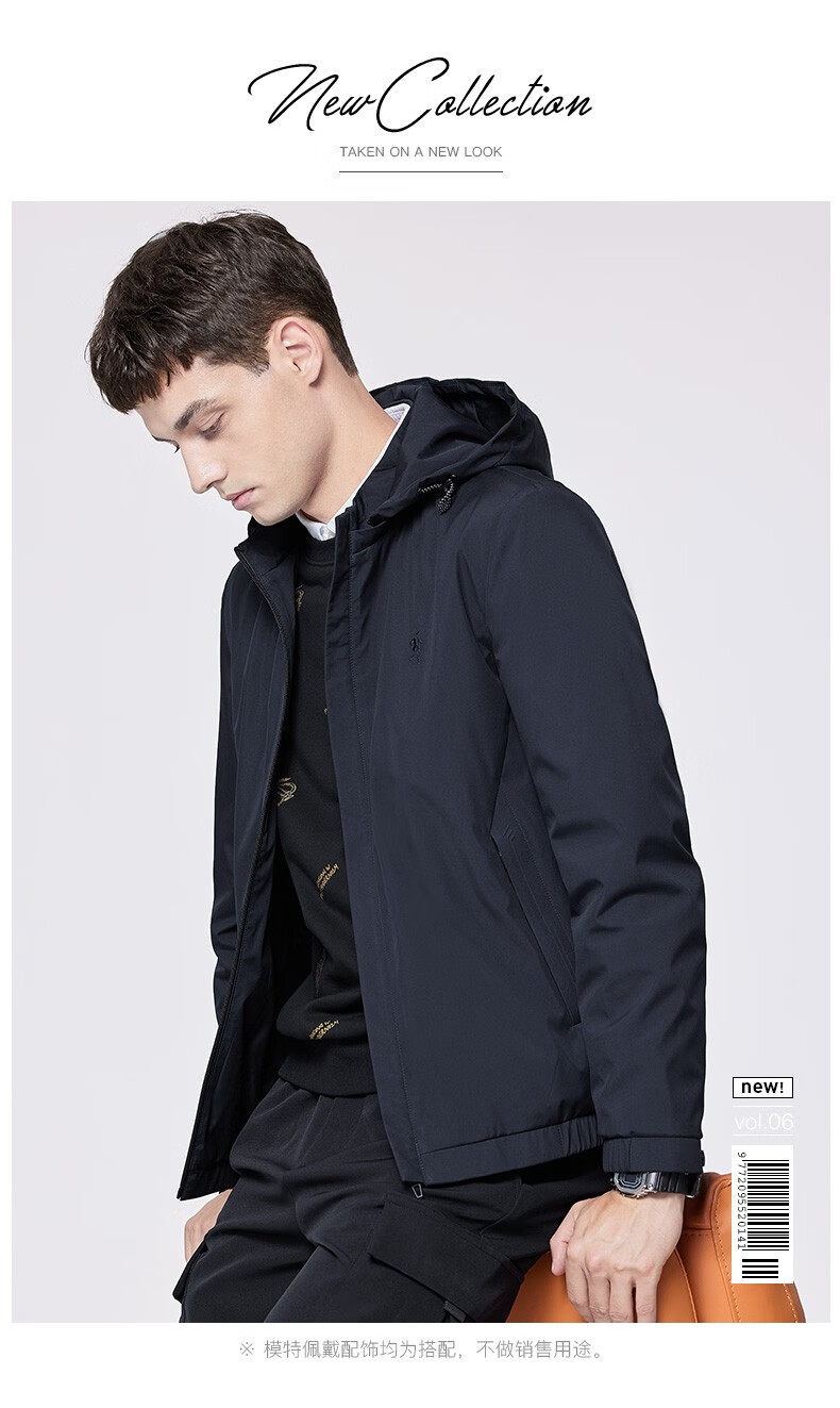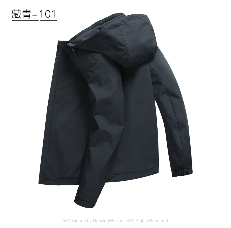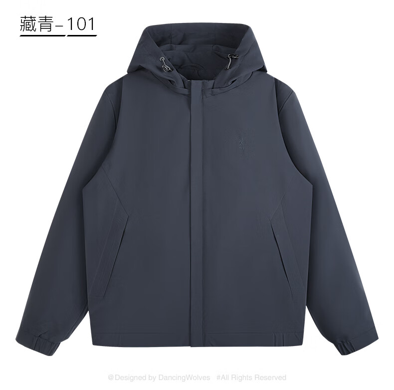 Dances with Wolves Windproof and Anti-wrinkle Hooded Jacket Men's Removable Hood 2026 Spring New Men's Casual Jacket 1025 Navy Blue 101-Fleece M (170)
