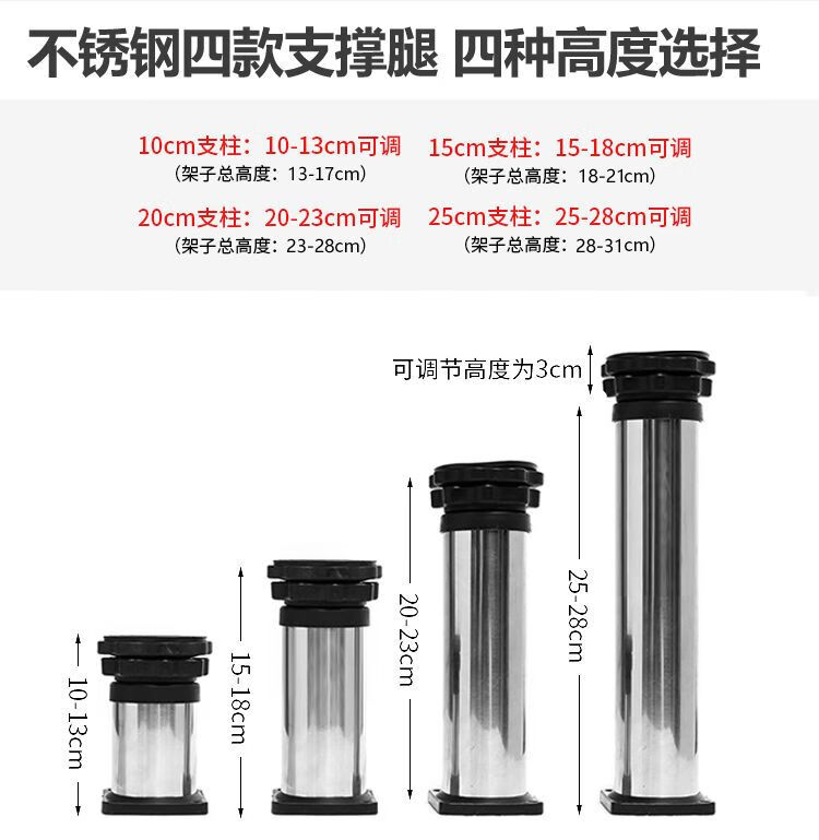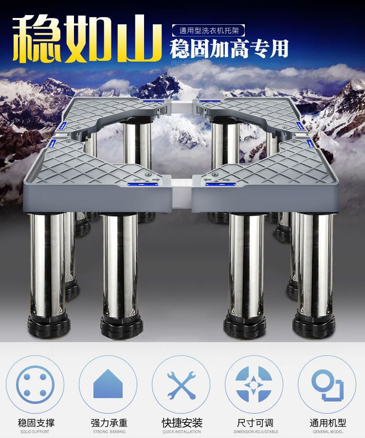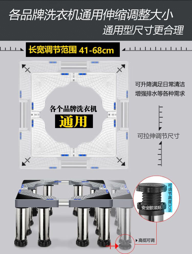 Refrigerator washing machine base universal fully automatic bracket storage rack drum heightening stainless steel bracket tripod stainless steel legs four-column fixed version leg height 10-13 cm