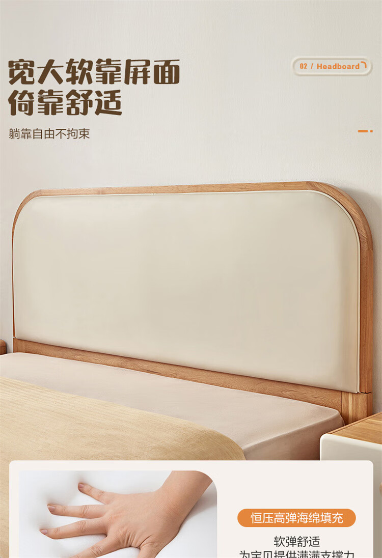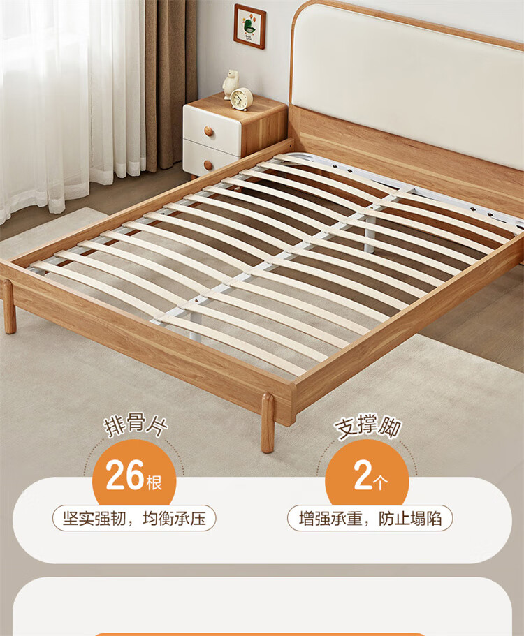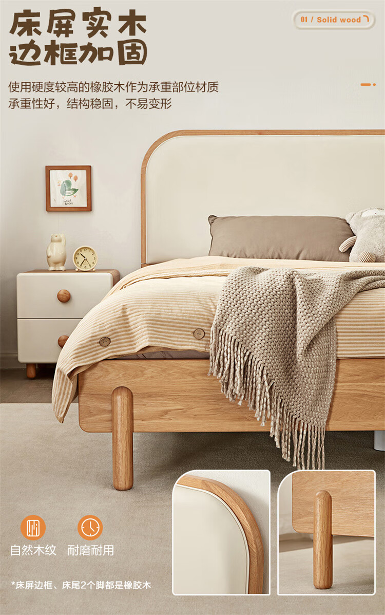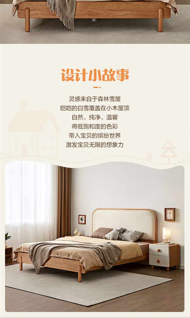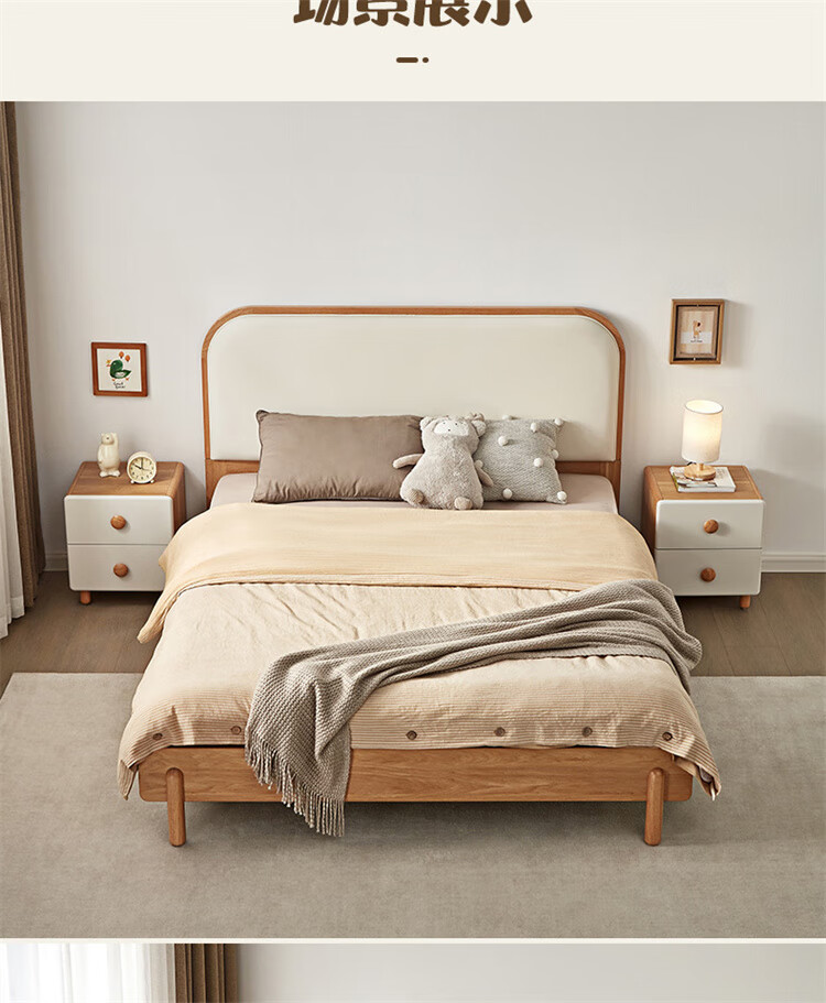Quanyou (QUANU) Home Bed Nordic Style Solid Wood Frame Children's Bed Stable Frame Bed Teenagers Boys and Girls 1.5 Meter Bed + 218 Mattress