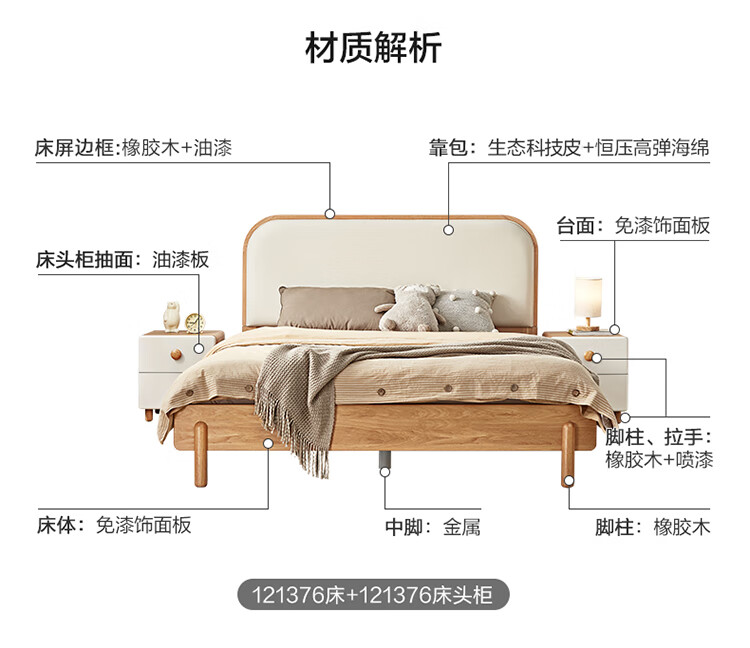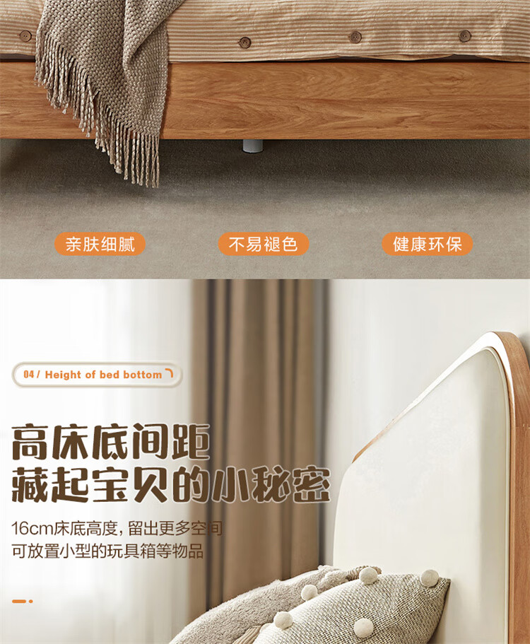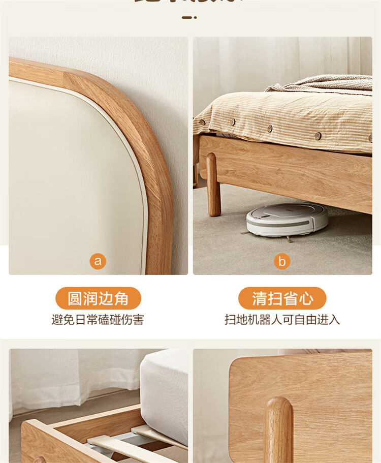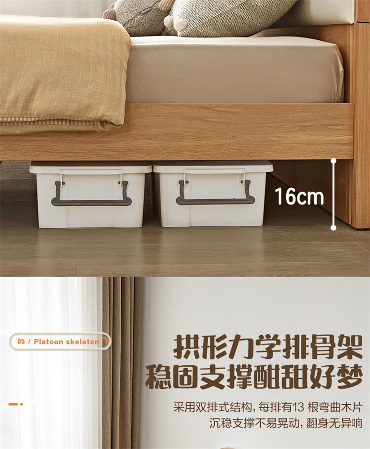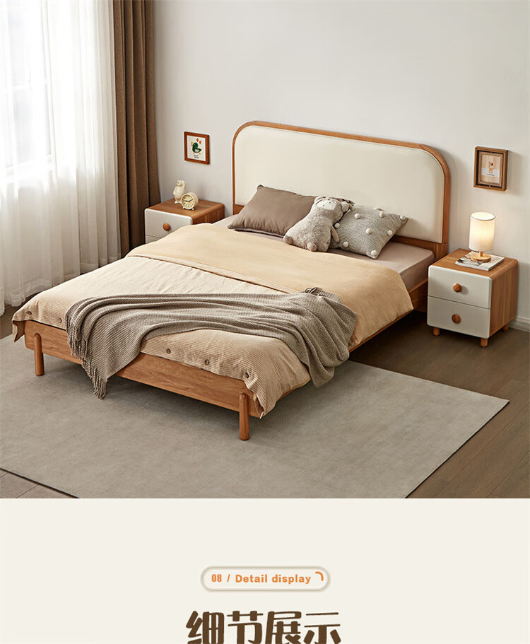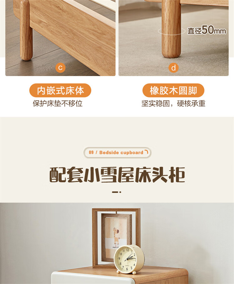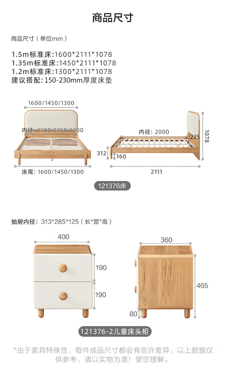 Quanyou (QUANU) Home Bed Nordic Style Solid Wood Frame Children's Bed Stable Frame Bed Teenagers Boys and Girls 1.5 Meter Bed + 218 Mattress