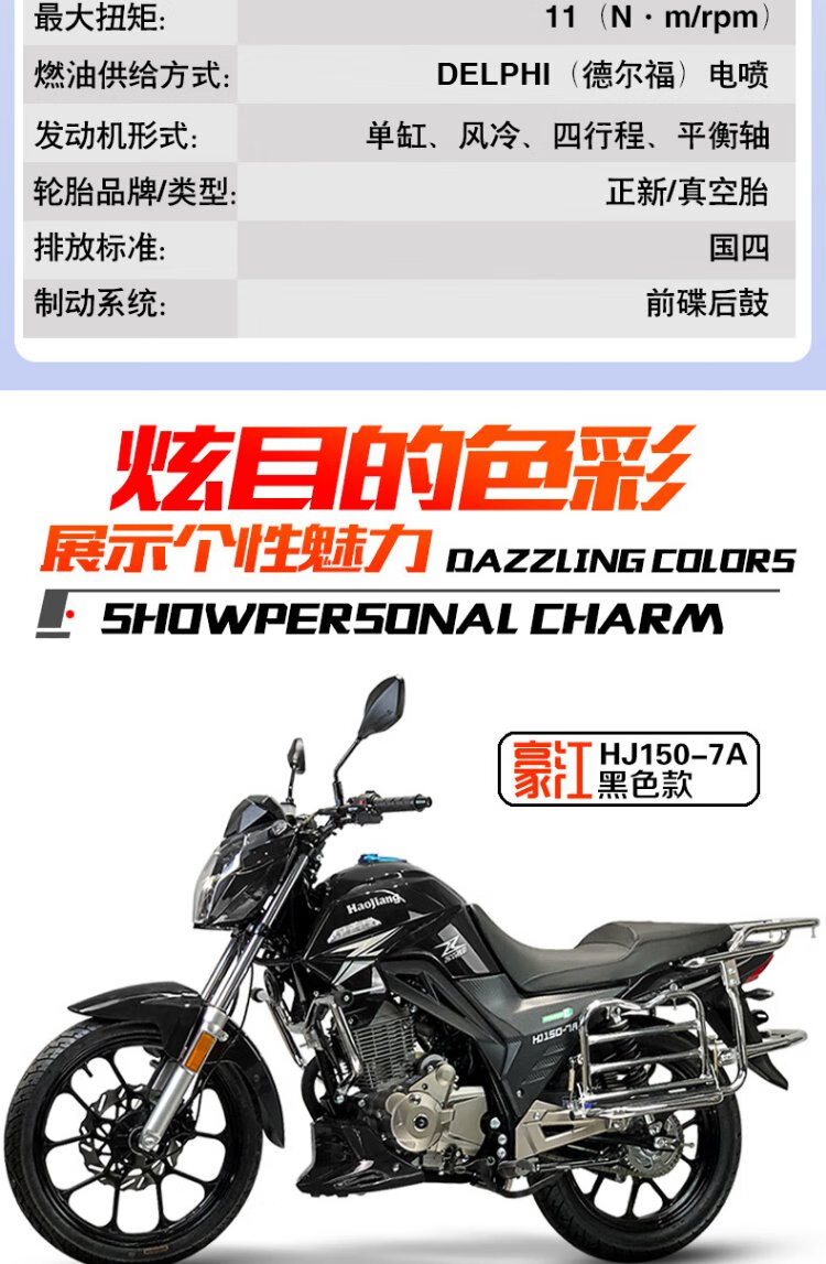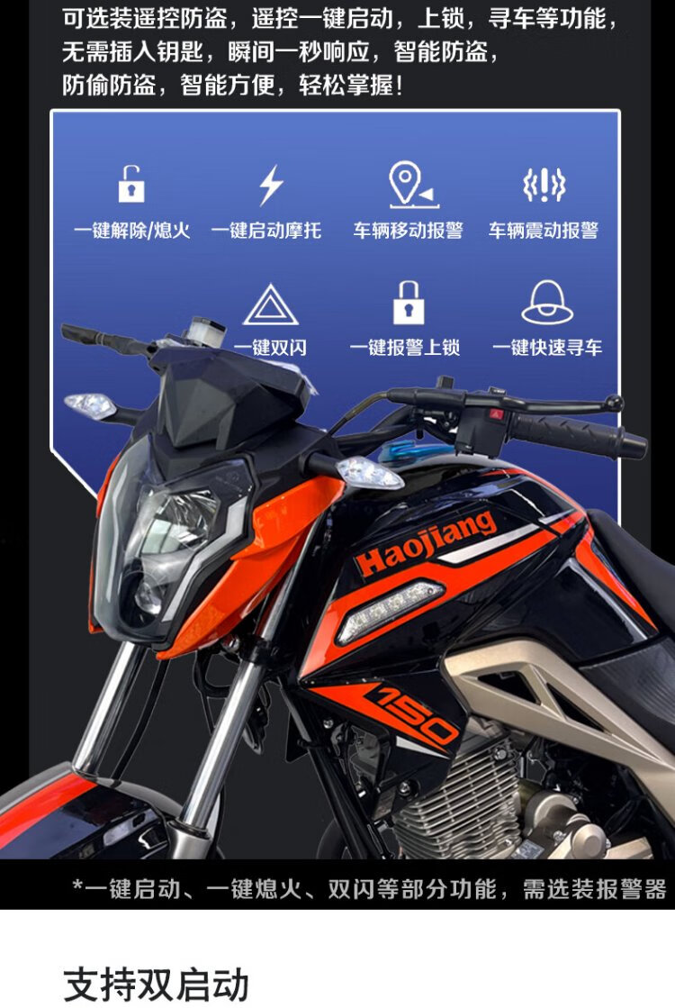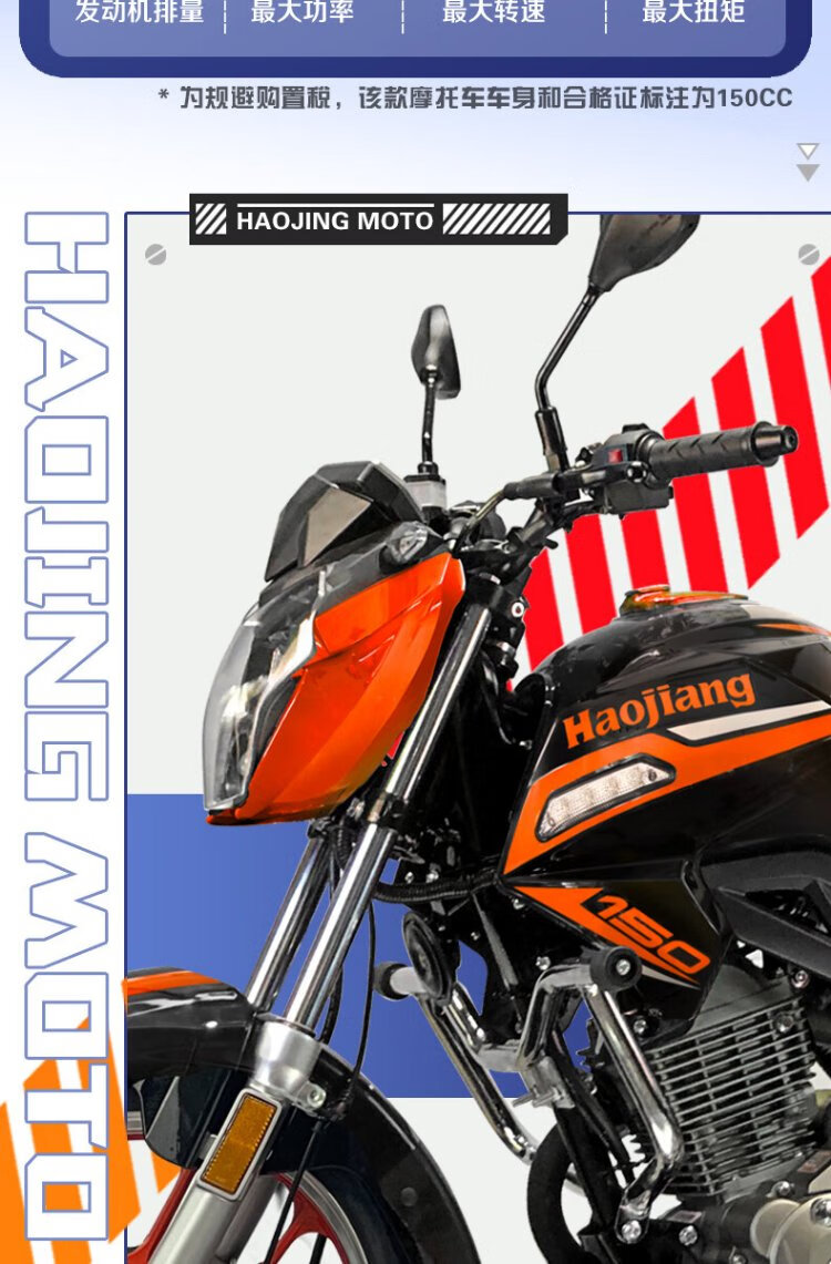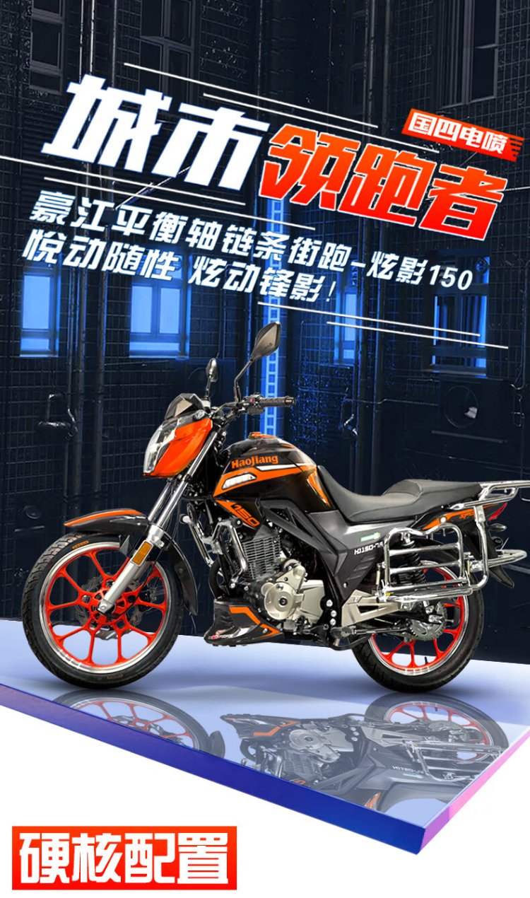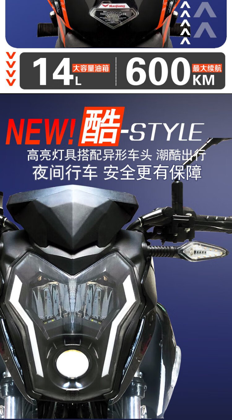 Haojiang Xuanying Street Car Imported EFI Fashionable Straddle Motorcycle National IV Small Chain Motor Fuel Saving Can Be Licensed 150/Certificate/Invoice + Guardrail Alarm Tail Box
