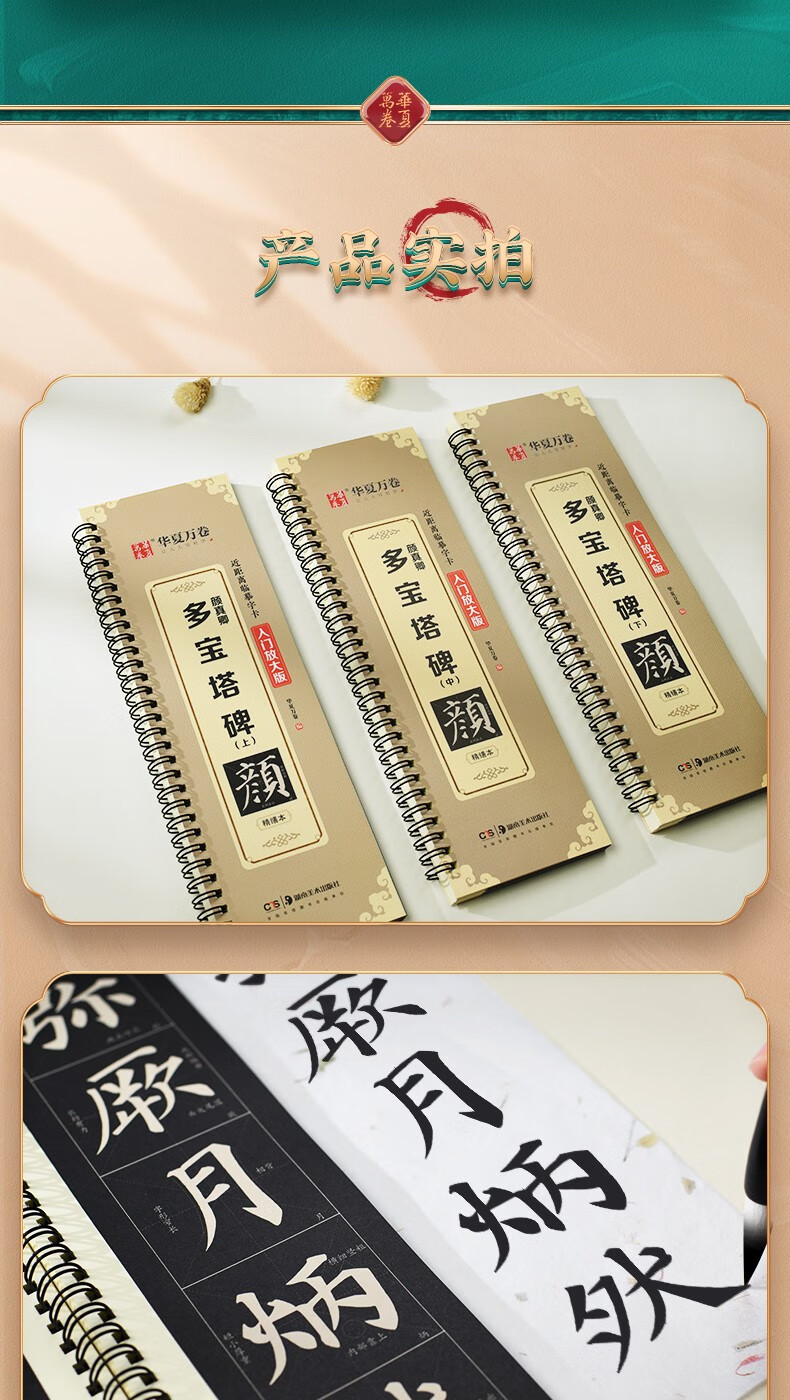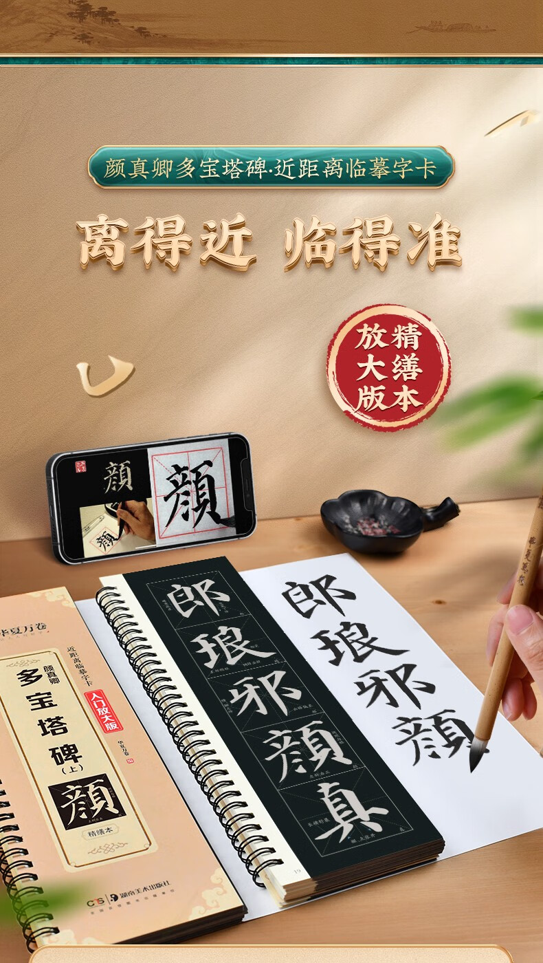 Refined edition of Yan Zhenqing's Duobao Pagoda Stele. Close-up copying calligraphy cards. Enlarged version of the full text for beginners. Scan the code to watch the video tutorial. Adult beginners' introductory regular script brush copy calligraphy calligraphy copybook. Huaxia Wanjuan. Hunan Fine Arts Publishing House. Refined edition of Duobao Pagoda Stele (three volumes of full text). 408 pages.