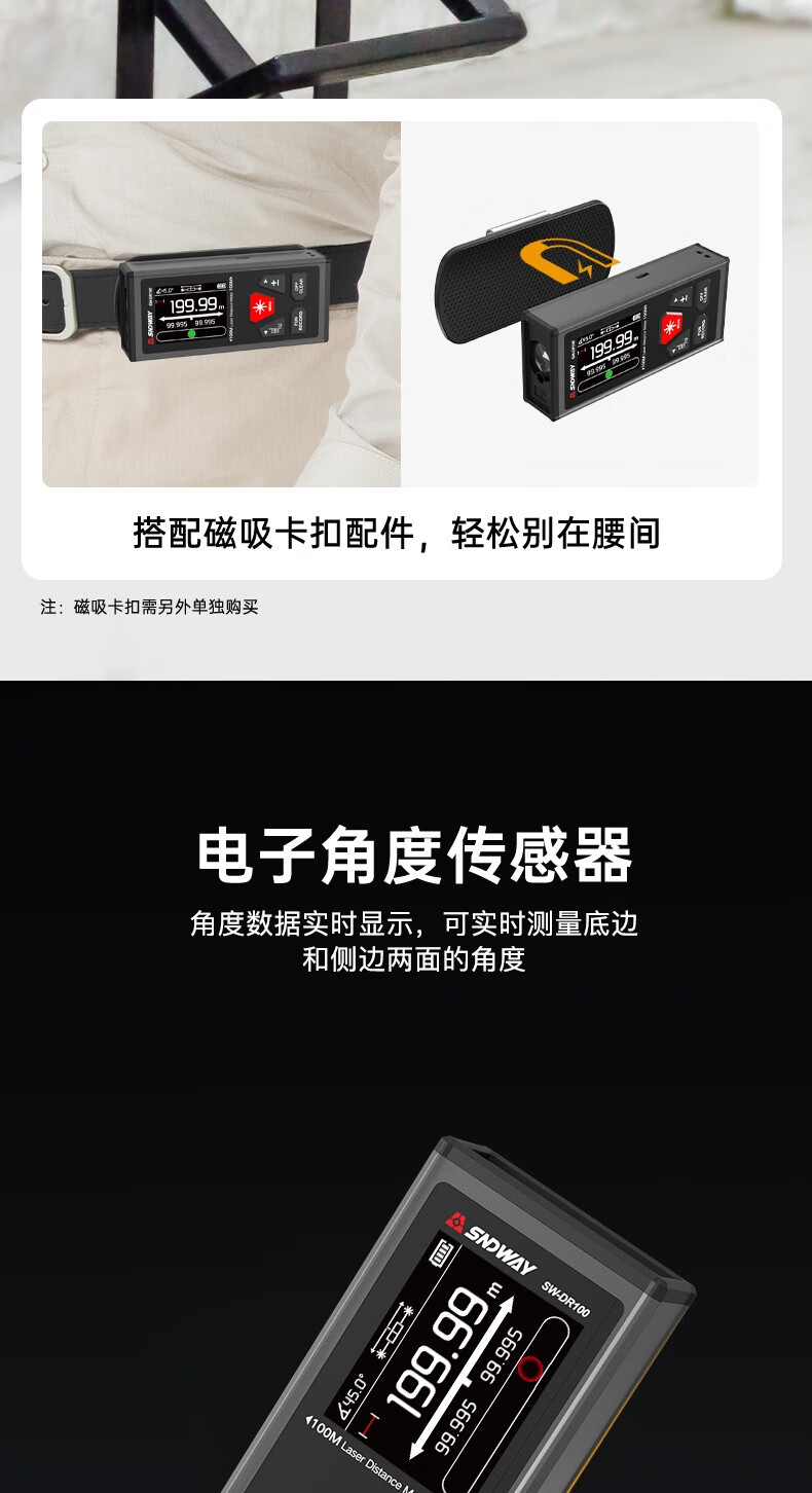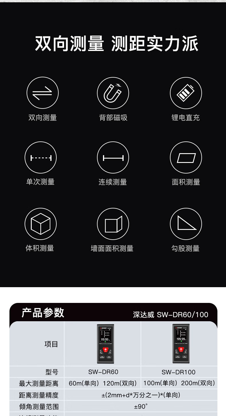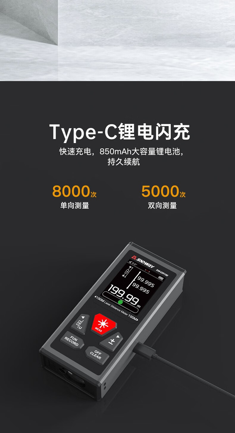 Shendawei two-way handheld laser range finder electronic ruler high-precision measuring instrument infrared back magnetic suction 200 meters SW-DR100 (two-way red light can measure 200 meters)