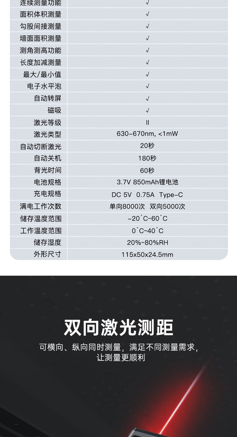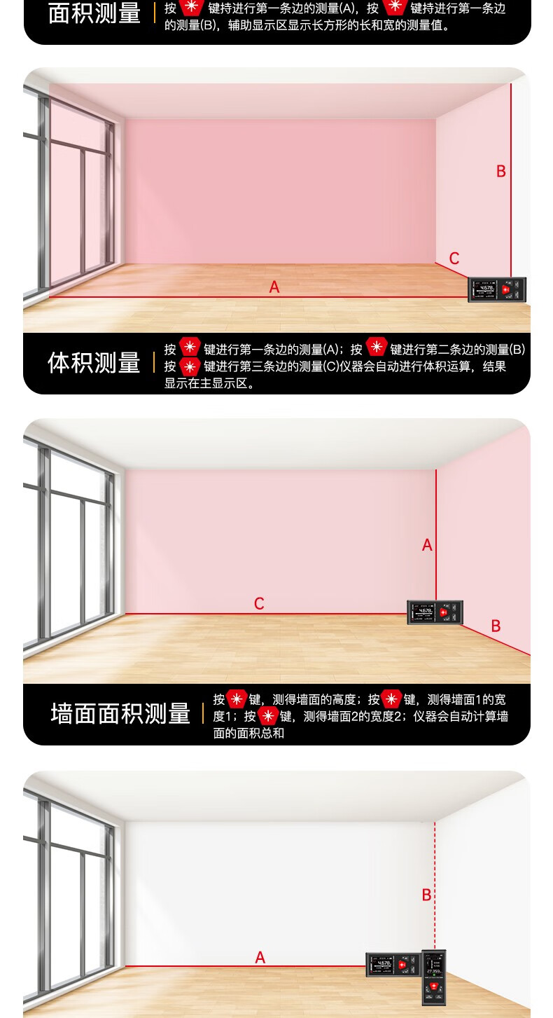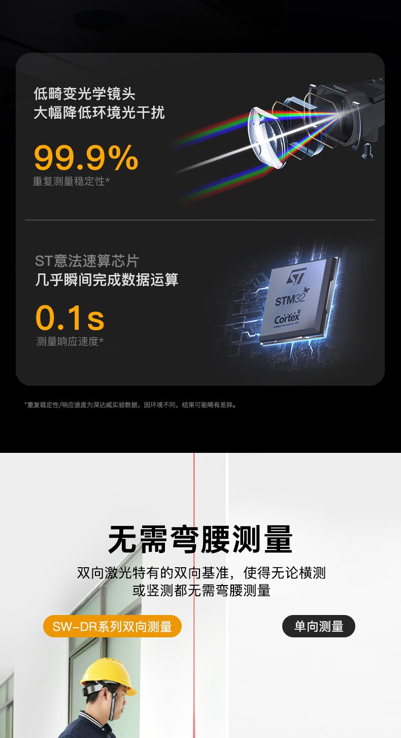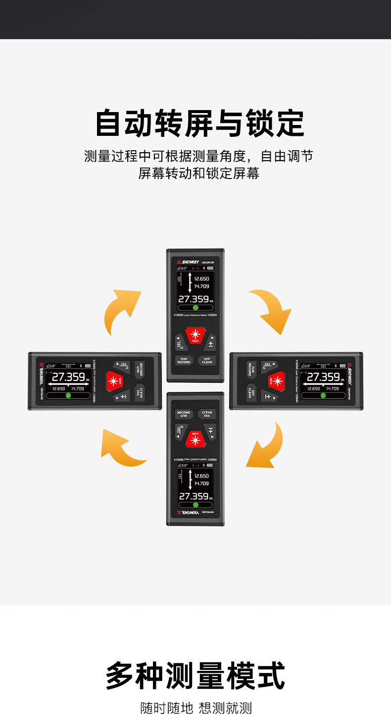 Shendawei two-way handheld laser range finder electronic ruler high-precision measuring instrument infrared back magnetic suction 200 meters SW-DR100 (two-way red light can measure 200 meters)