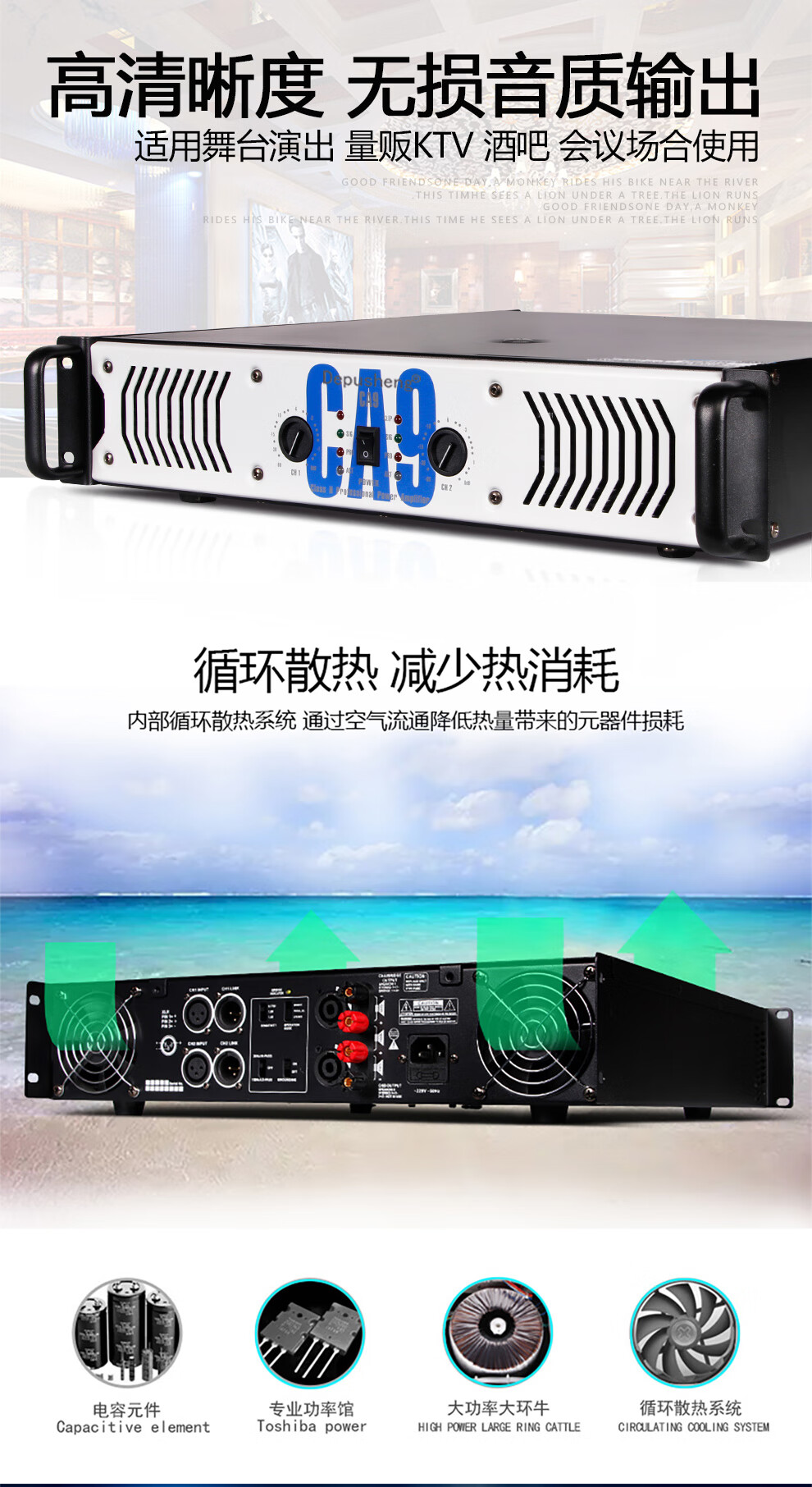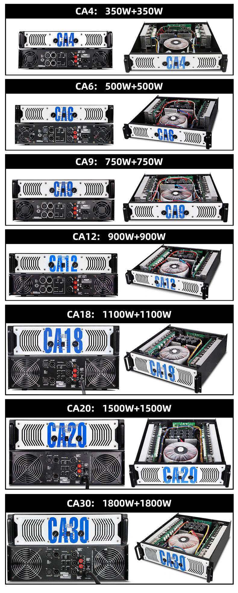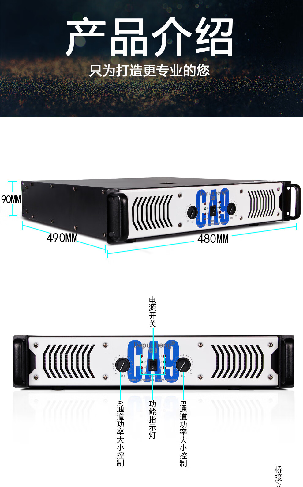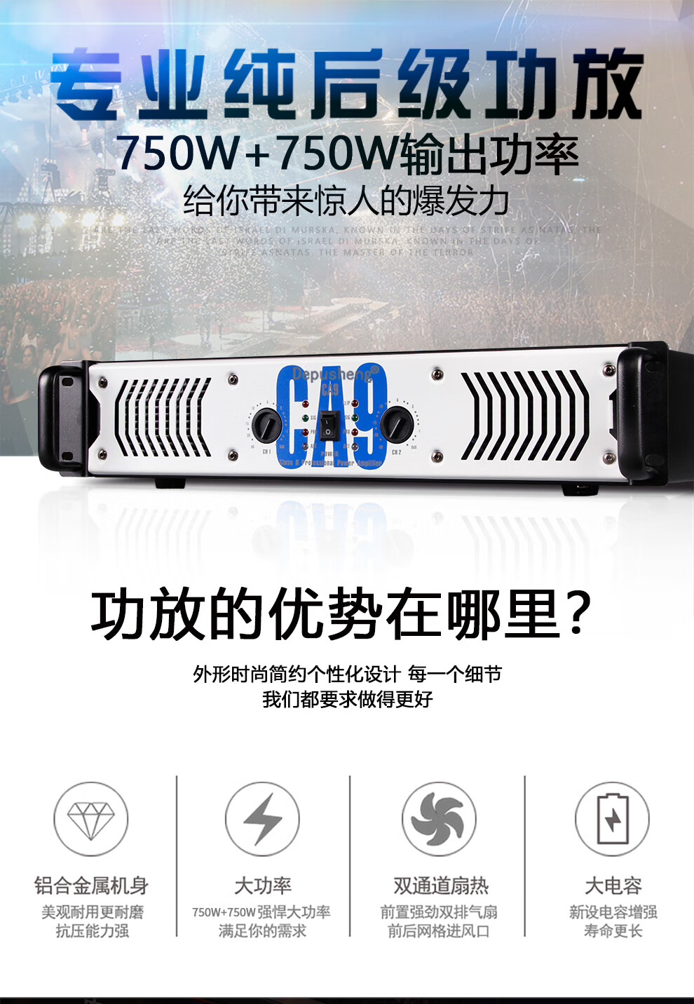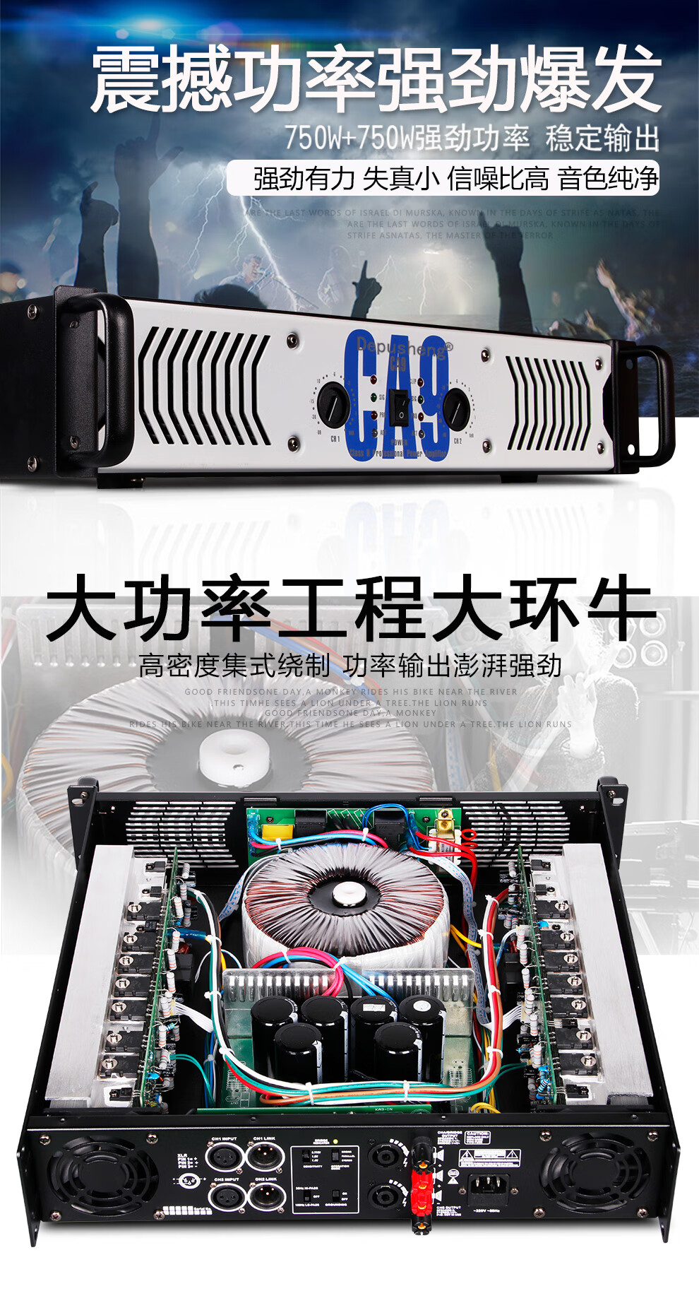 Depusheng CA9 professional high-power pure rear stage performance amplifier home singing KTV conference engineering subwoofer wedding school bar line array audio high-power dual channel CA9=750W*2