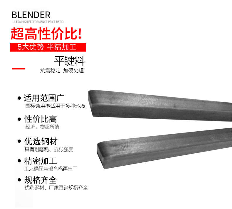Jishuo 3*3/4*4-80*40 flat key material/45 steel square key material 1 meter square key material/key pin material/key bar/key pin 45*25 45 steel