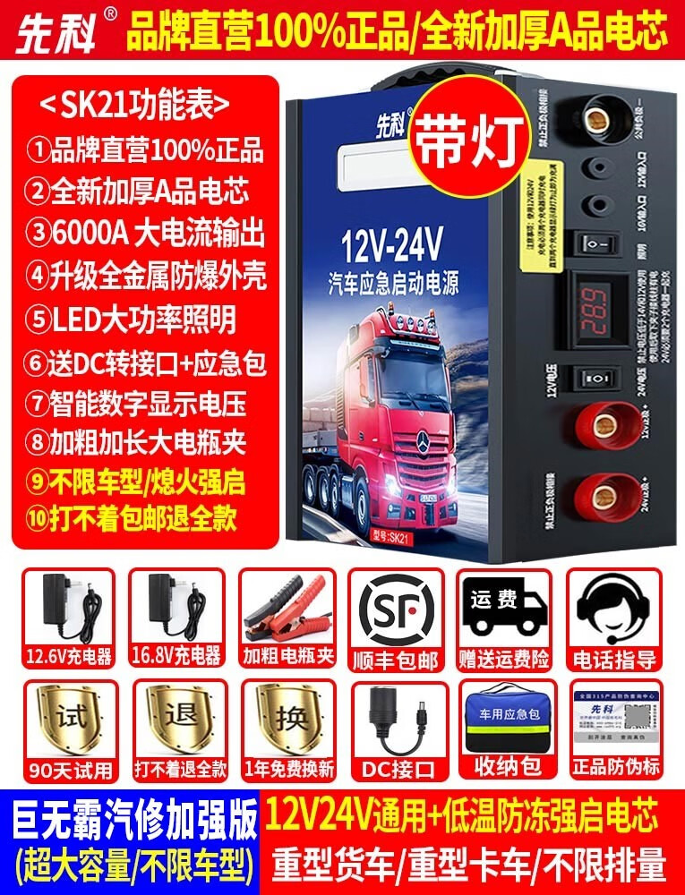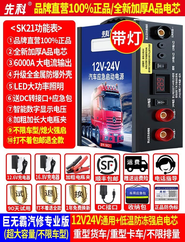 Xianke Automobile emergency starting power supply 12v24v universal large-capacity truck battery strong ignition and electricity artifact 1.59 million-12V rush sale version 12V single use diesel and gas dual starter free package