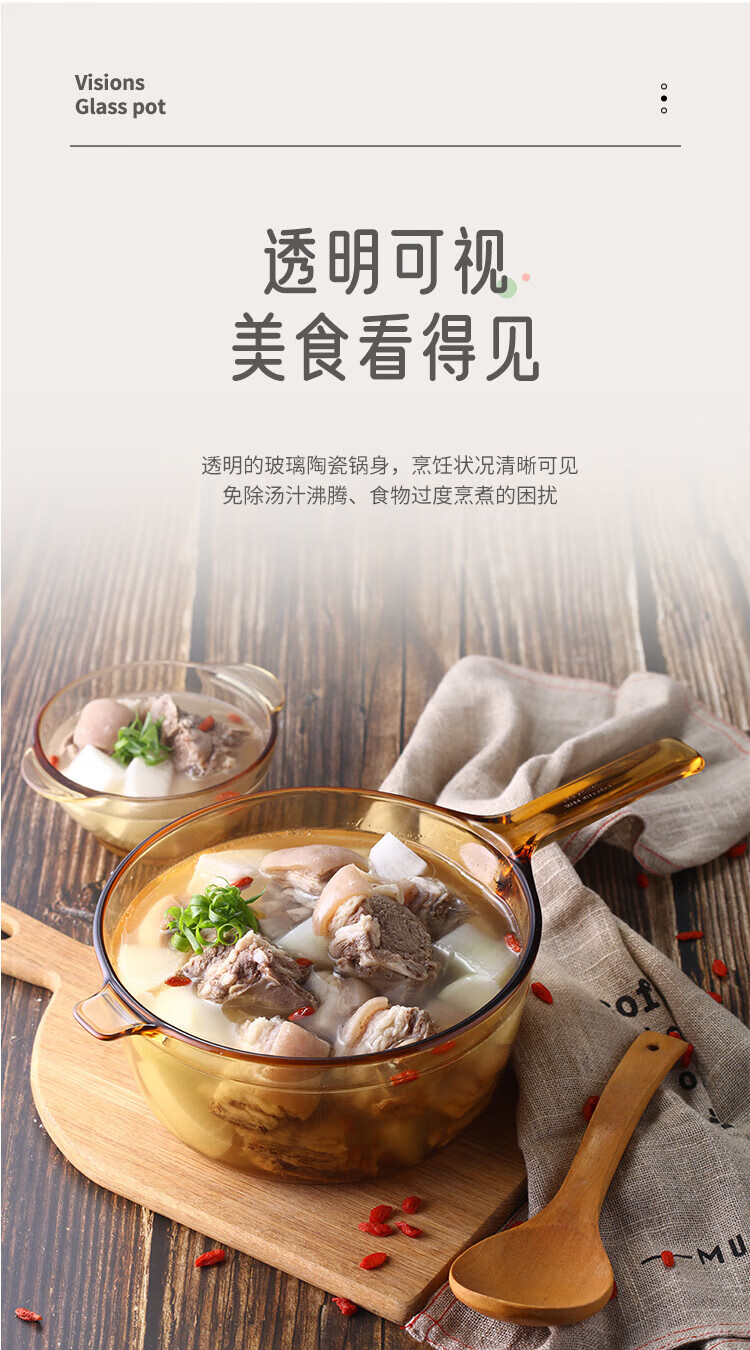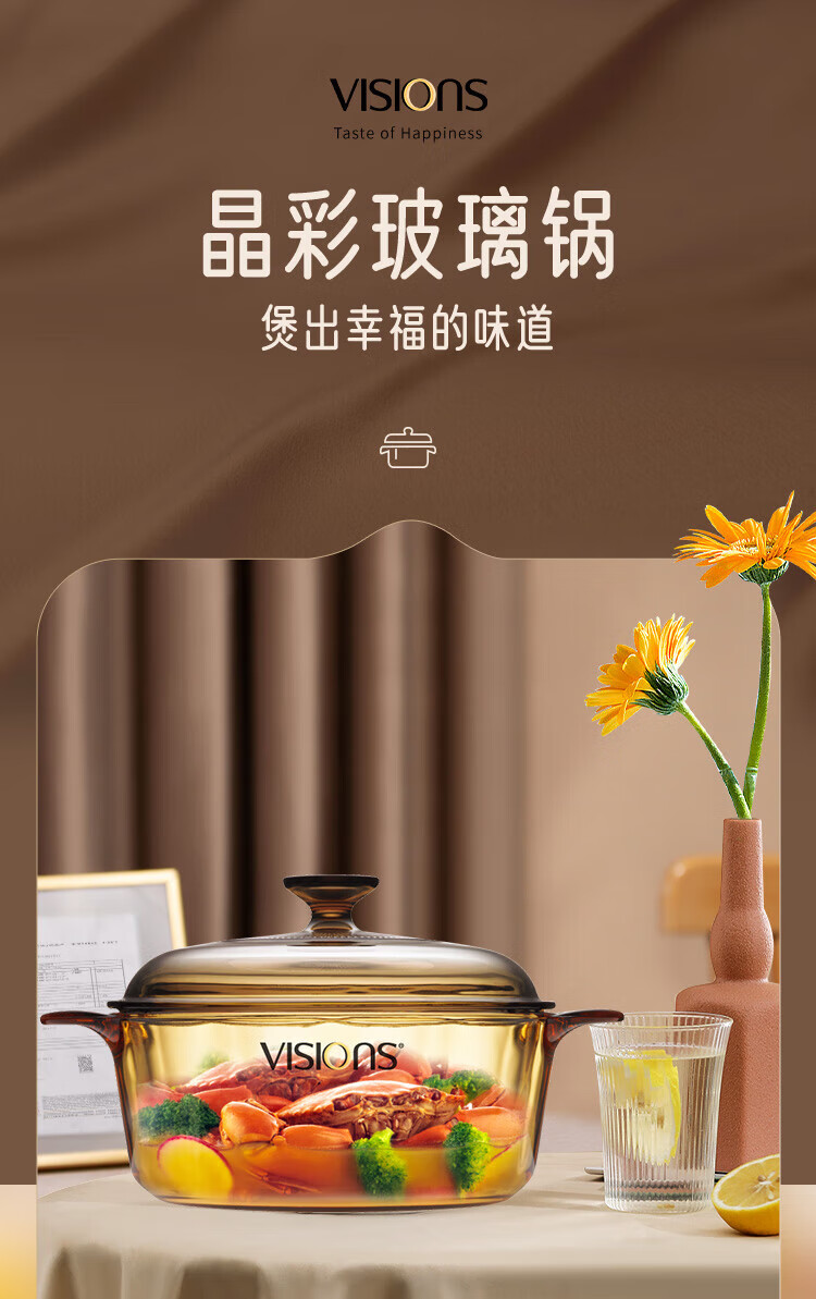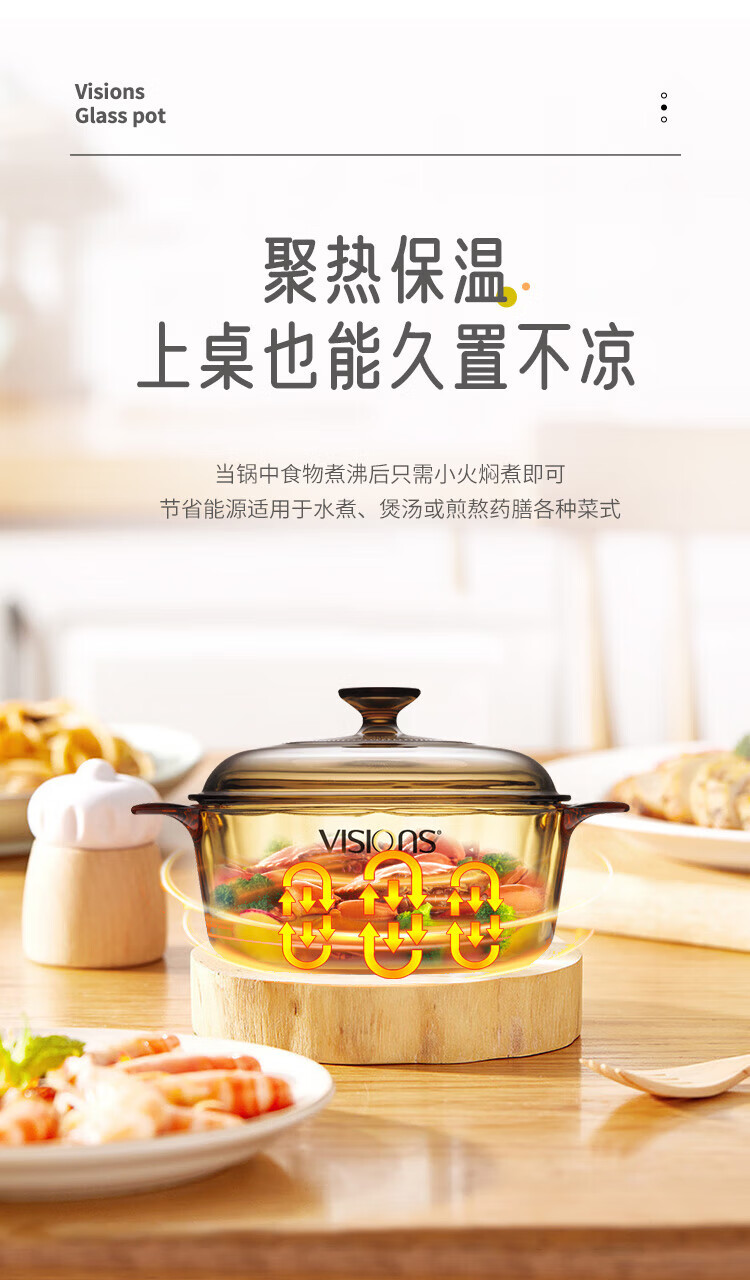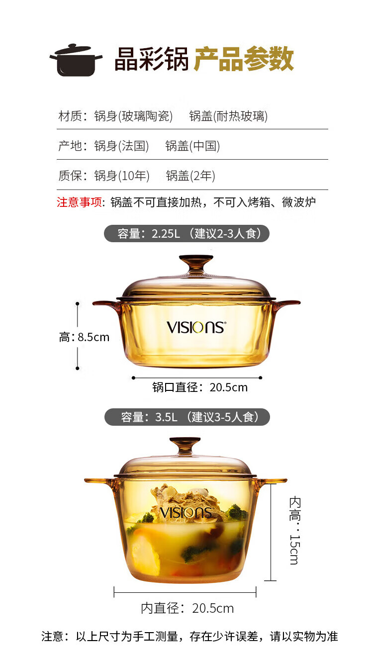 Corning (VISIONS) pot and tableware set glass soup pot stew pot 2.25L+3.5L+Belle set of six pieces (VS22+VS35+Belle 6-piece set) 8-piece set