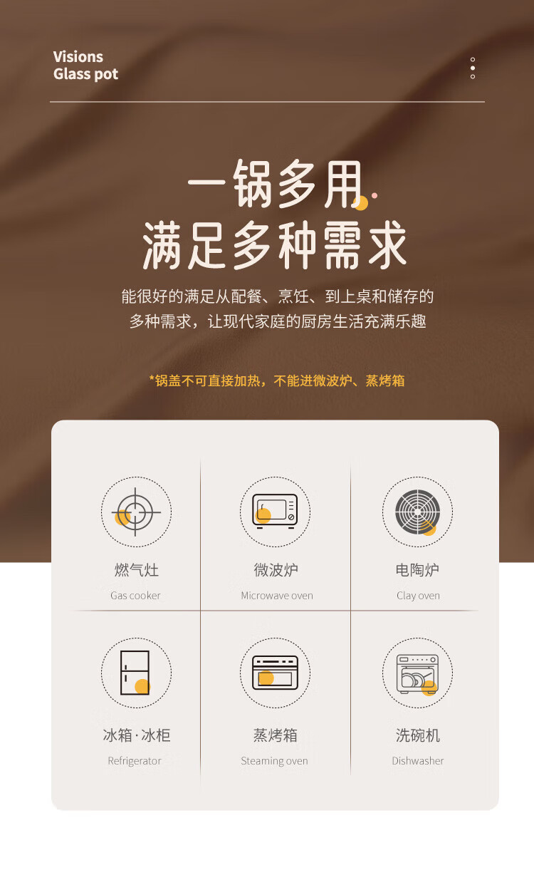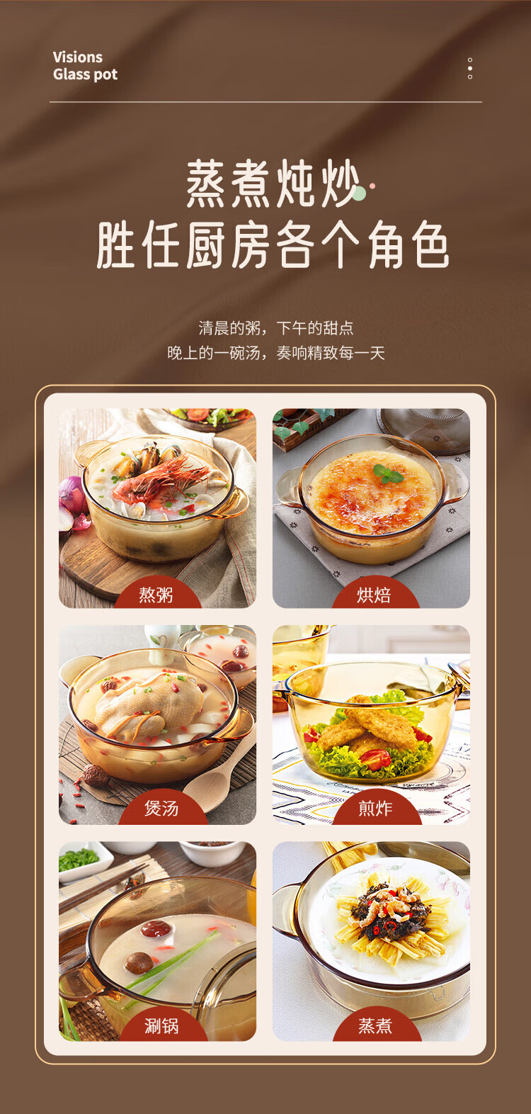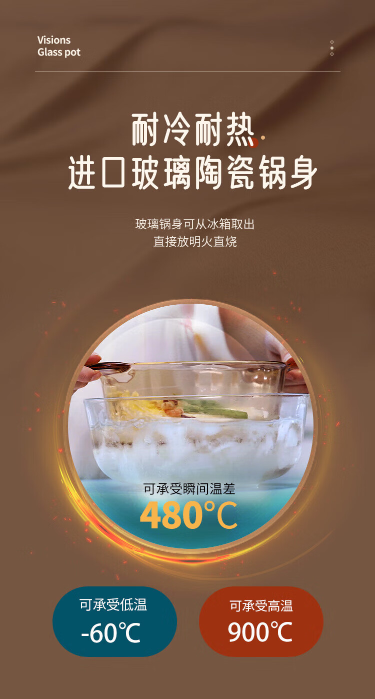 Corning (VISIONS) pot and tableware set glass soup pot stew pot 2.25L+3.5L+Belle set of six pieces (VS22+VS35+Belle 6-piece set) 8-piece set
