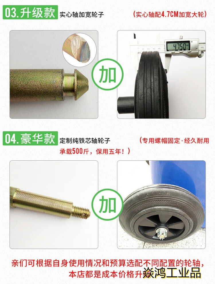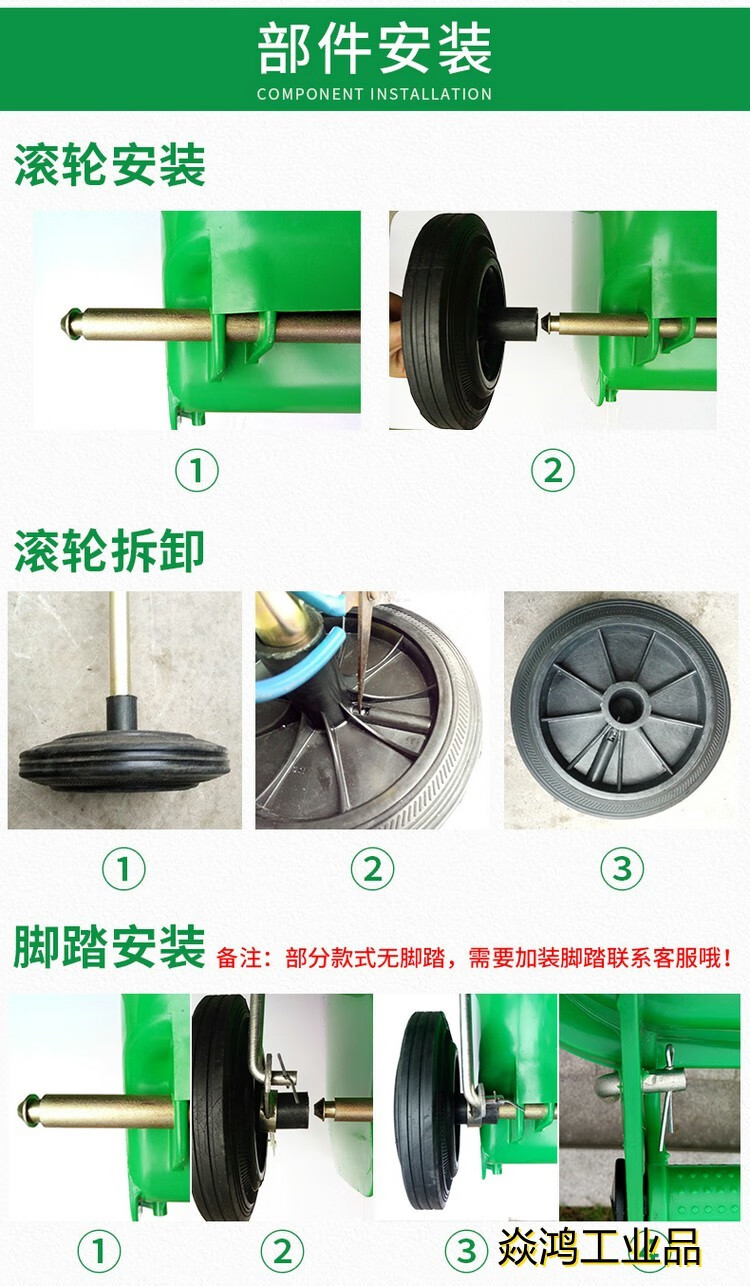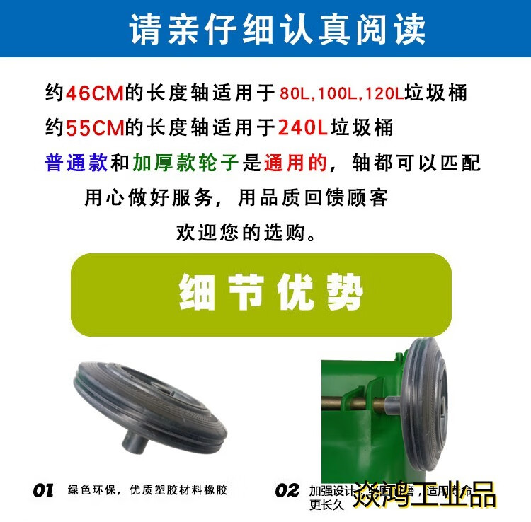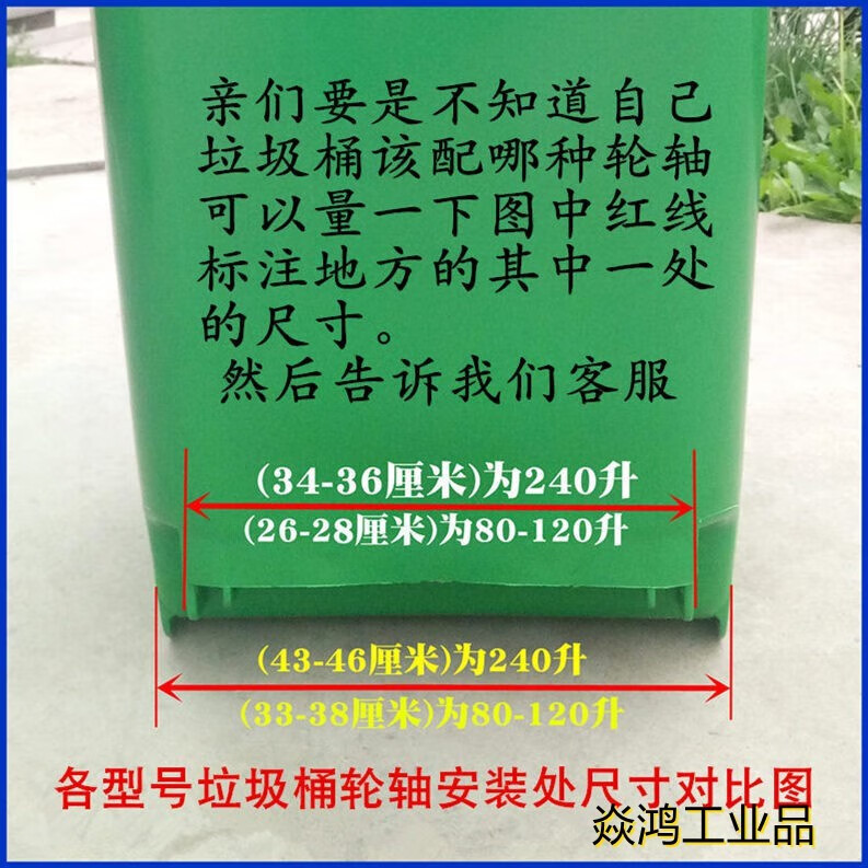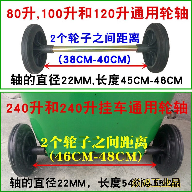 Large outdoor trash can thickened wheels 240 liters 100L 120 liters universal wheel solid rubber wheel axle accessories standard shaft + 2 thickened wheels (240L)