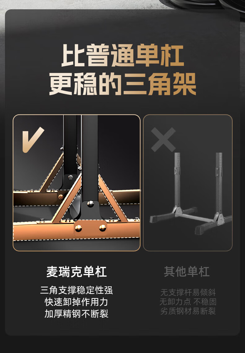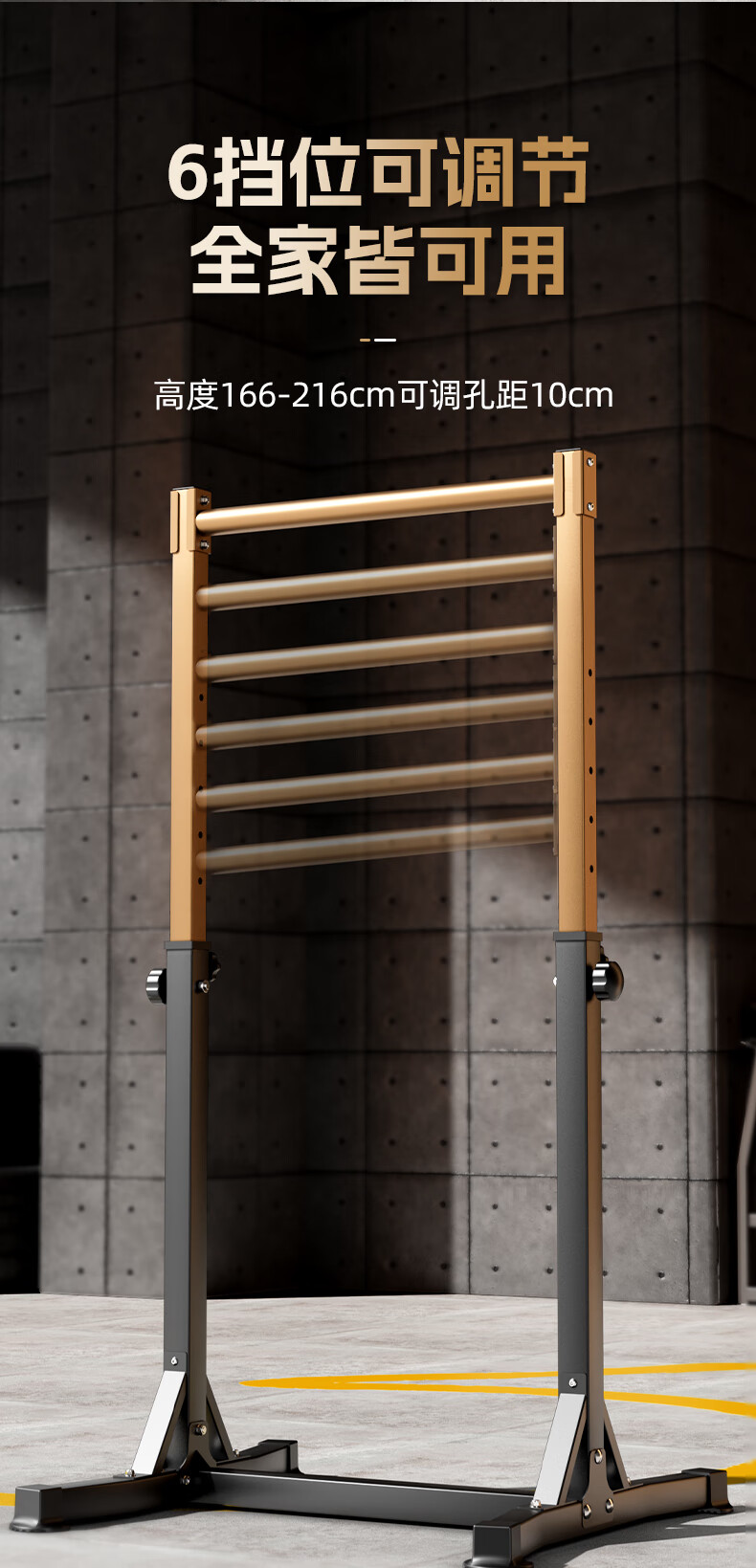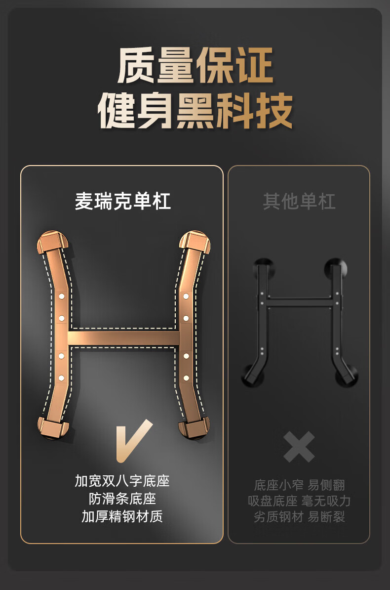MERACH horizontal bar home indoor pull-up device floor-standing single parallel bar high load-bearing children's home fitness equipment sand gold/black adult version taller thickened/widened splayed base