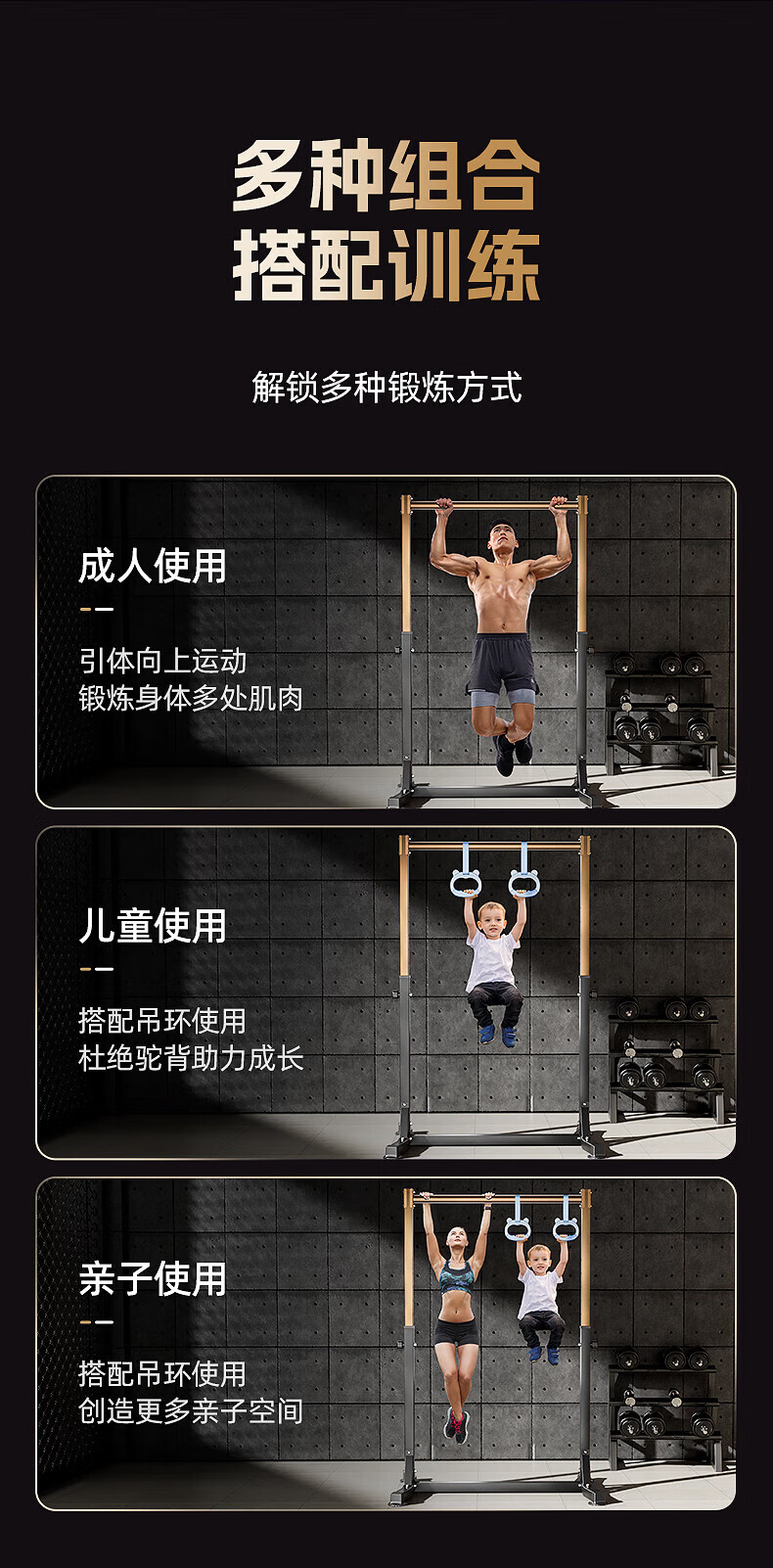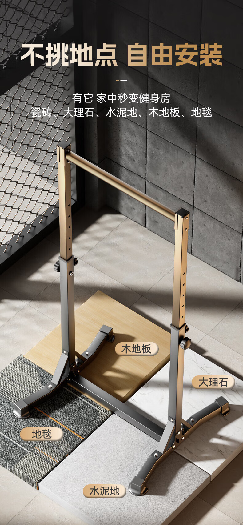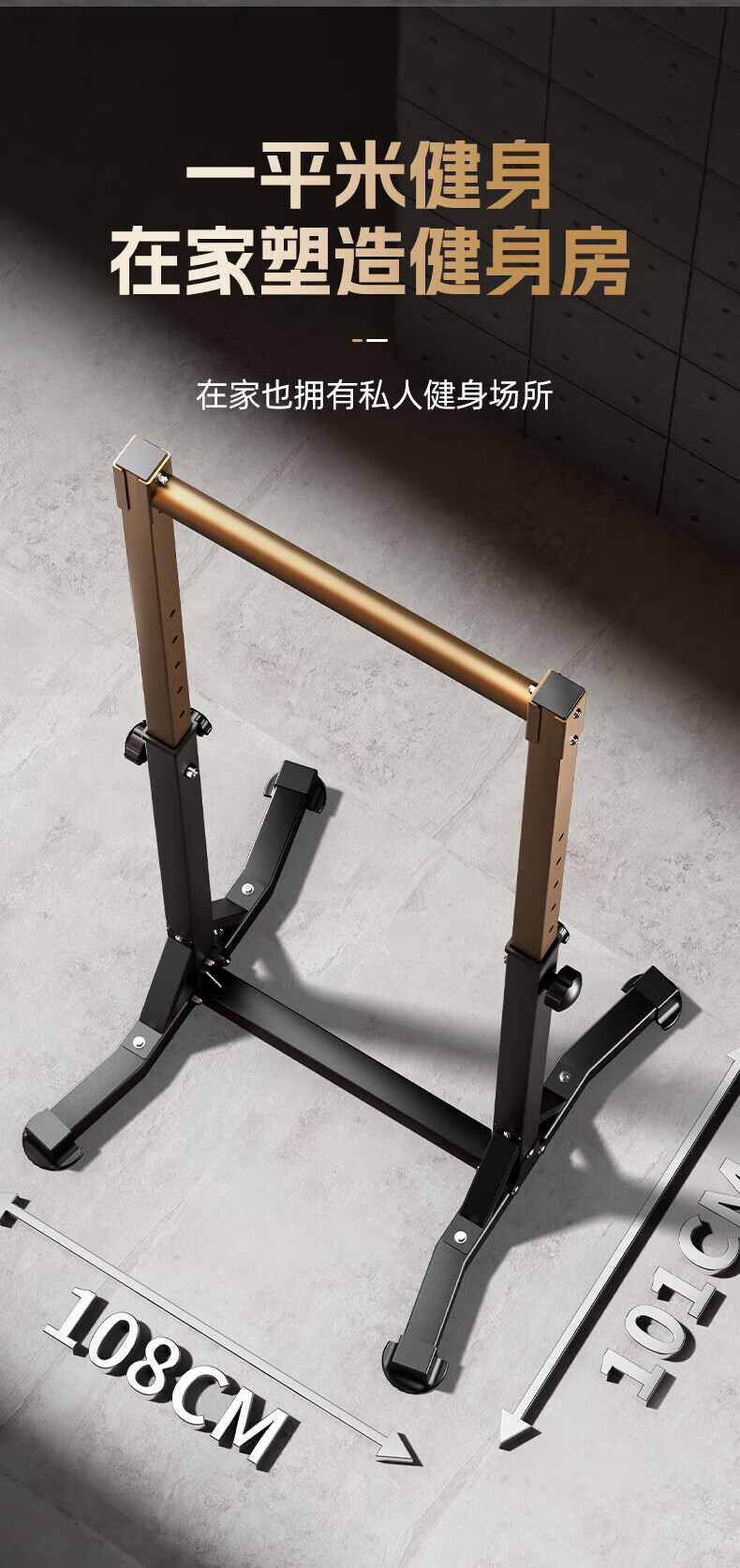 MERACH horizontal bar home indoor pull-up device floor-standing single parallel bar high load-bearing children's home fitness equipment sand gold/black adult version taller thickened/widened splayed base