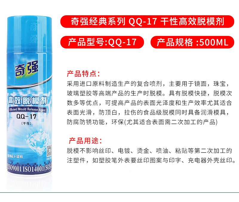 Imported raw materials Qiqiang high-efficiency release agent oily neutral dry mold ejector oil cleaning agent green anti-rust agent neutral release agent QQ-18