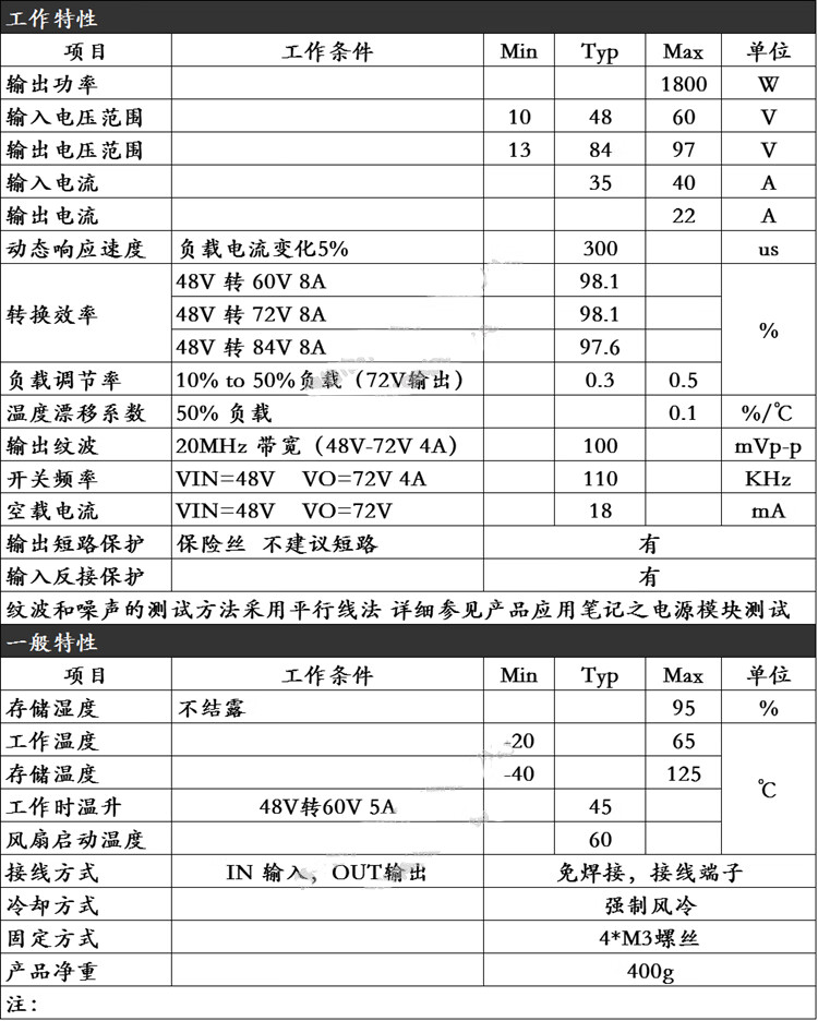 输入36V * 20A = 720W,输入48V * 20A = 960W,输入 * 20A = 1200W