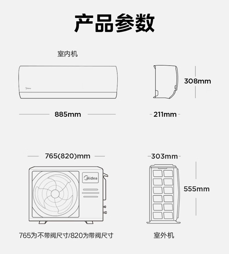 Midea air conditioner set hanging set purchase the new first-class energy efficiency frequency conversion heating and cooling 2026 cool energy-saving second generation double-row pure copper tube hanging set multi-family bedroom living room hanging air conditioner large 1.5 HP hanging set cool energy-saving second generation set preferred for small apartments