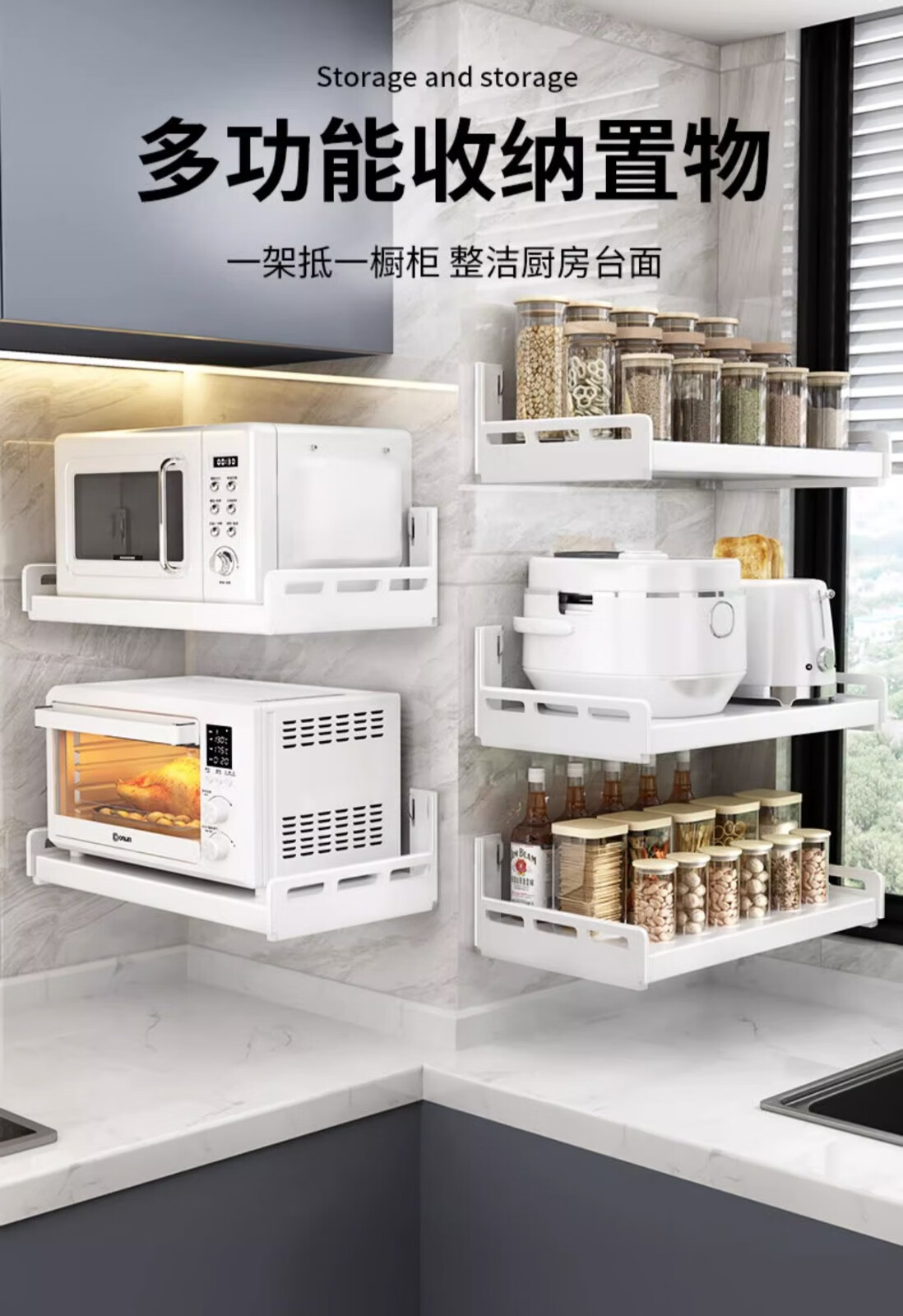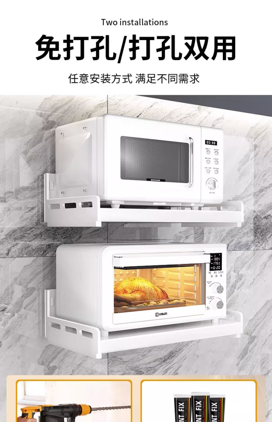 Duopeng kitchen microwave rack wall-mounted multi-functional storage oven rice cooker wall-mounted punch-free bracket punch-free/punch-free 50 long 40 wide