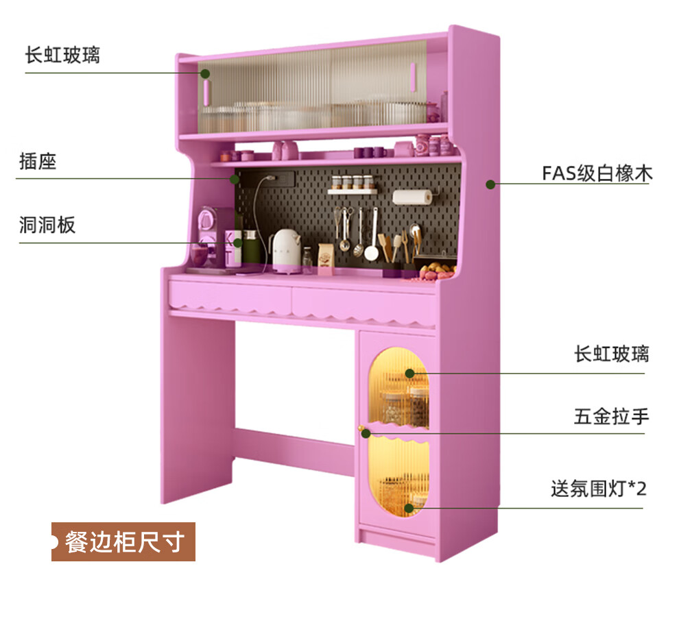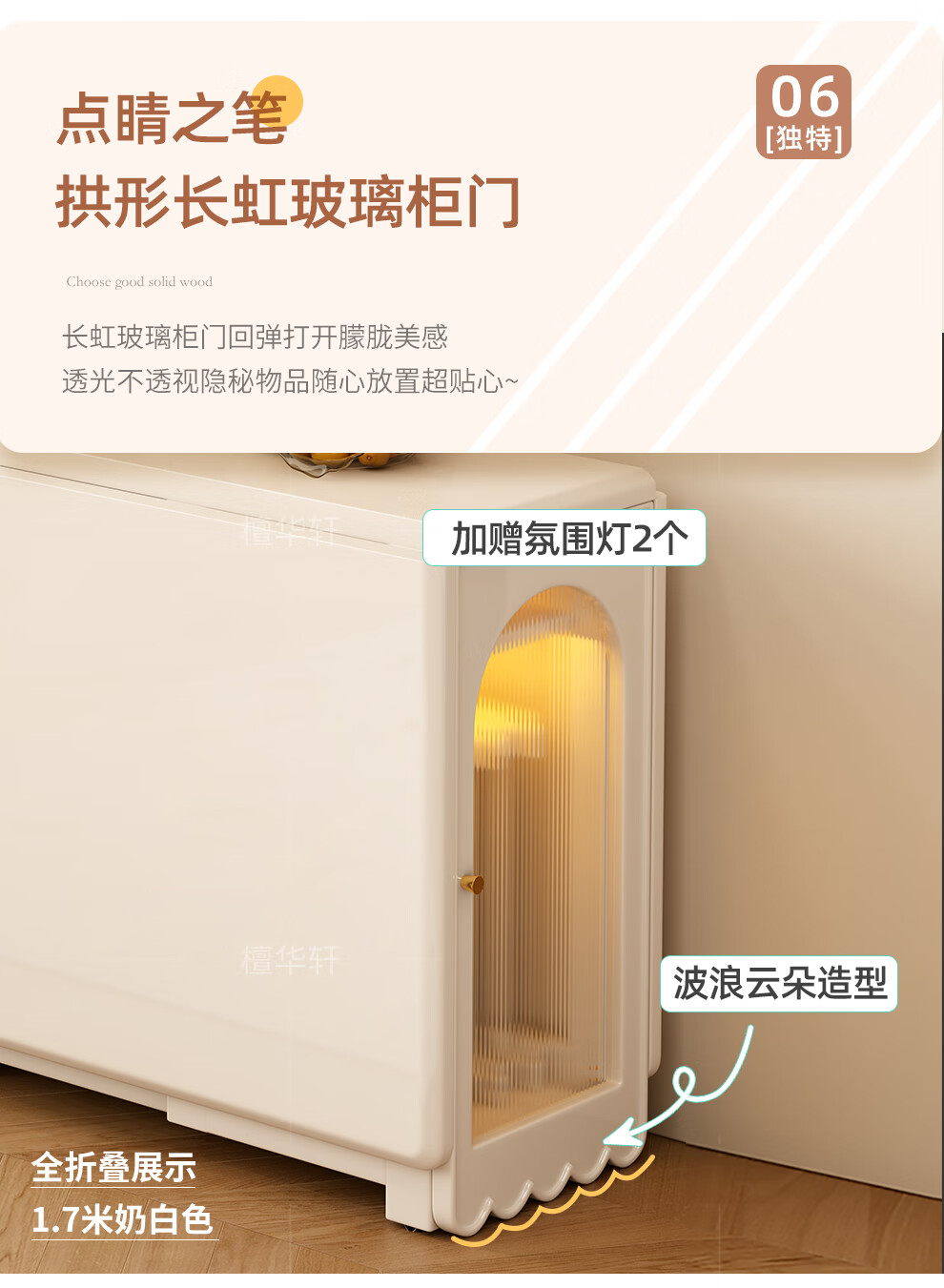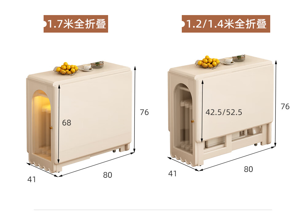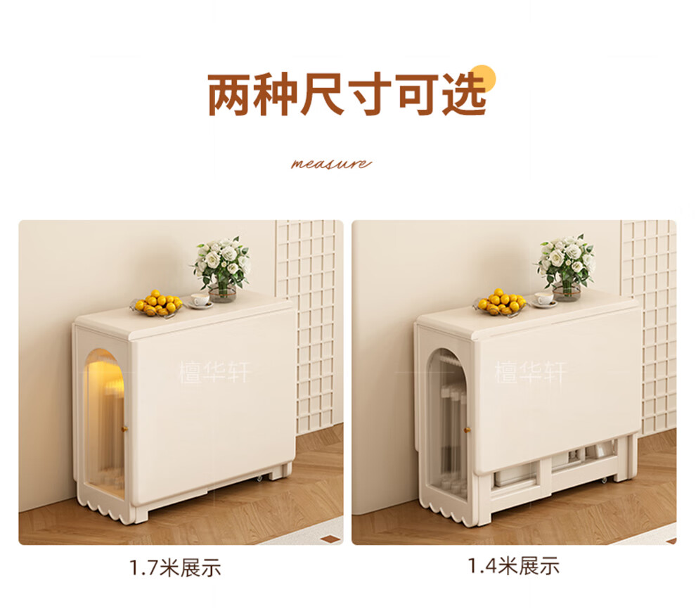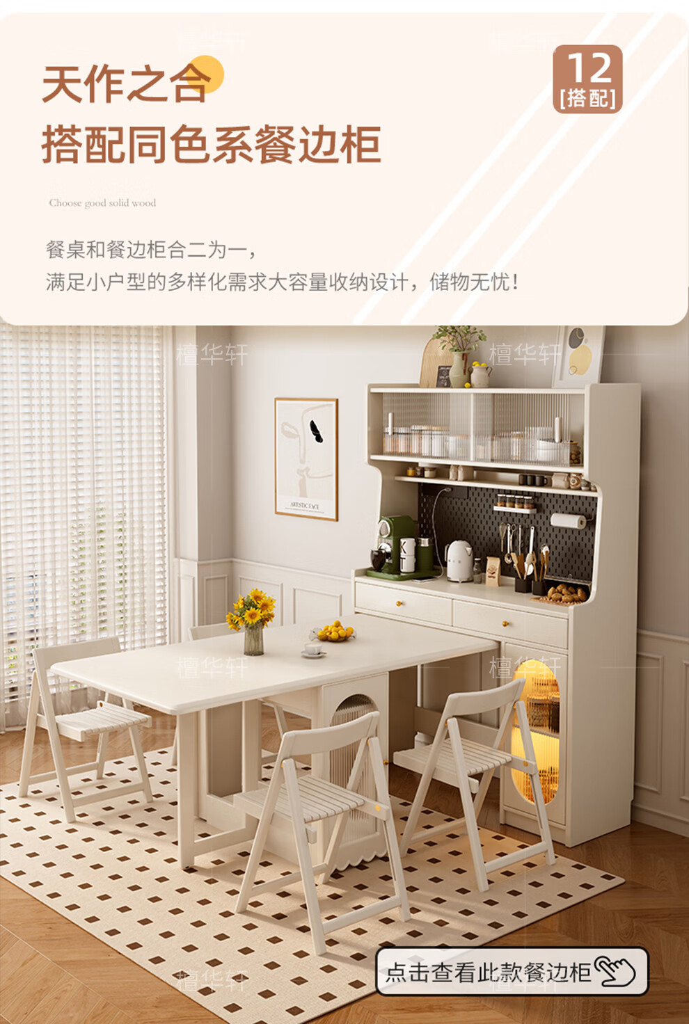 Tan Hua Xuan all solid wood folding dining table and sideboard integrated small apartment cream style dining table with lights and wheels white oak table 1.4m folding dining table + folding leather chairs x4