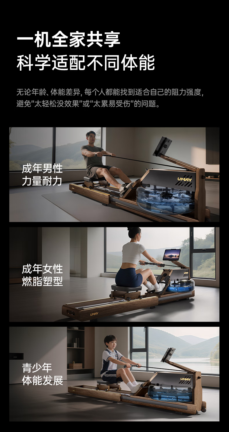 Youmei New Product Hydromagnetic Dual Resistance Rowing Machine Self-Powered Shuttle Intelligent Rowing Machine Home Gym Folding R7 Folding Model Solid Wood - Shuttle Intelligent Resistance Adjustment