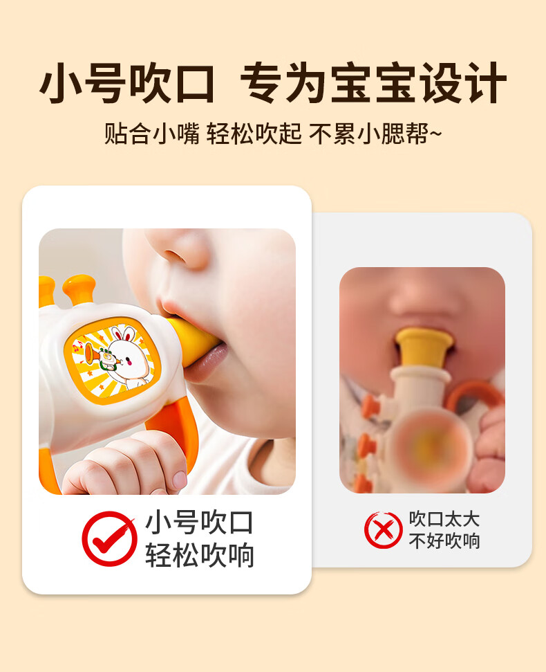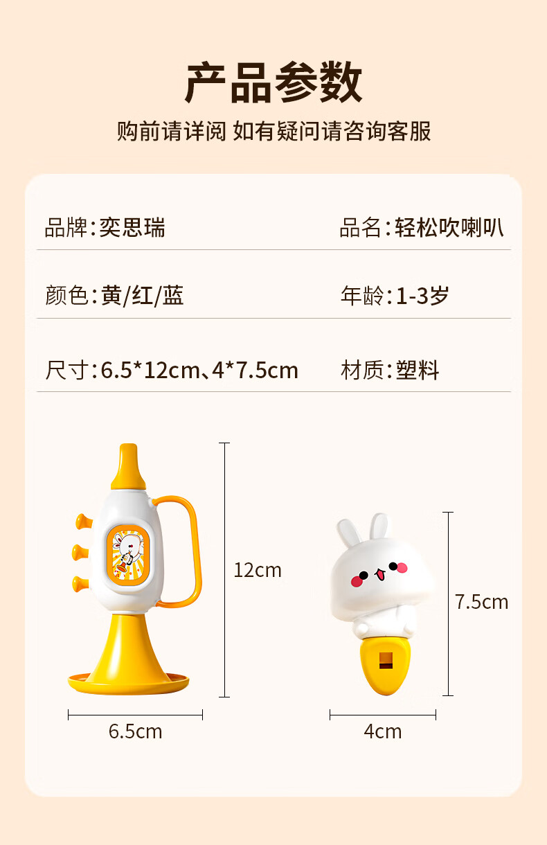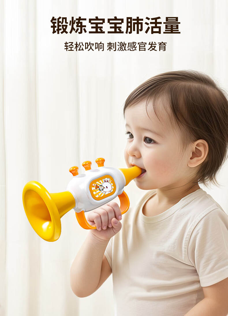 Yisirui yellow duckling trumpet baby toy 6 months and above can play musical instruments 1 year old baby whistle children's birthday gift Carrot Rabbit Gami Yellow + Rabbit Harmonica