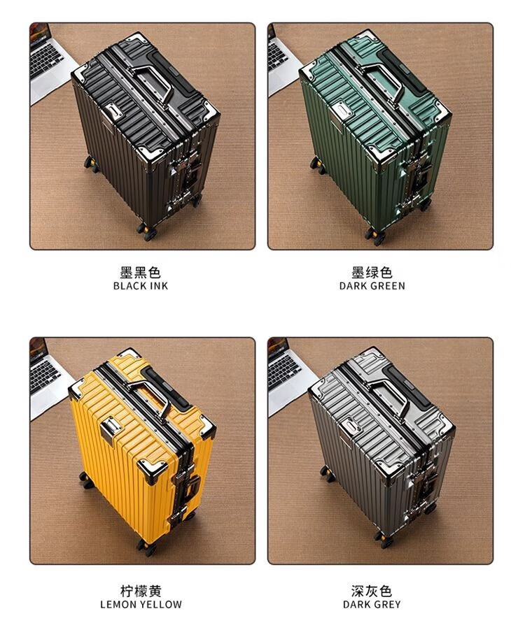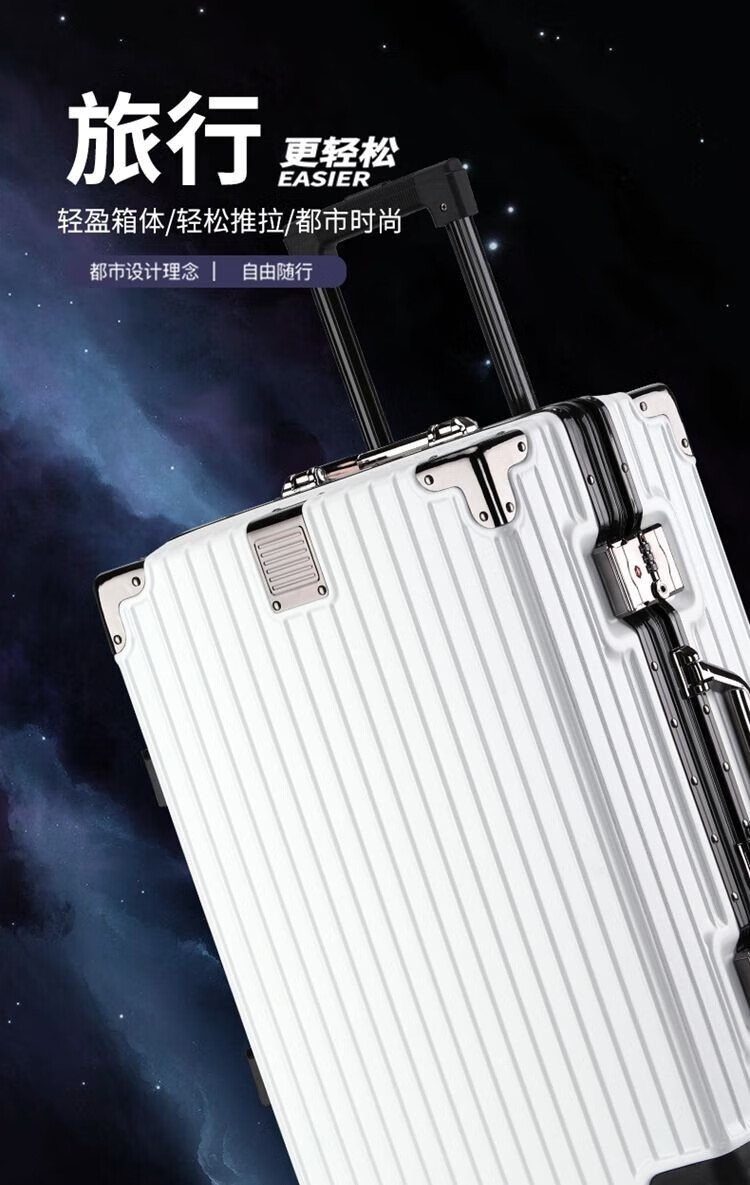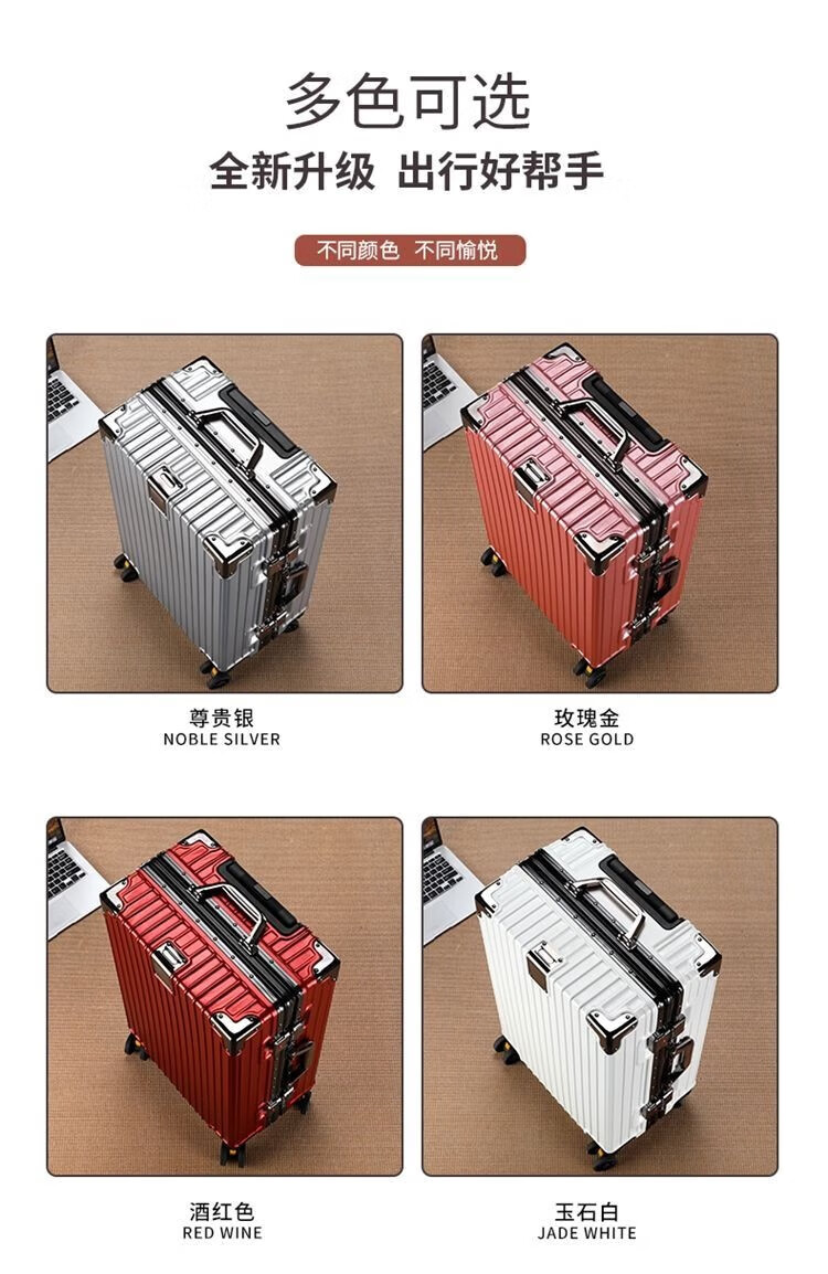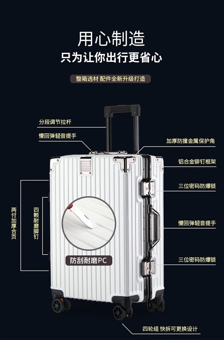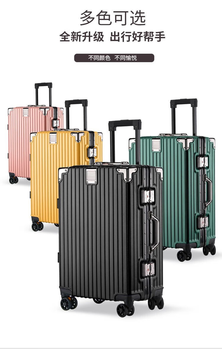 Qizhenge's new suitcase, aluminum frame trolley case, large-capacity password box for male students, good-looking suitcase for women, thickened leather suitcase, obsidian black, thickened and hardened - resistant to pressure and fall, 28 inches, large capacity - moving and shipping abroad
