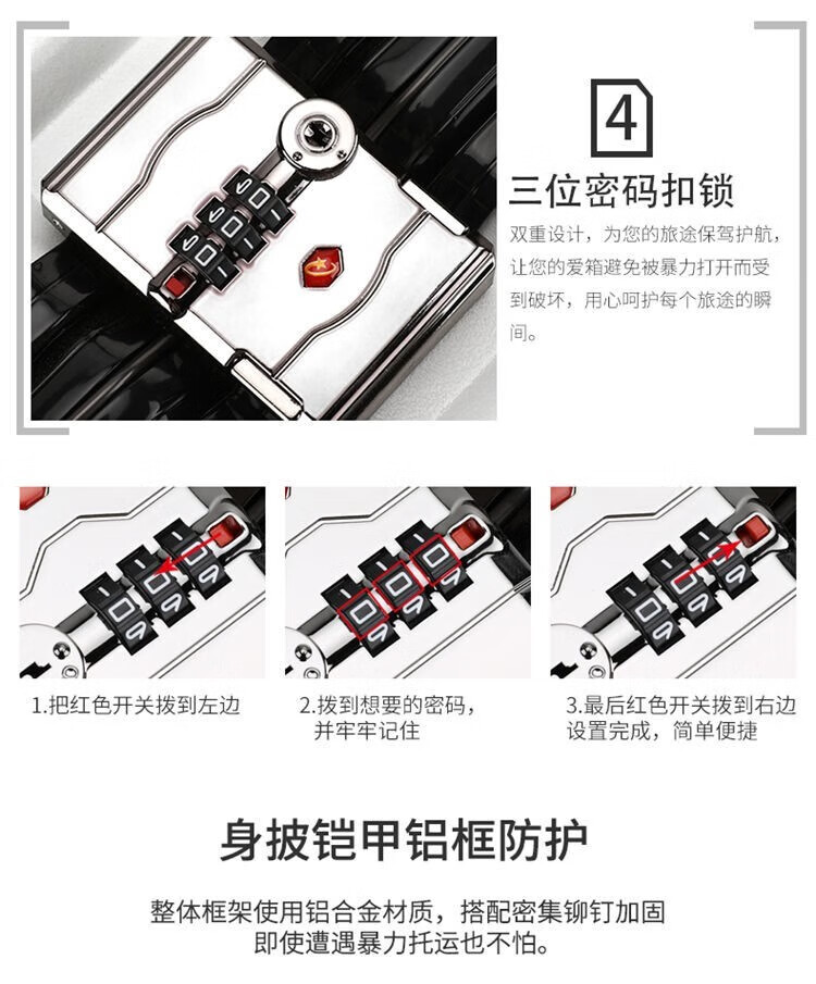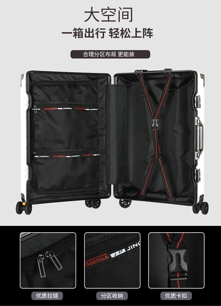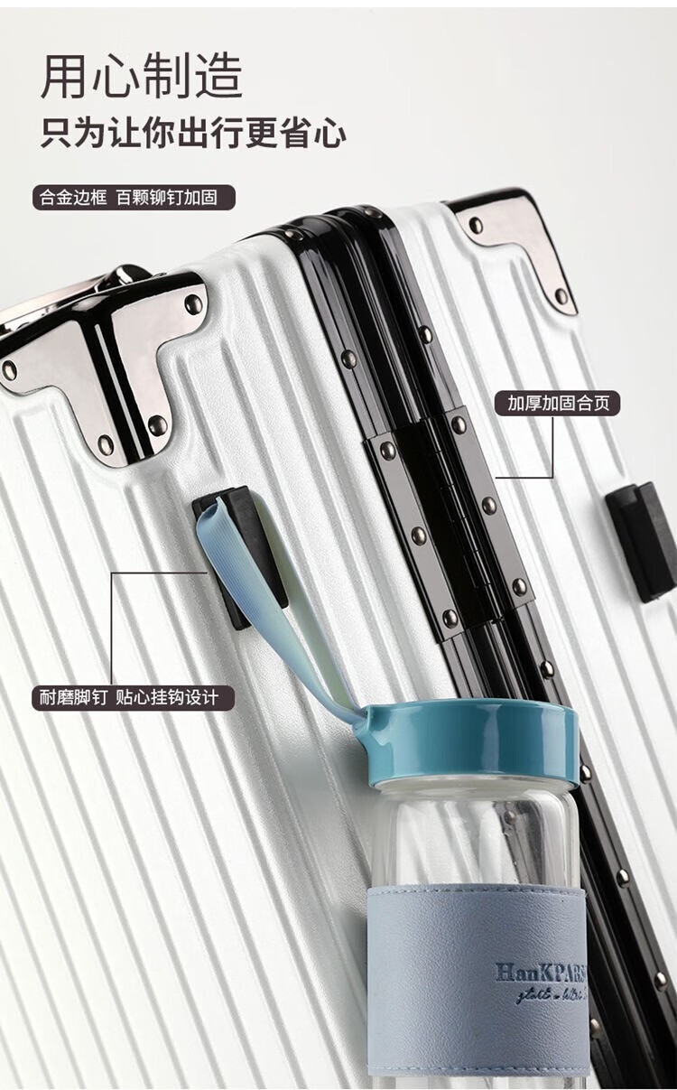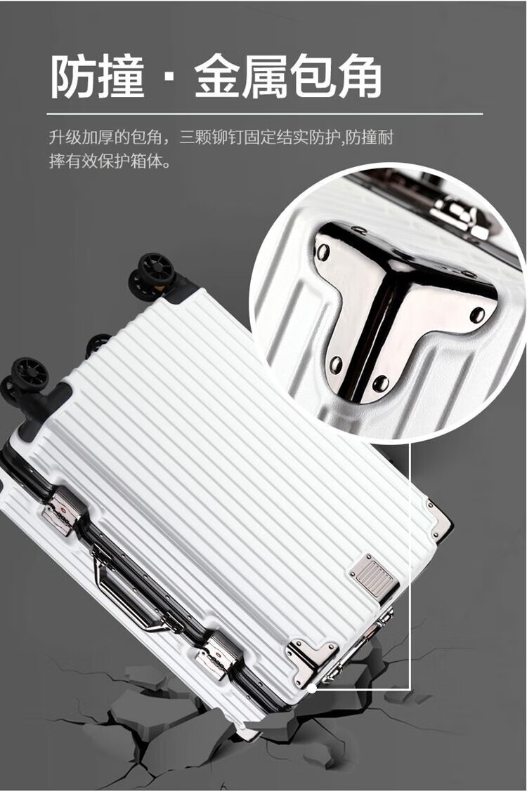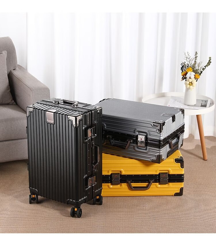 Qizhenge's new suitcase, aluminum frame trolley case, large-capacity password box for male students, good-looking suitcase for women, thickened leather suitcase, obsidian black, thickened and hardened - resistant to pressure and fall, 28 inches, large capacity - moving and shipping abroad