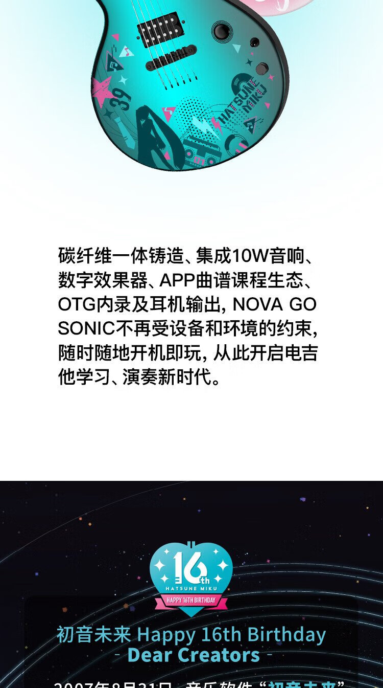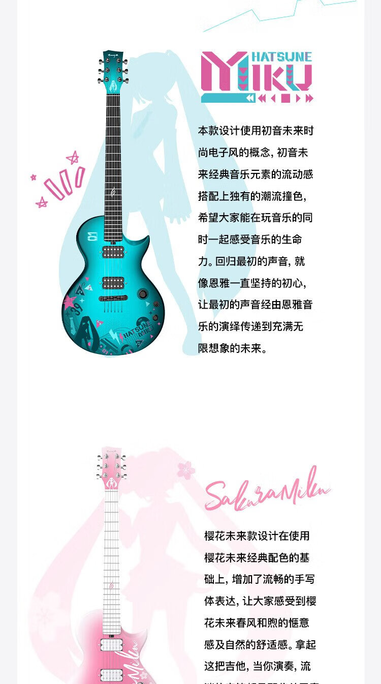 Enya Enya Nova Go Sonic Hatsune Miku co-branded smart carbon fiber men's and women's electric guitar for beginners Sakura Pink-Exclusive Gift-8 Warehouse Quick Delivery