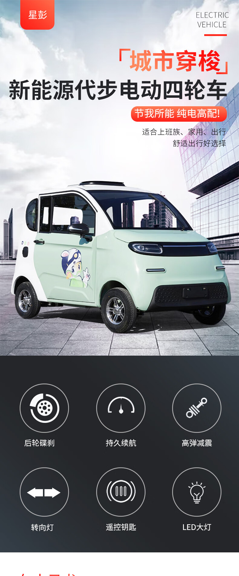 Xingpeng electric four-wheel vehicle, new model for women, small new energy commuter car for work, fully enclosed home for picking up children, one-year insurance