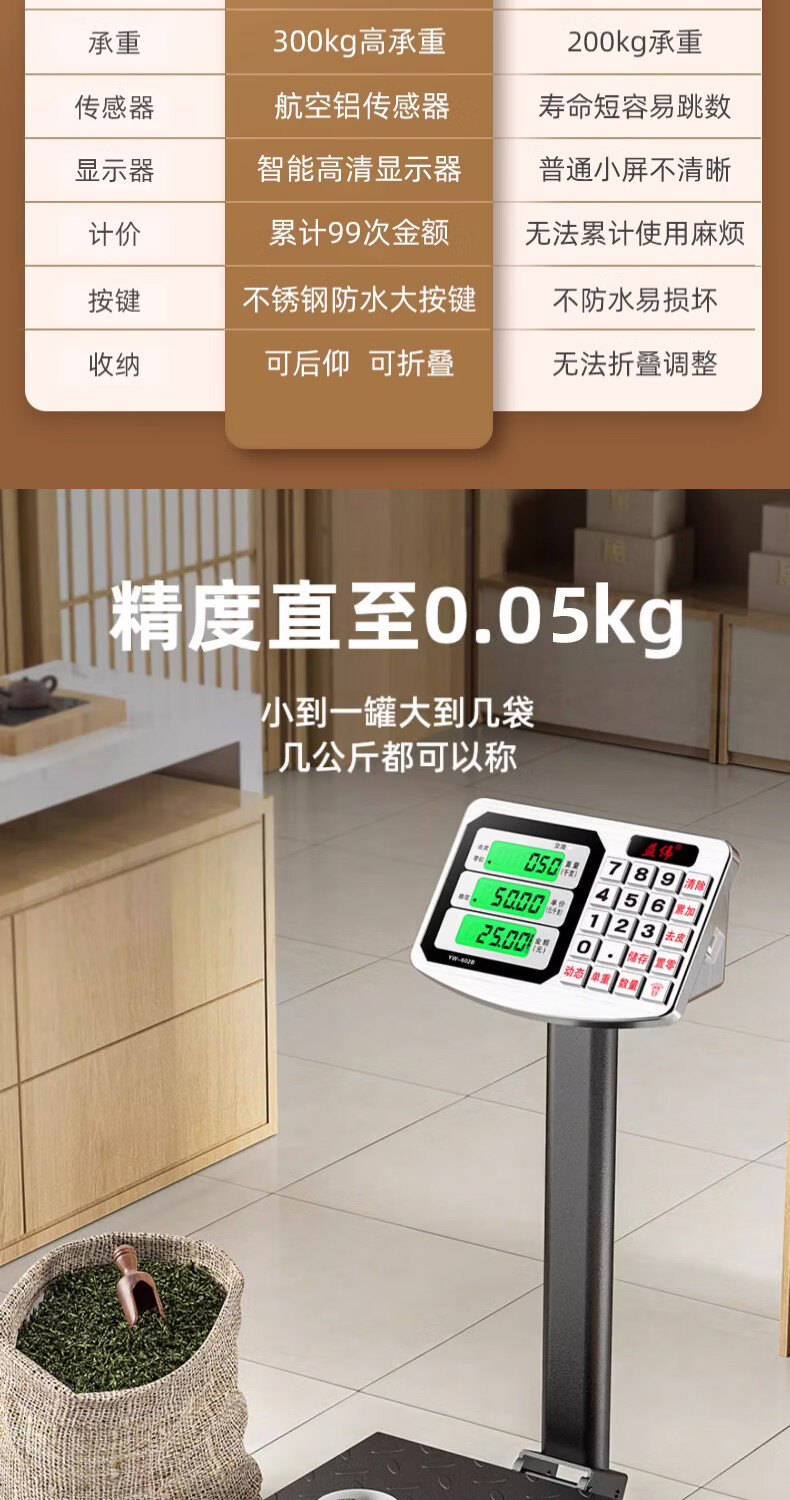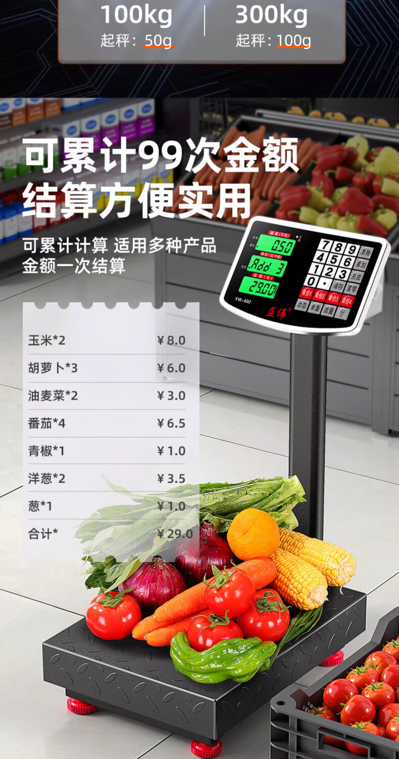 Yiwei 300kg electronic scale commercial precision small platform scale weighing 100kg household food high-precision stall scale 180KG ultra-thick 30*40 black characters