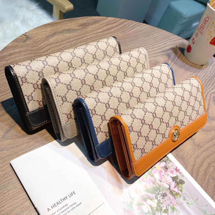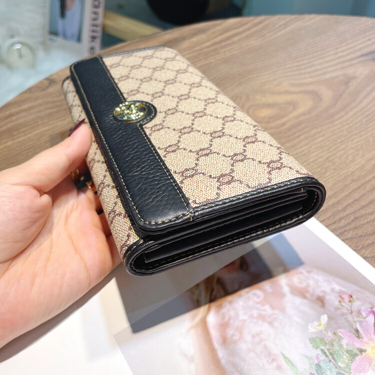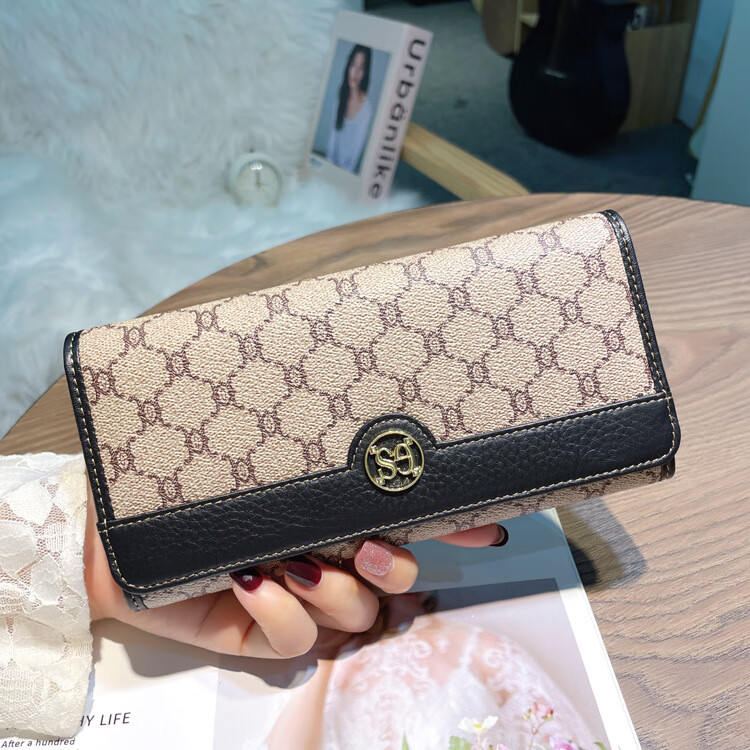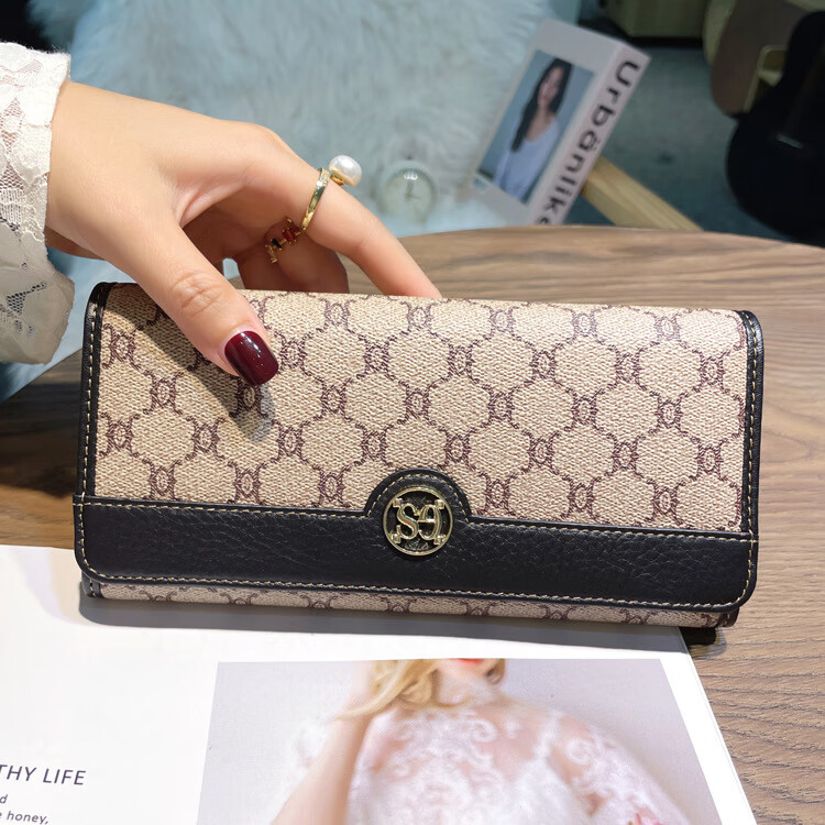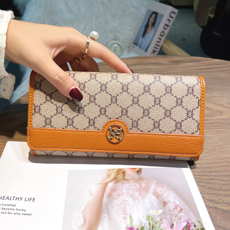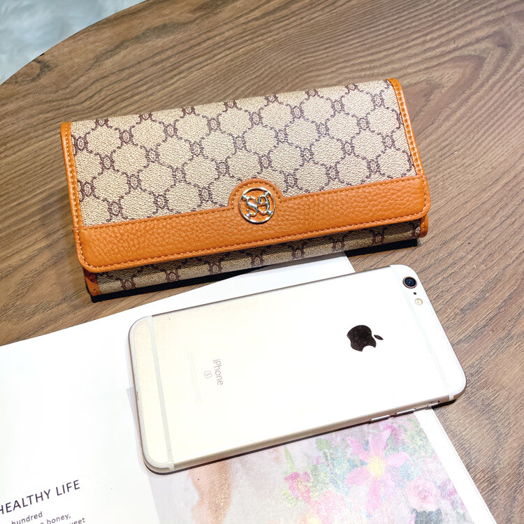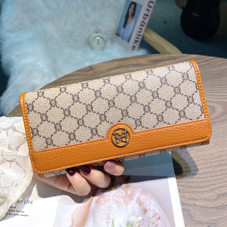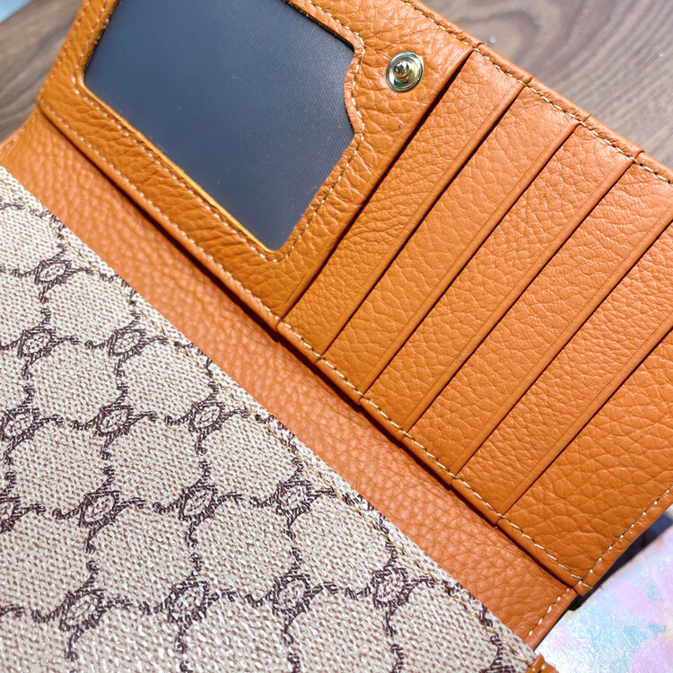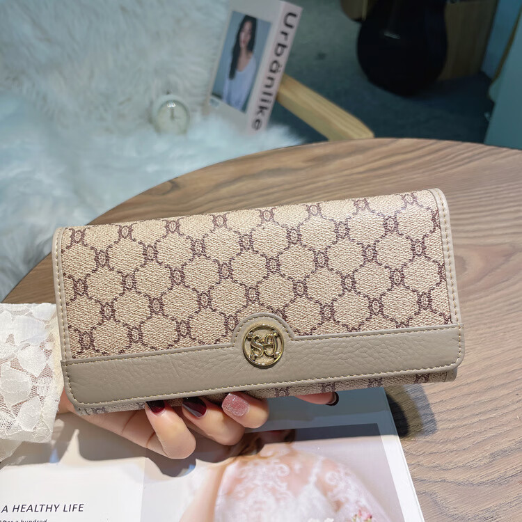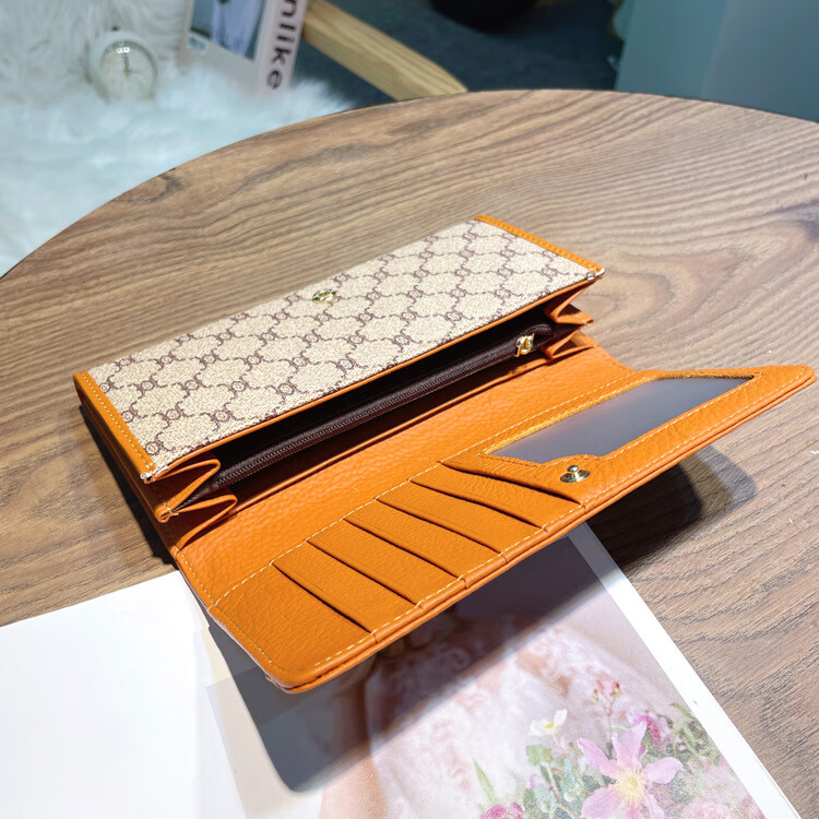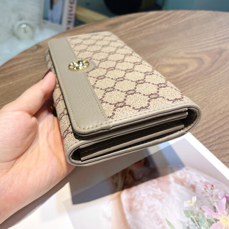 Kuqi Kangaroo (KUQIDAISHU) New Year's Eve Fashion Women's Wallet Women's Long Women's Wallet Two-fold Genuine Leather Multi-Card Slot Card Holder Women's Wallet Apricot